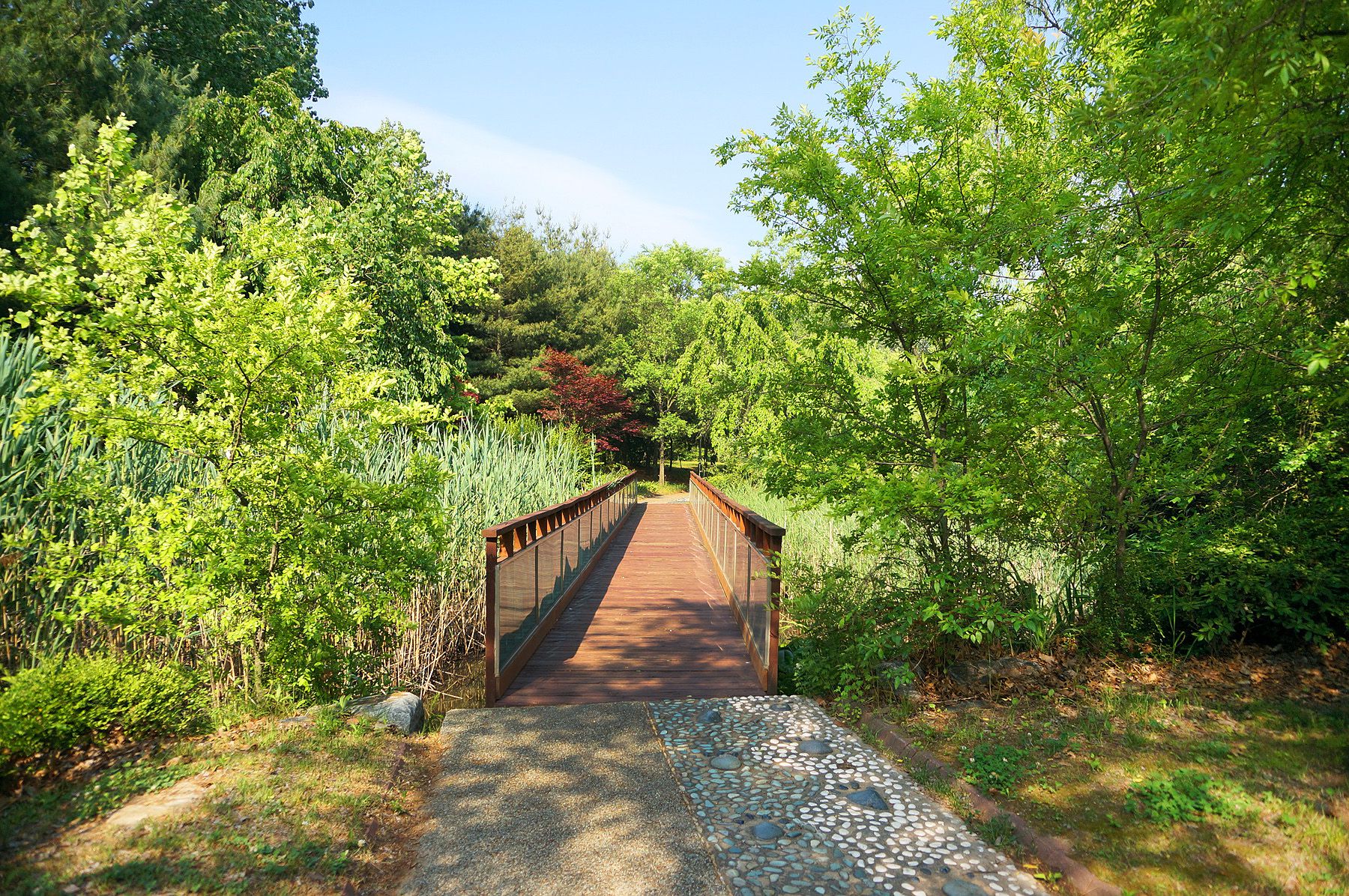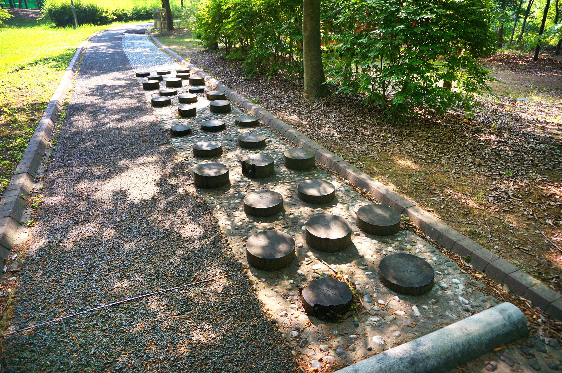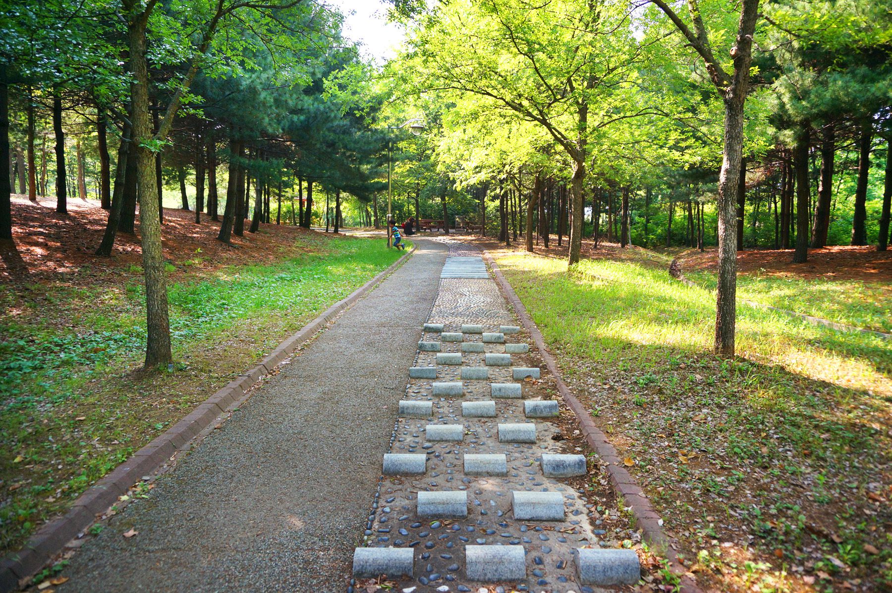 그늘진 오솔길 옆으로 놓인 지압길은 재미있고, 건강도 지킬 수 있는 최고의 매력장소입니다.