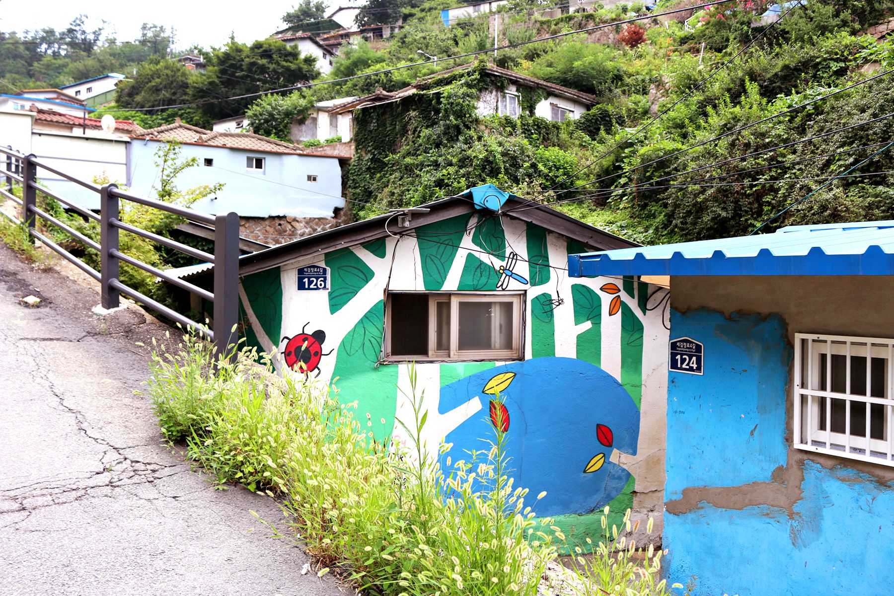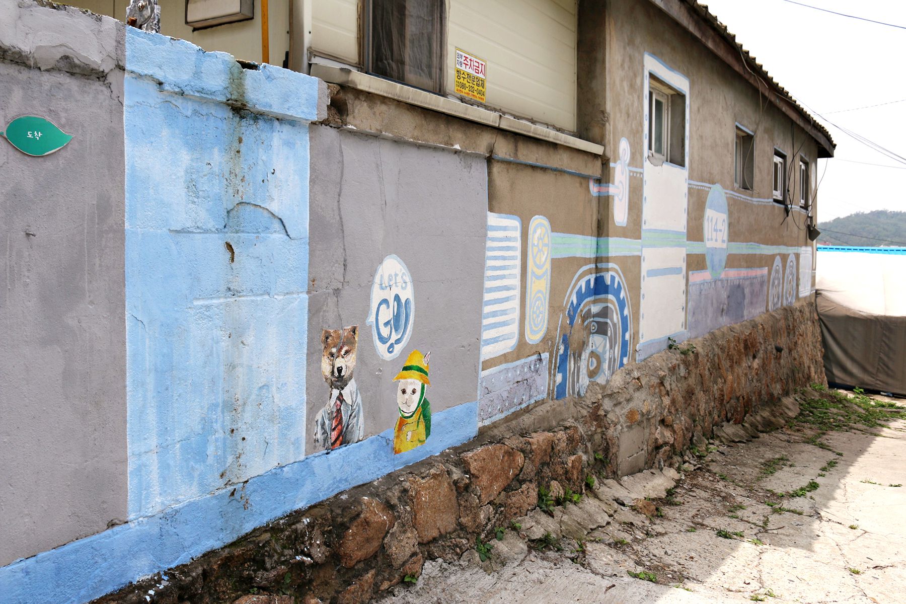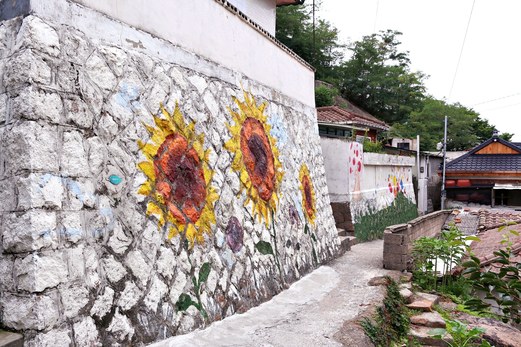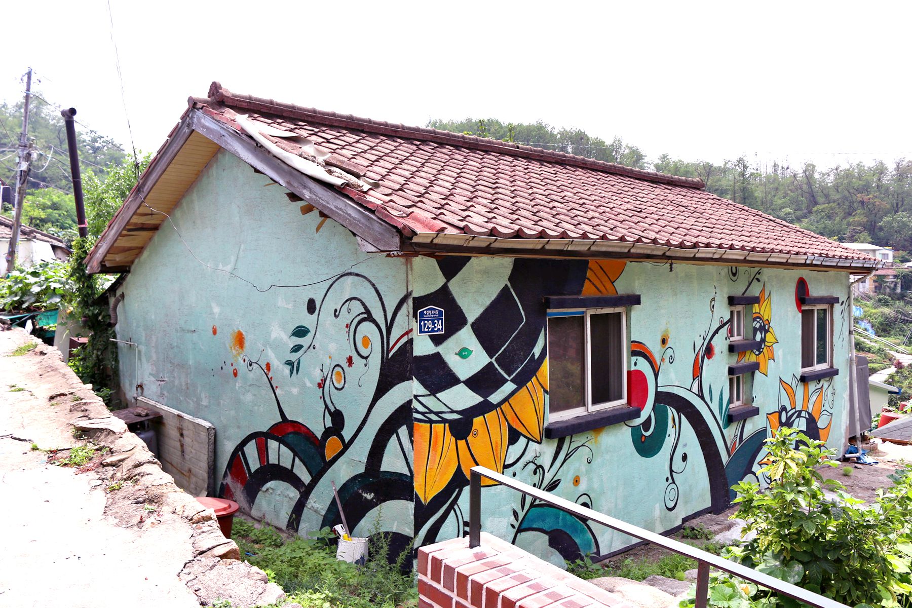 담벼락에 그려진 아기자기한 벽화로 사람들의 눈을 즐겁게 하는 마을입니다.