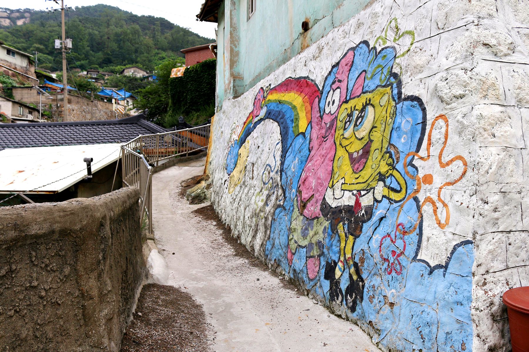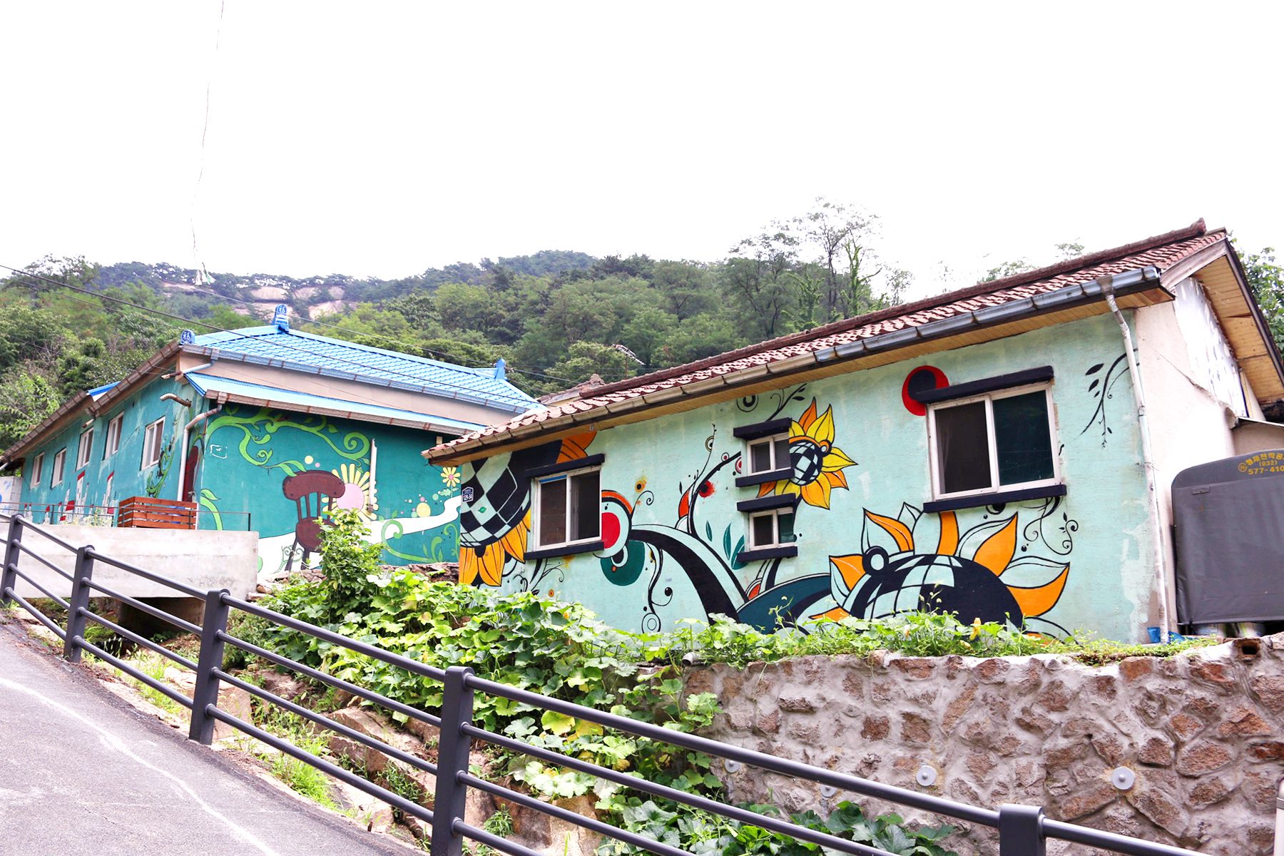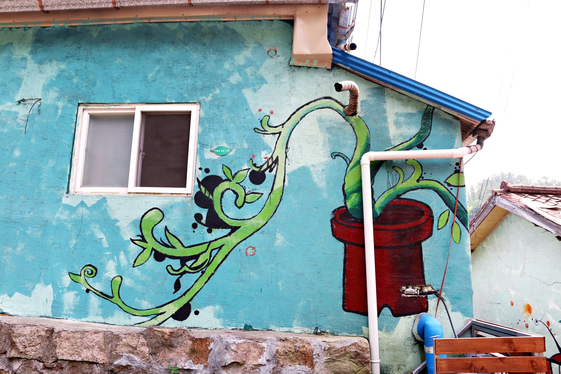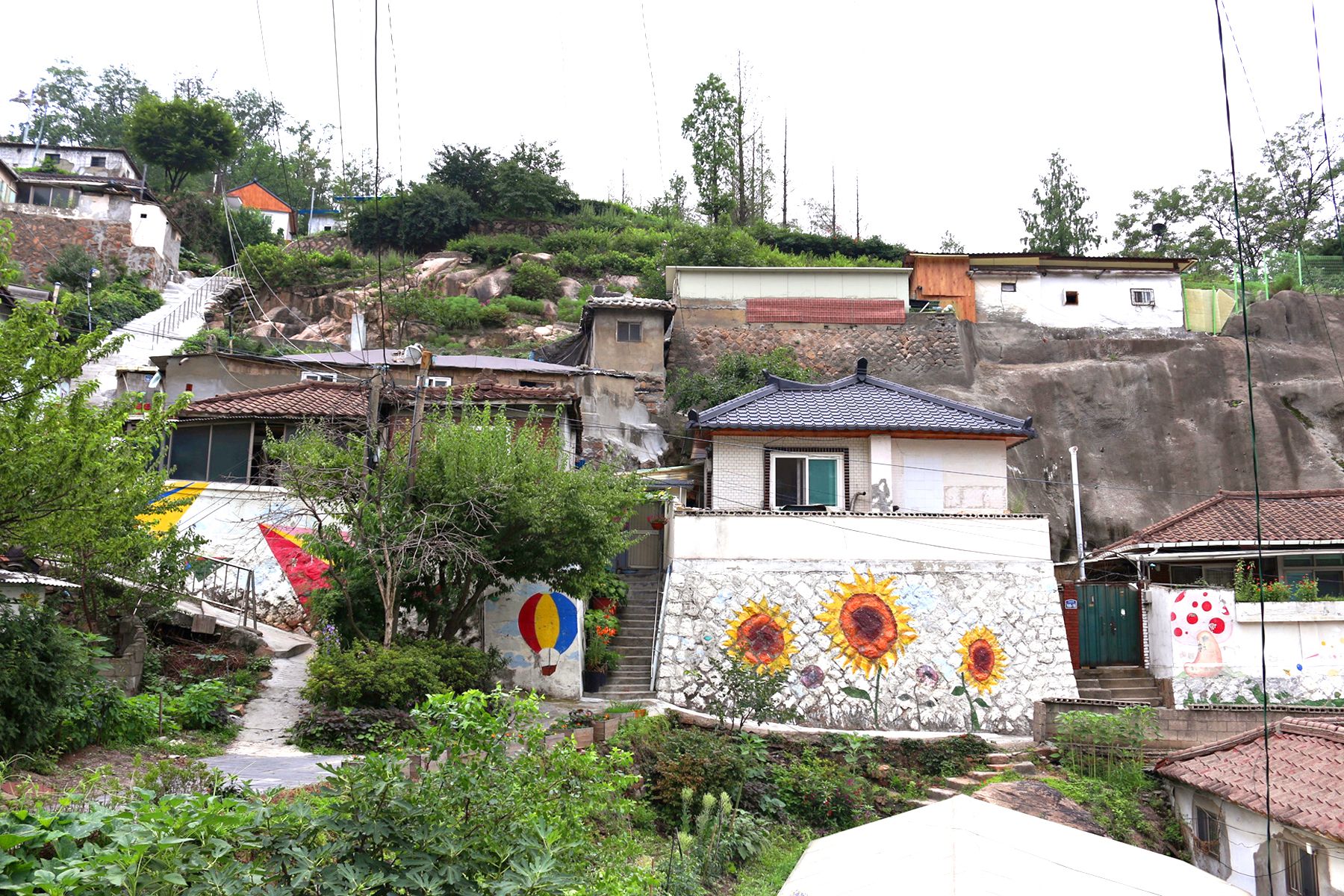 담벼락에 그려진 아기자기한 벽화로 사람들의 눈을 즐겁게 하는 마을입니다.