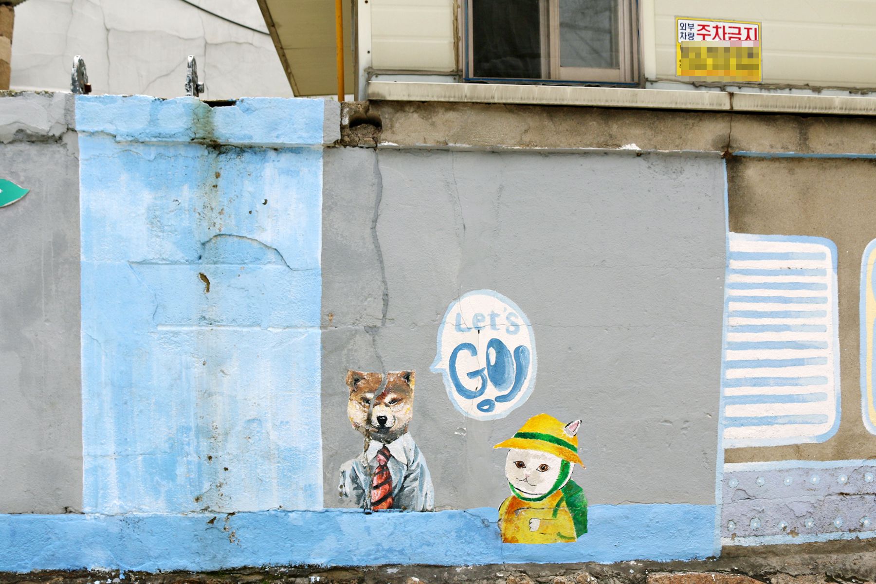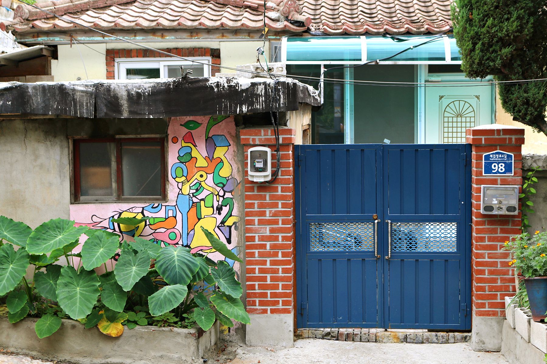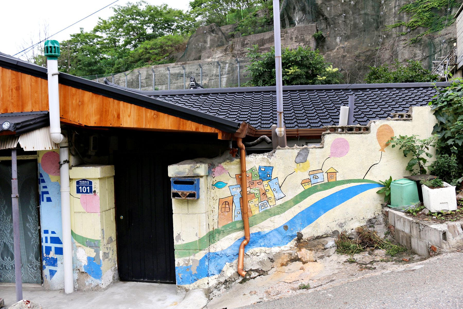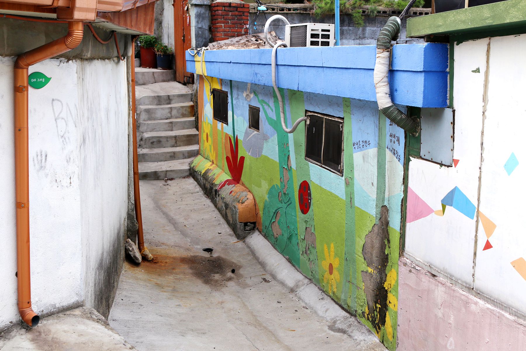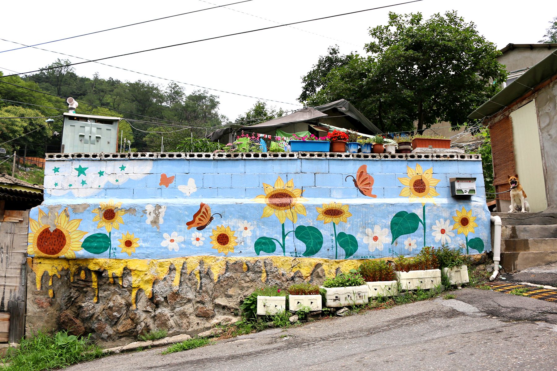 담벼락에 그려진 아기자기한 벽화로 사람들의 눈을 즐겁게 하는 마을입니다.