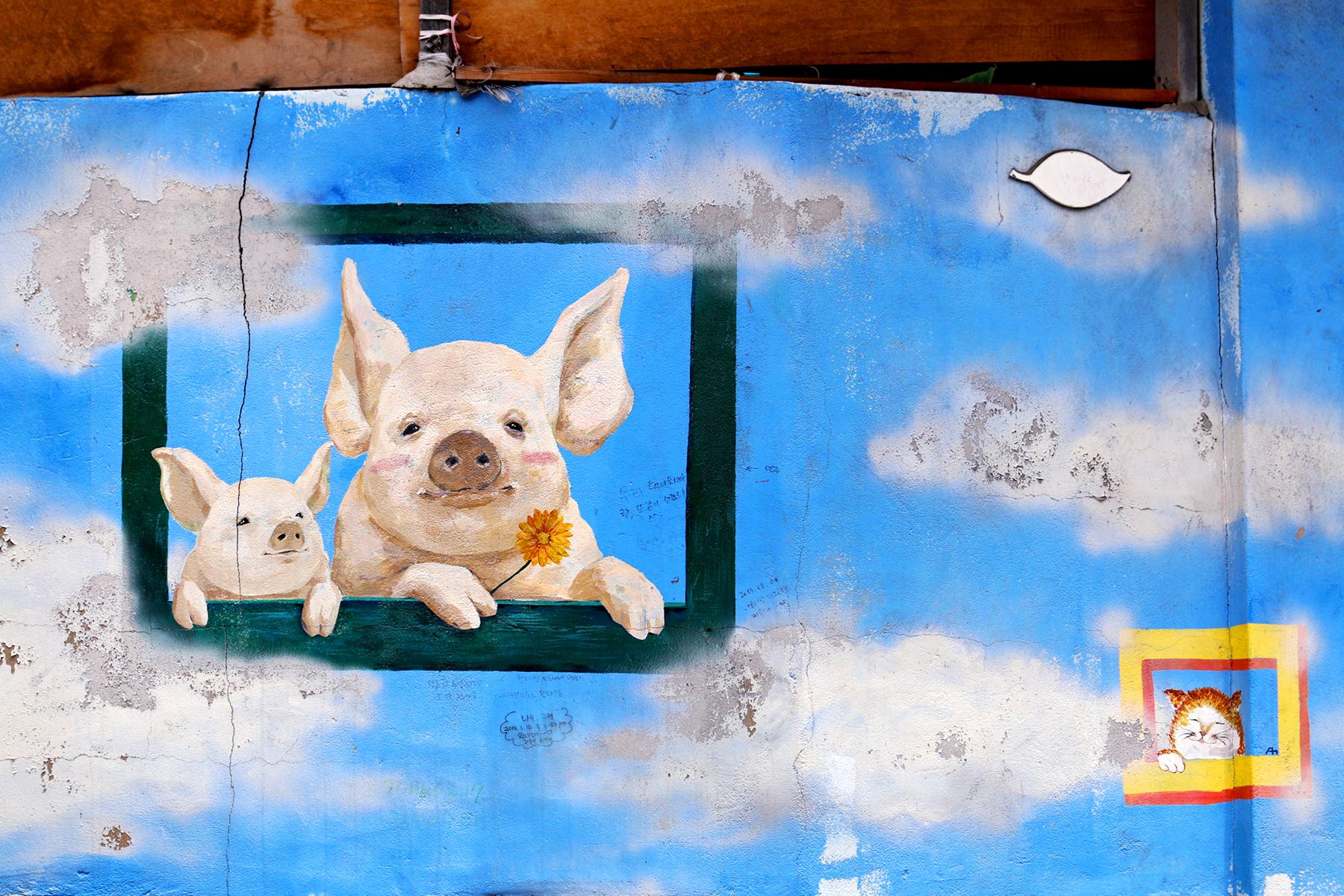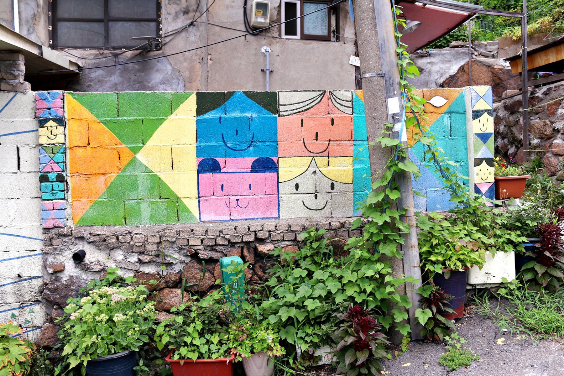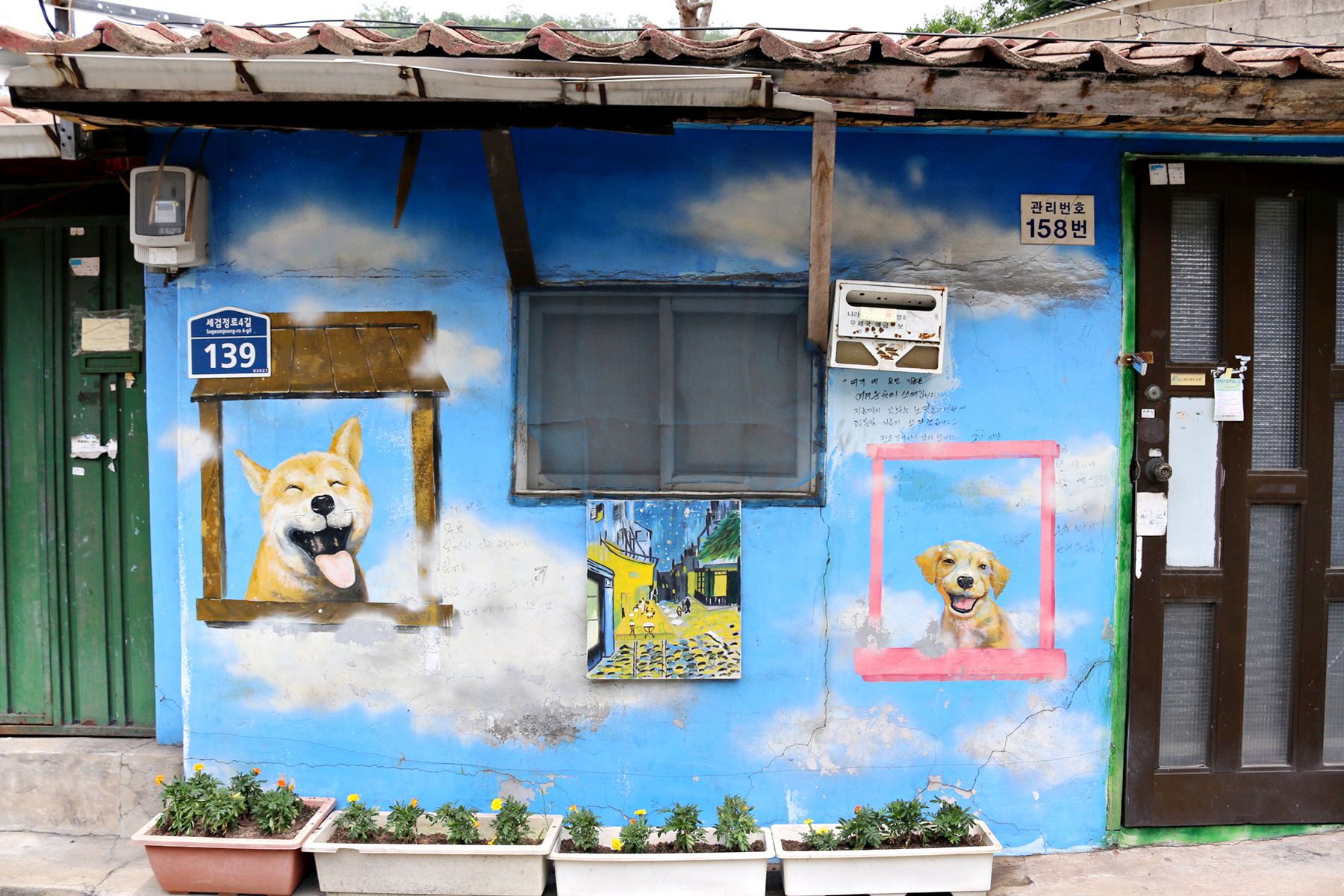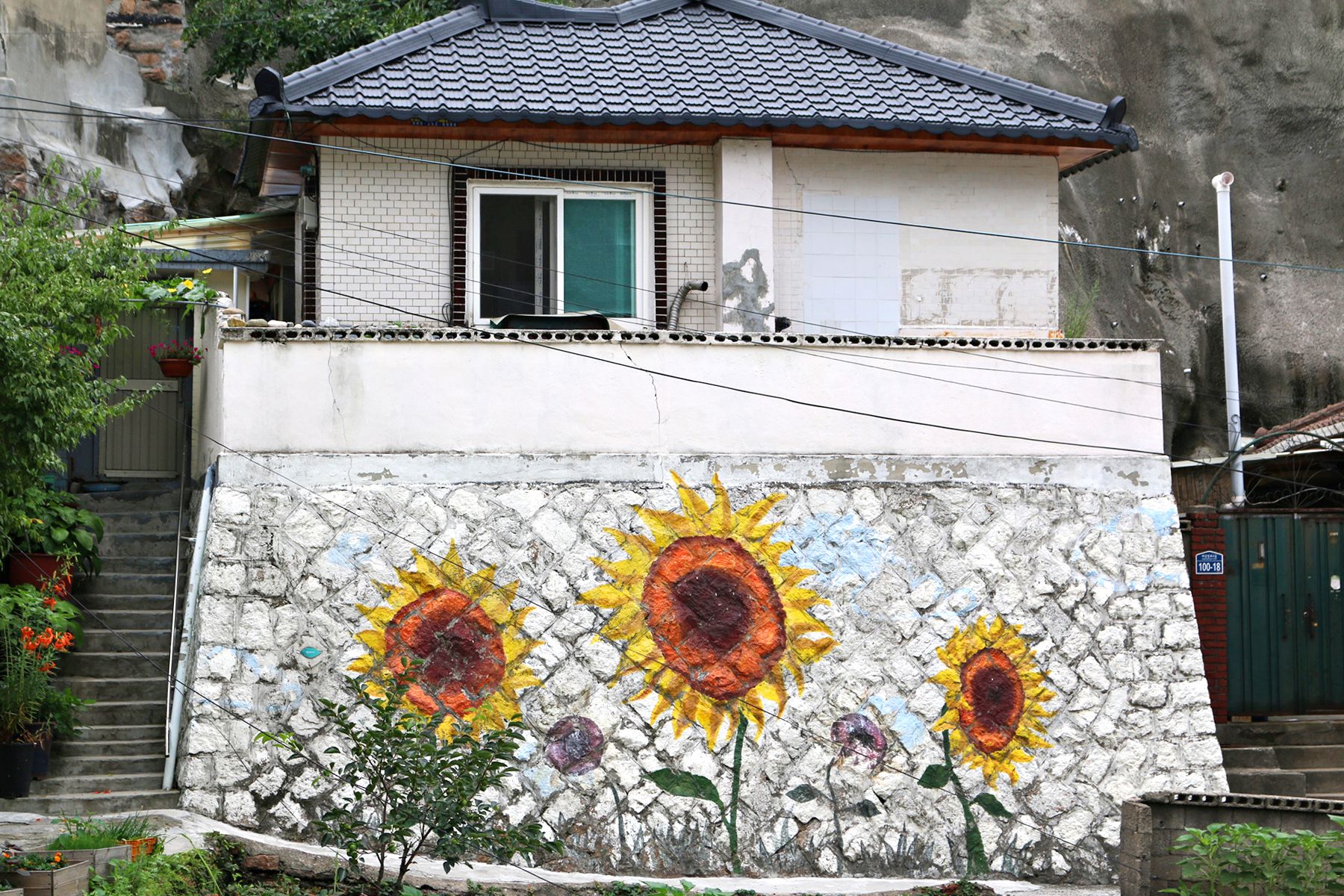 담벼락에 그려진 아기자기한 벽화로 사람들의 눈을 즐겁게 하는 마을입니다.