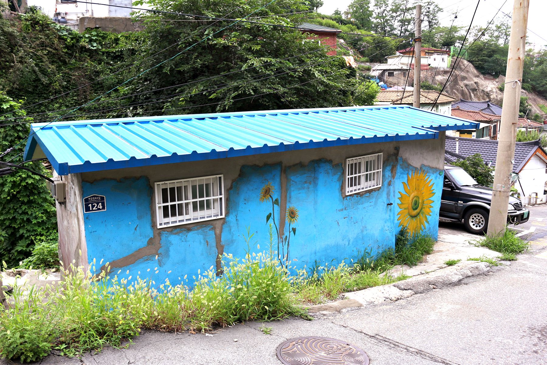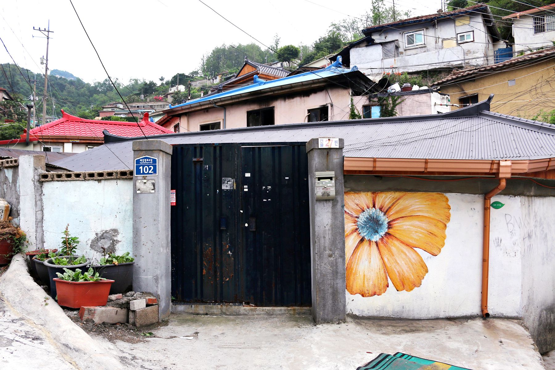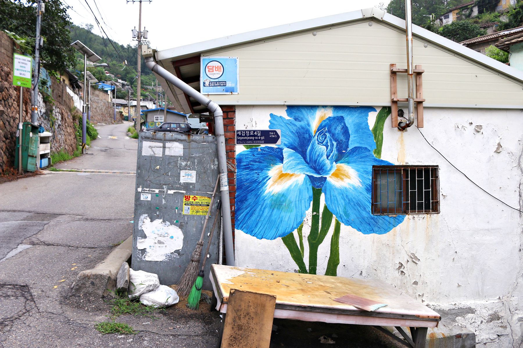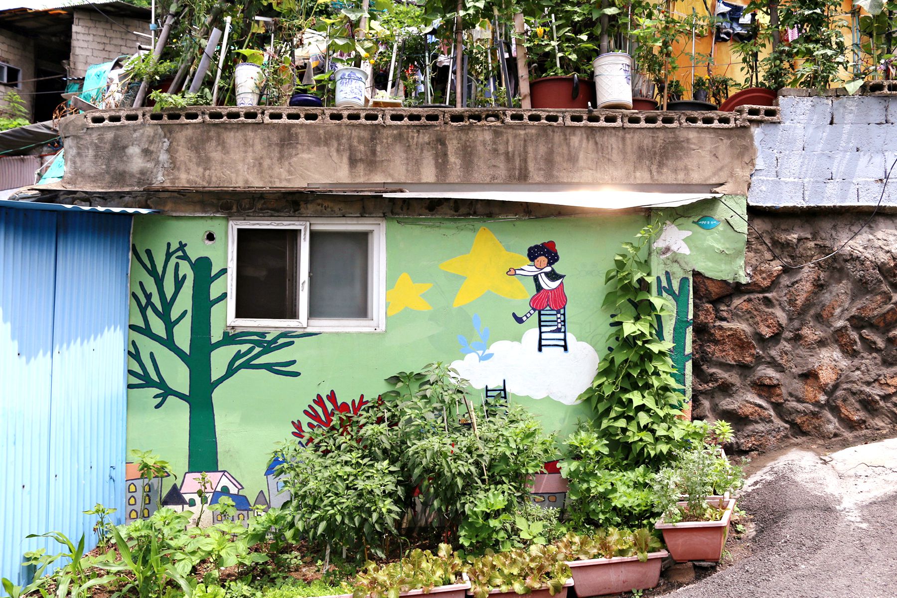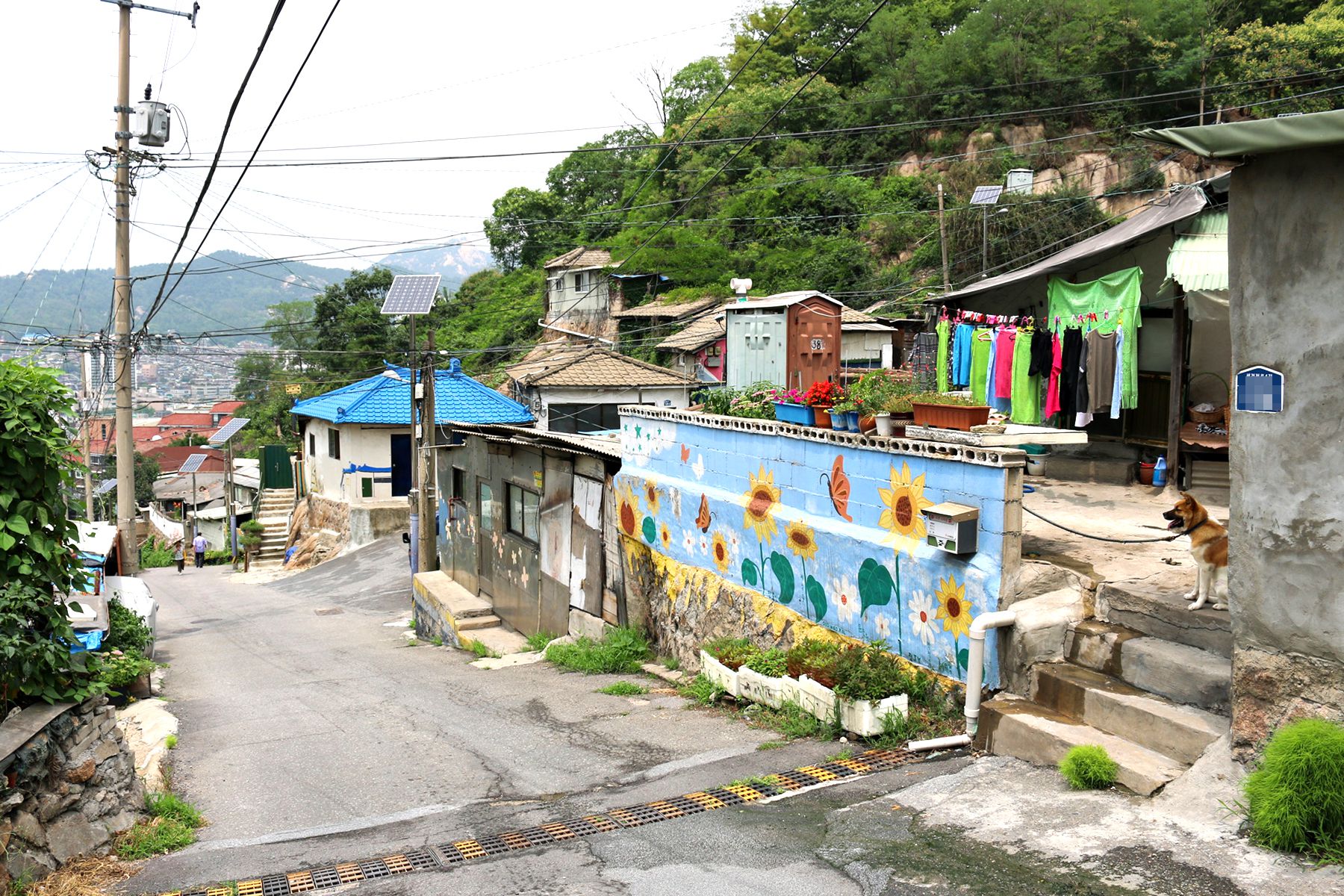 낡고 오래된 산동네 개미마을의 어둡던 분위기가 벽화가 그려진 후 산뜻하게 바뀌었습니다.