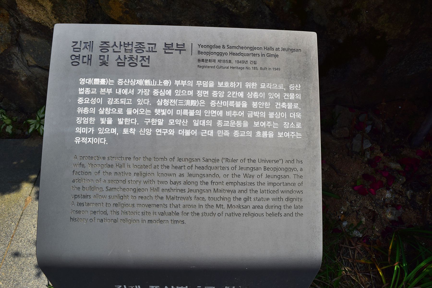 이 삼청전은 증산미륵불을 봉안하고 있는 건물로 대한민국 근대문화유산으로 지정되어 있으며