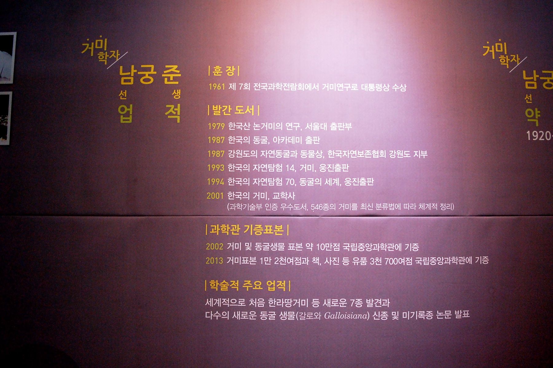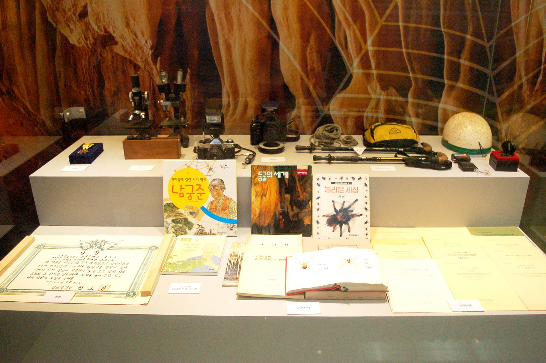 남궁준 선생님이 평생 수집한 여러 종류의 거미들이 전시되어 있습니다.