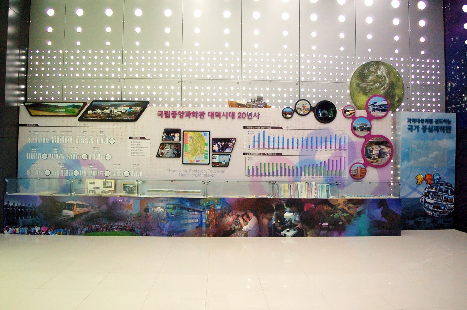로비는 국립중앙과학관 대덕시대 20년의 역사를 한눈에 알기 쉽도록 설명되어 있고