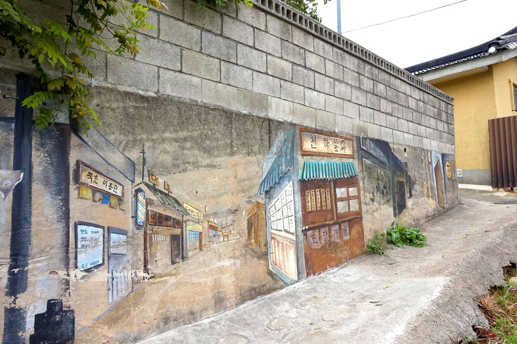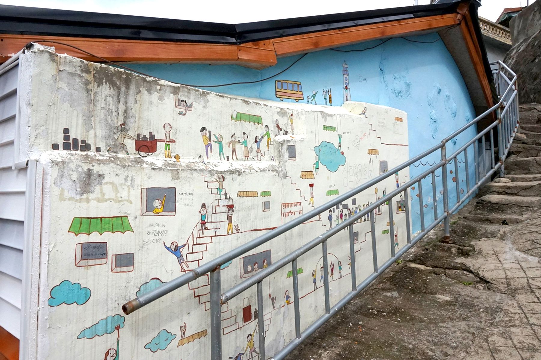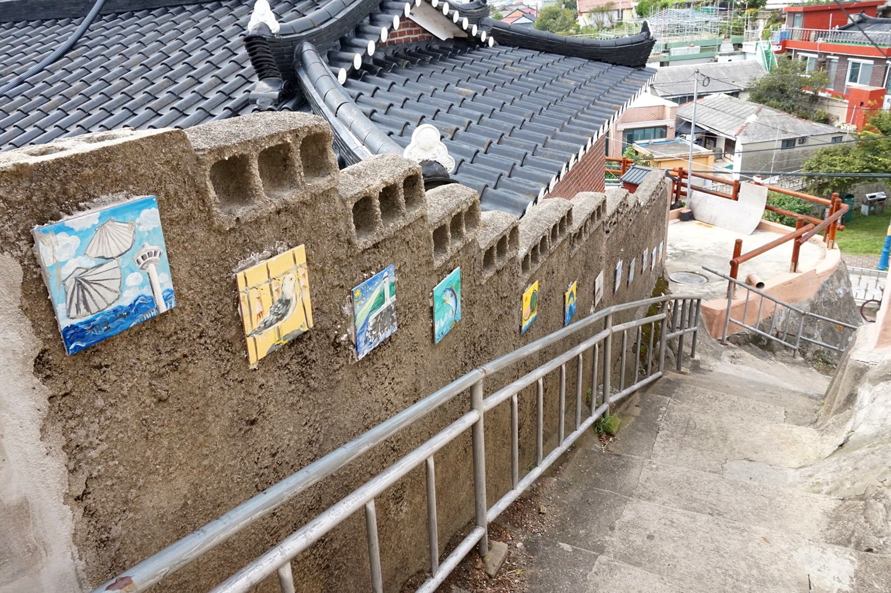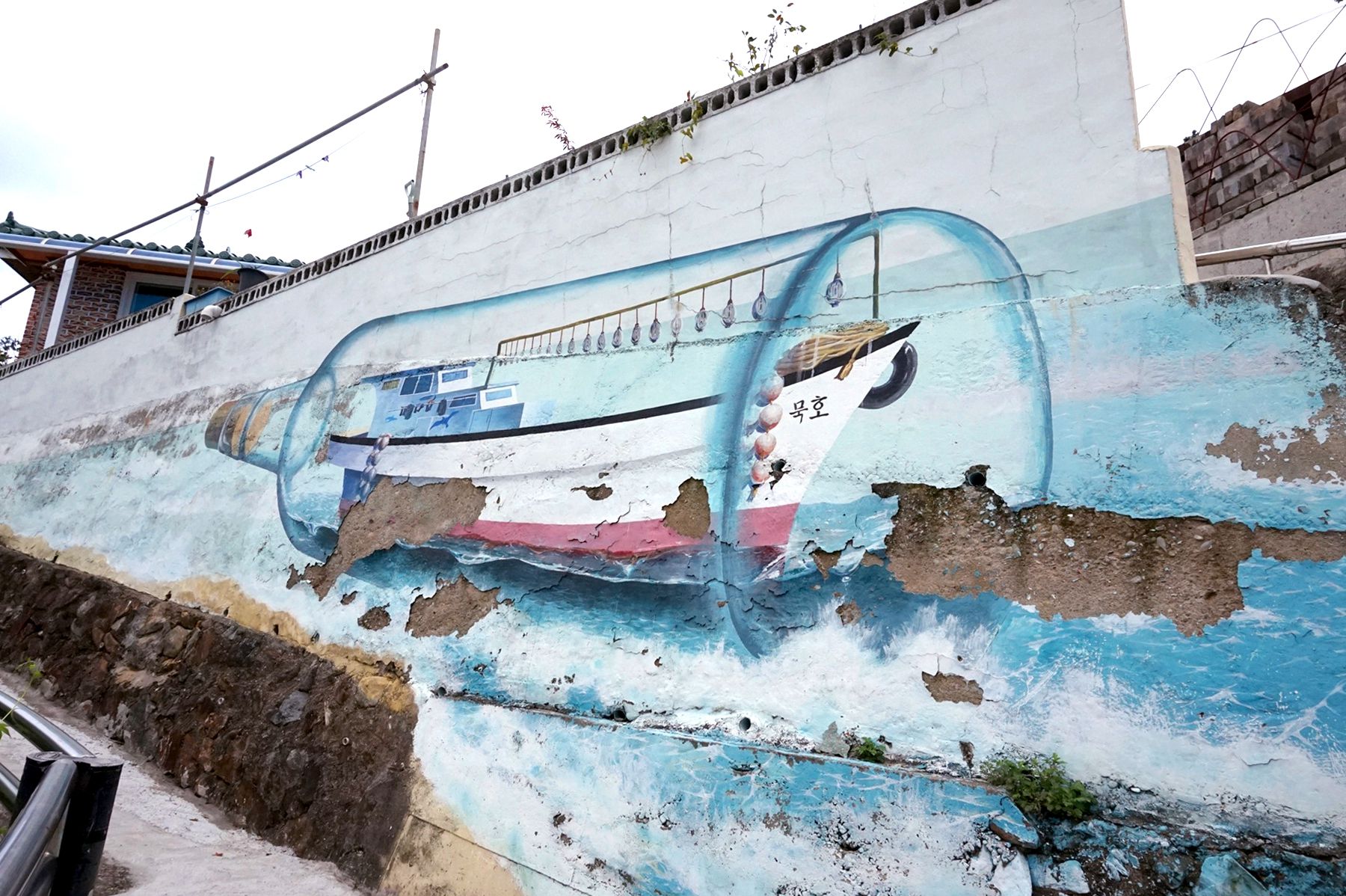 다른 벽화마을과는 조금 다르게 바다의 바로 옆 등대가 있는 아름다운 배경에 위치하여