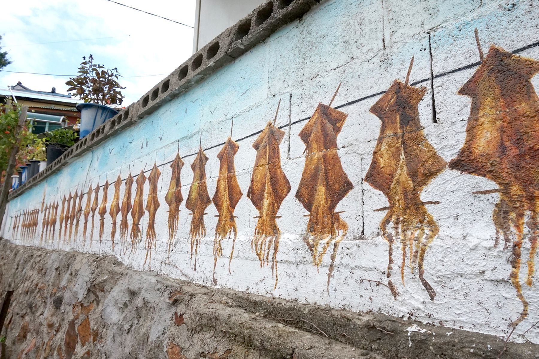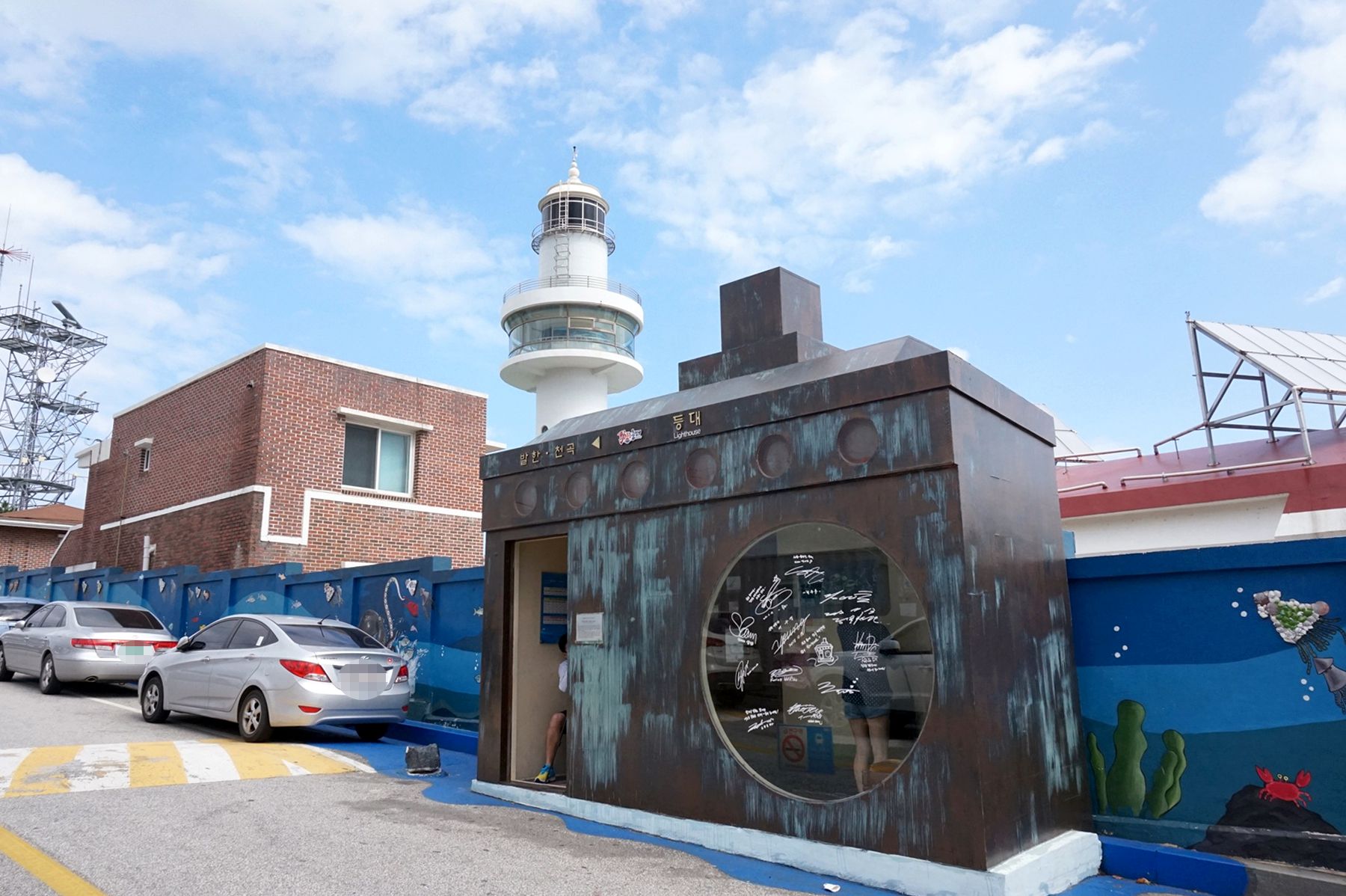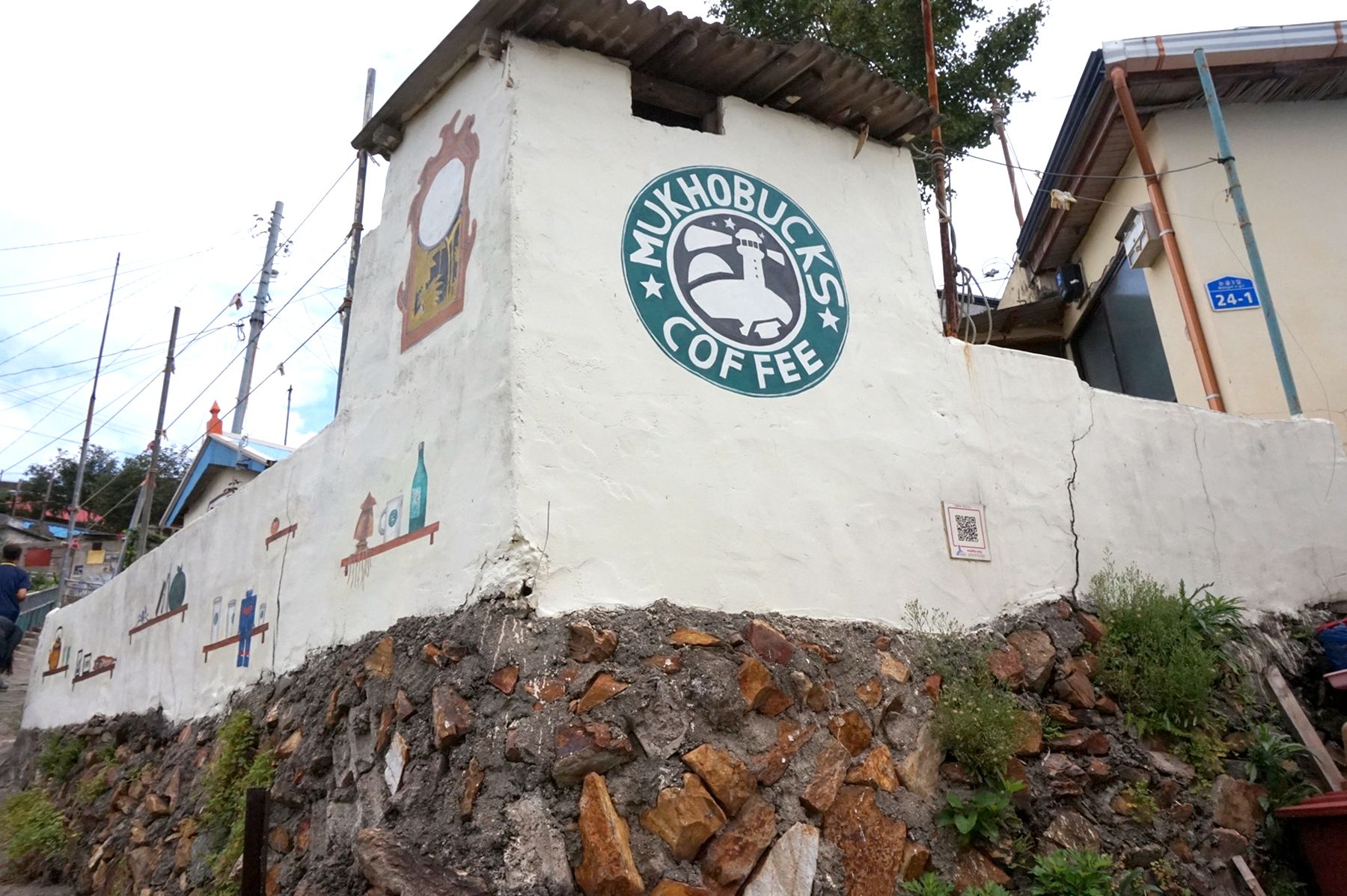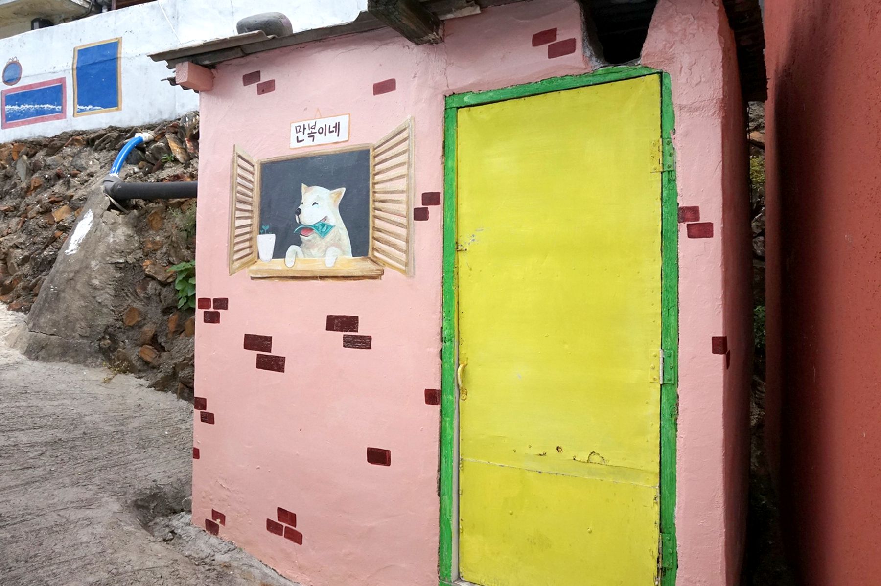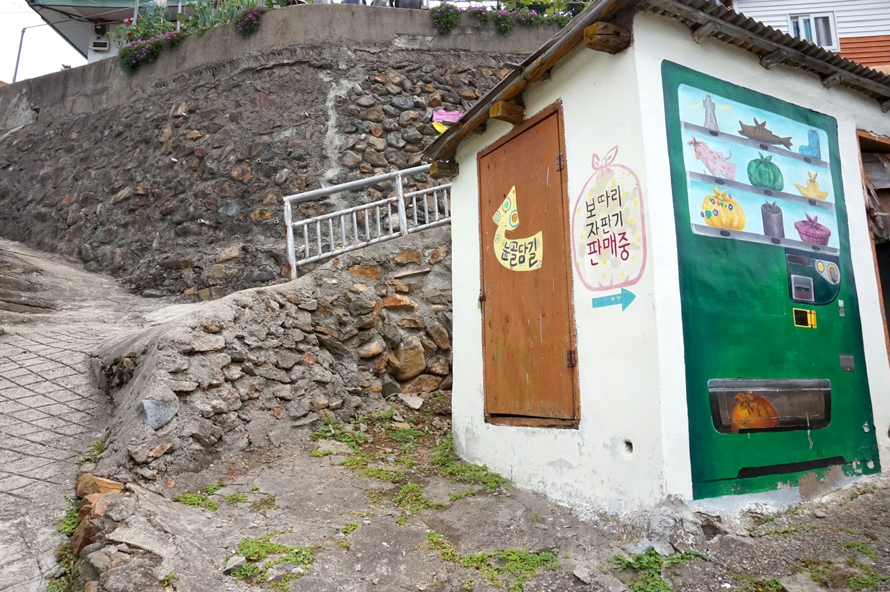 다른 벽화마을과는 조금 다르게 바다의 바로 옆 등대가 있는 아름다운 배경에 위치하여