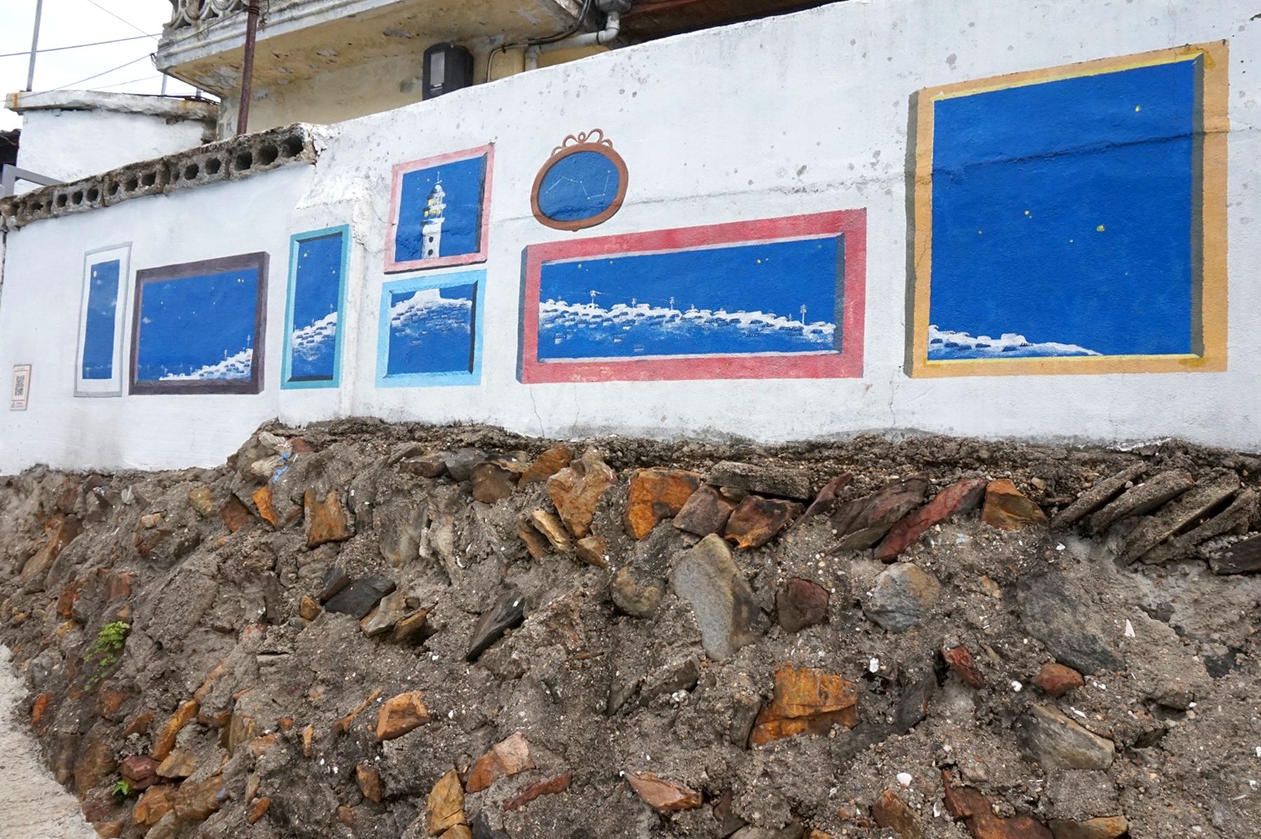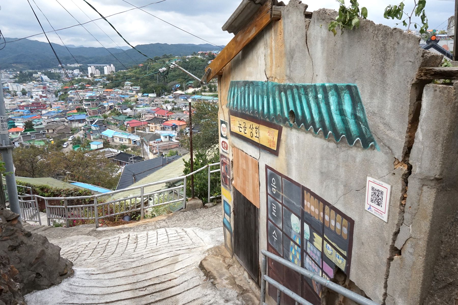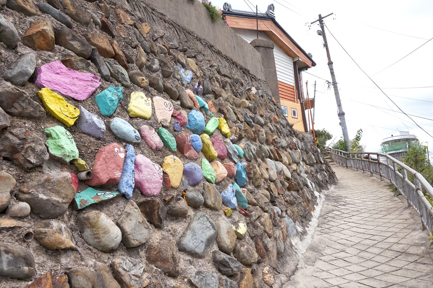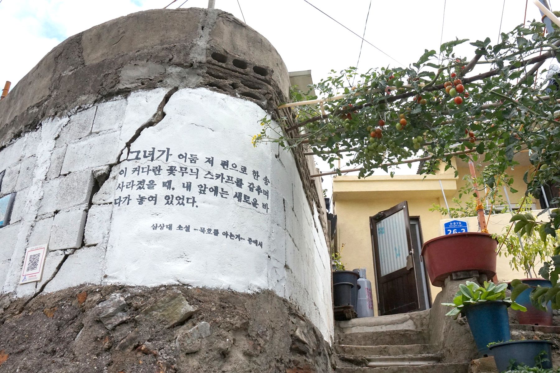 다른 벽화마을과는 조금 다르게 바다의 바로 옆 등대가 있는 아름다운 배경에 위치하여