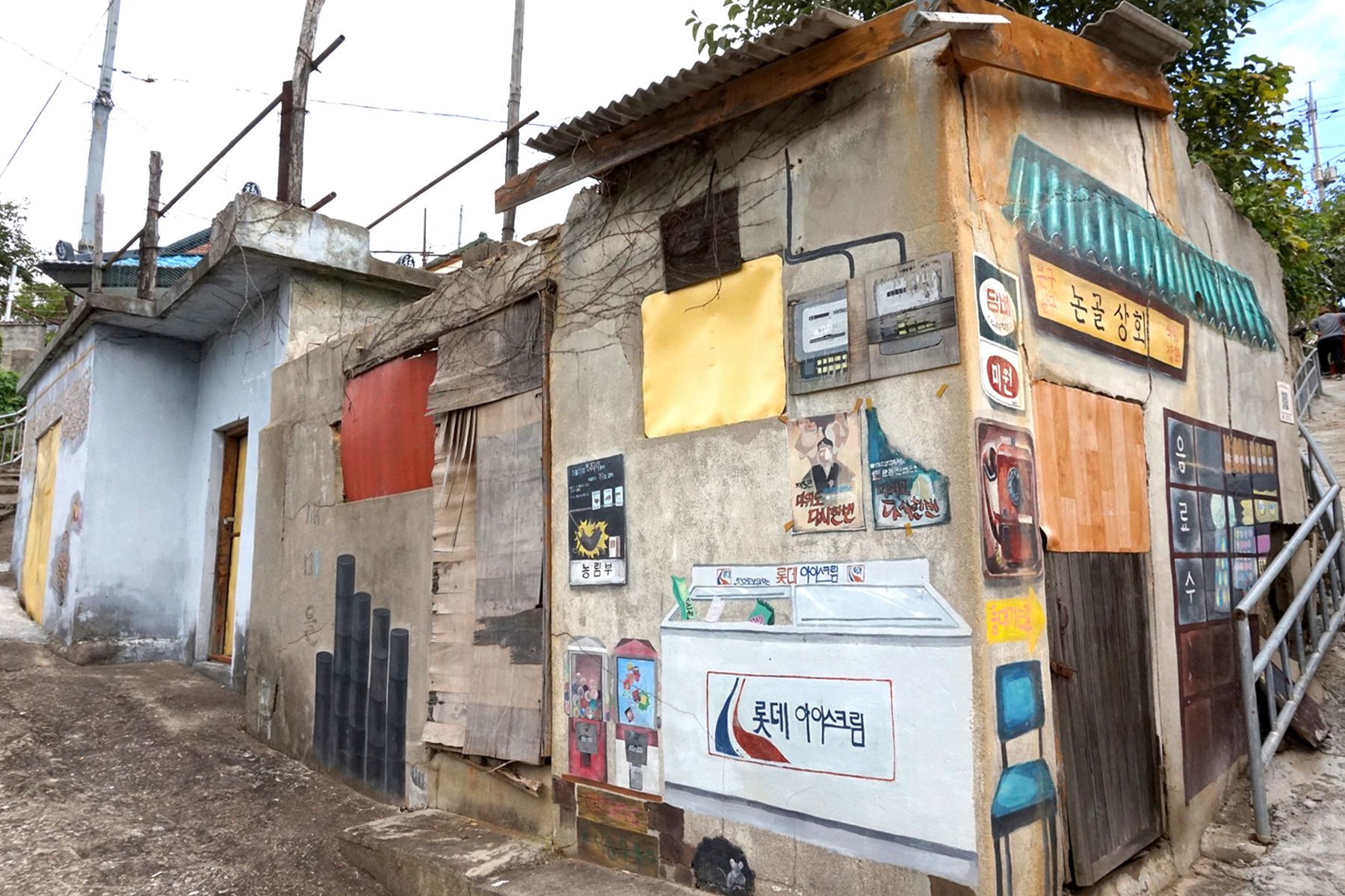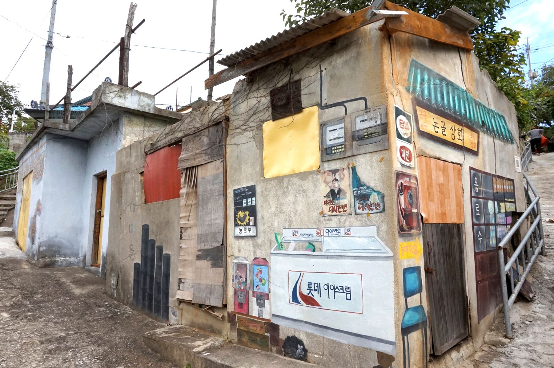 또 오래전의 골목길 배경이었을 법한 상가나 집을 나타내는 그림들은 사람 사는 이야기를 보는 것처럼
