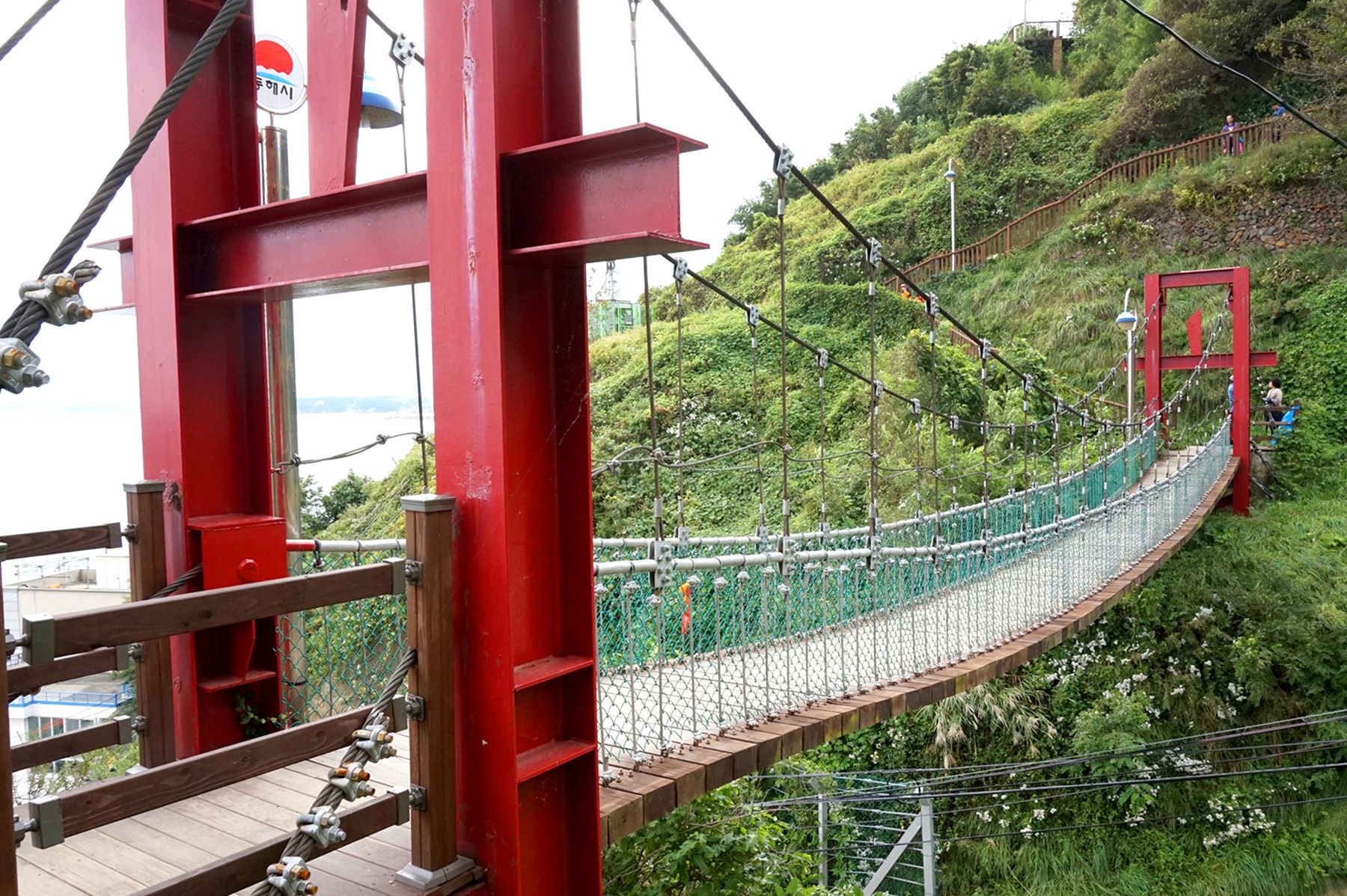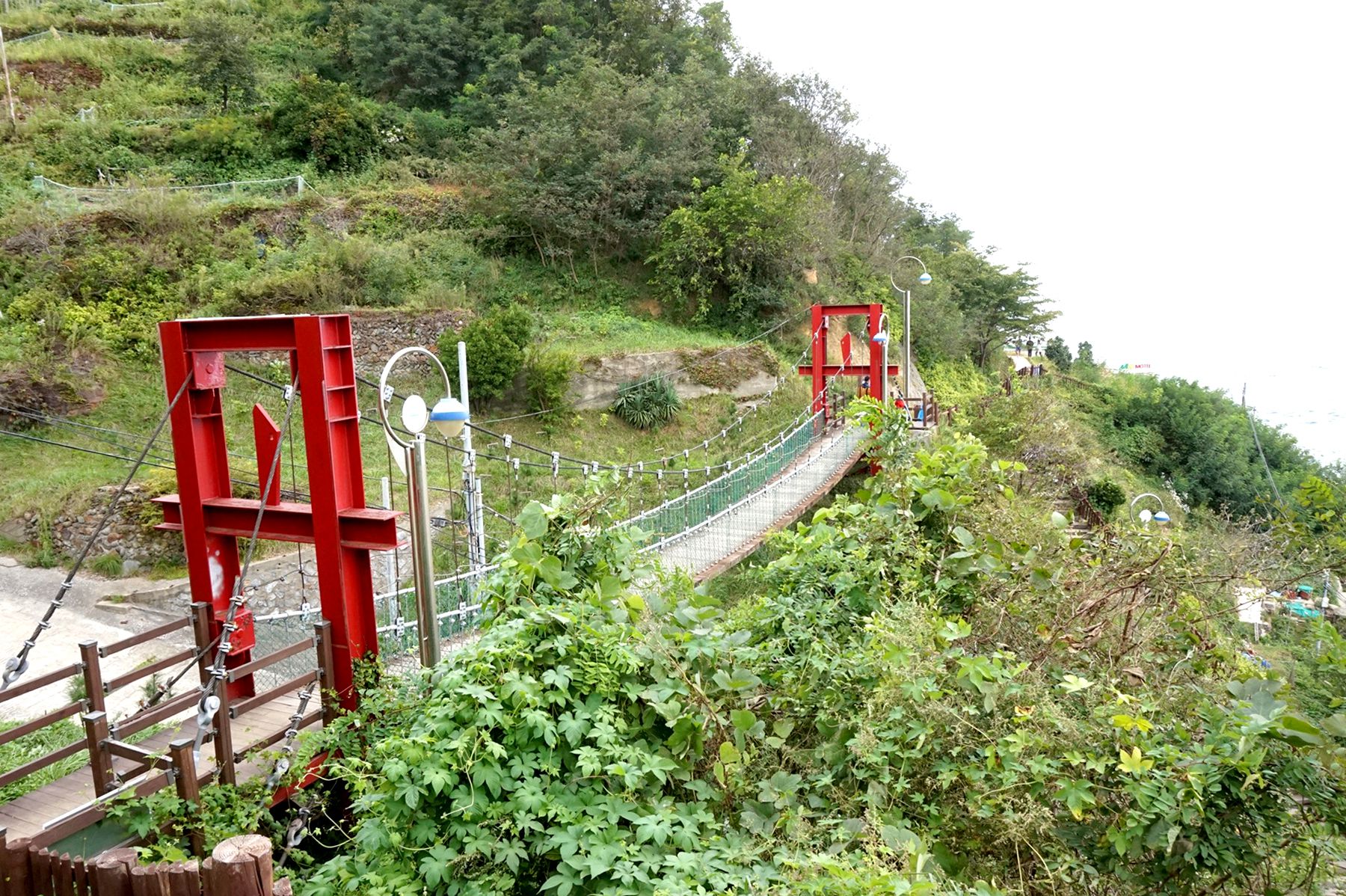 한발 한발 옮길 때마다 살짝 출렁이는 다리가 스릴도 있고, 건너로 보이는 아름다운 푸른바다가 장관인 곳입니다.
