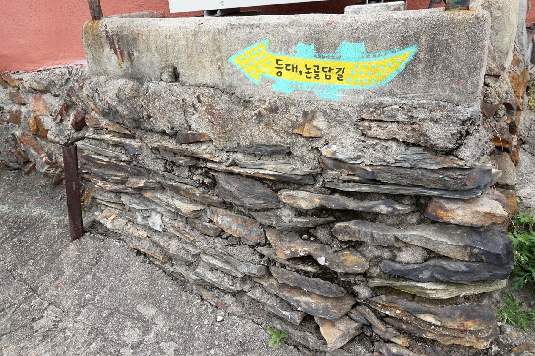 묵호항을 따라 횟집들의 뒤쪽으로 올라가다 보면 등대가 있는 마을 논골담길의 입구가 나옵니다.
