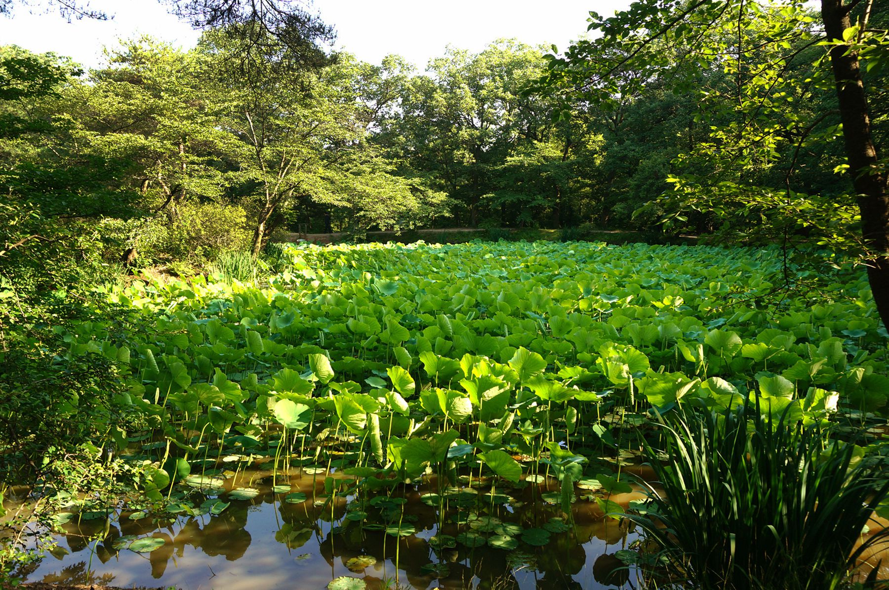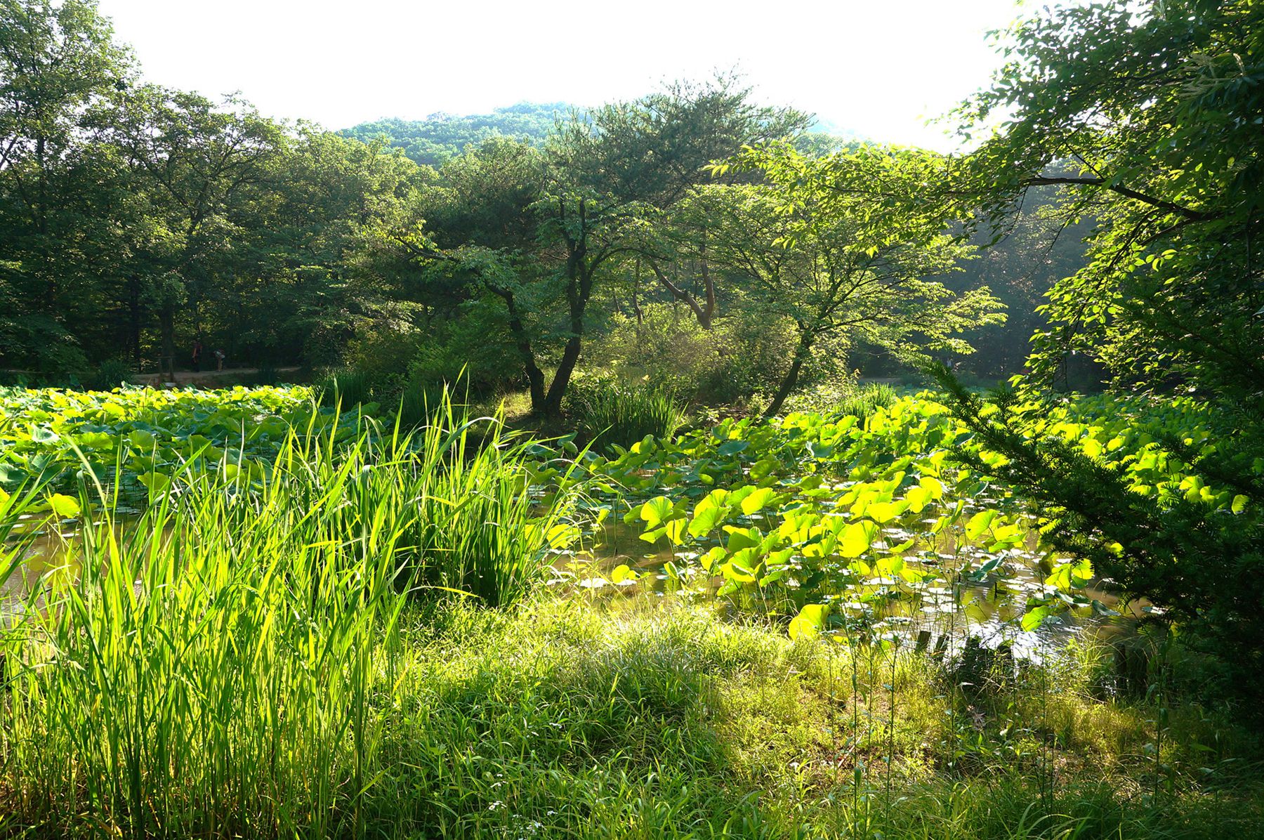 산책길을 따라가다 보면 관광지에서나 만나볼 수 있는 연잎 무성한 연못이 장관을 이루고 있습니다.