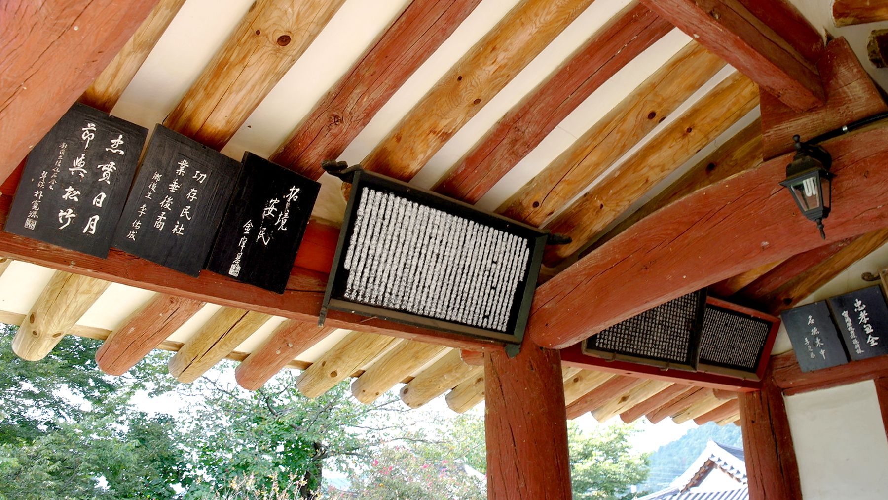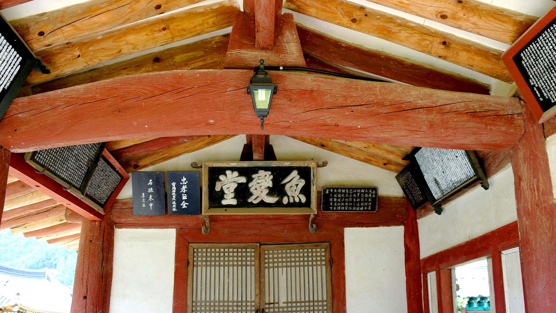 원기둥을 사용하여 건축된 어변당 내부에는 현판과 상량문 등이 부착되어 있습니다.