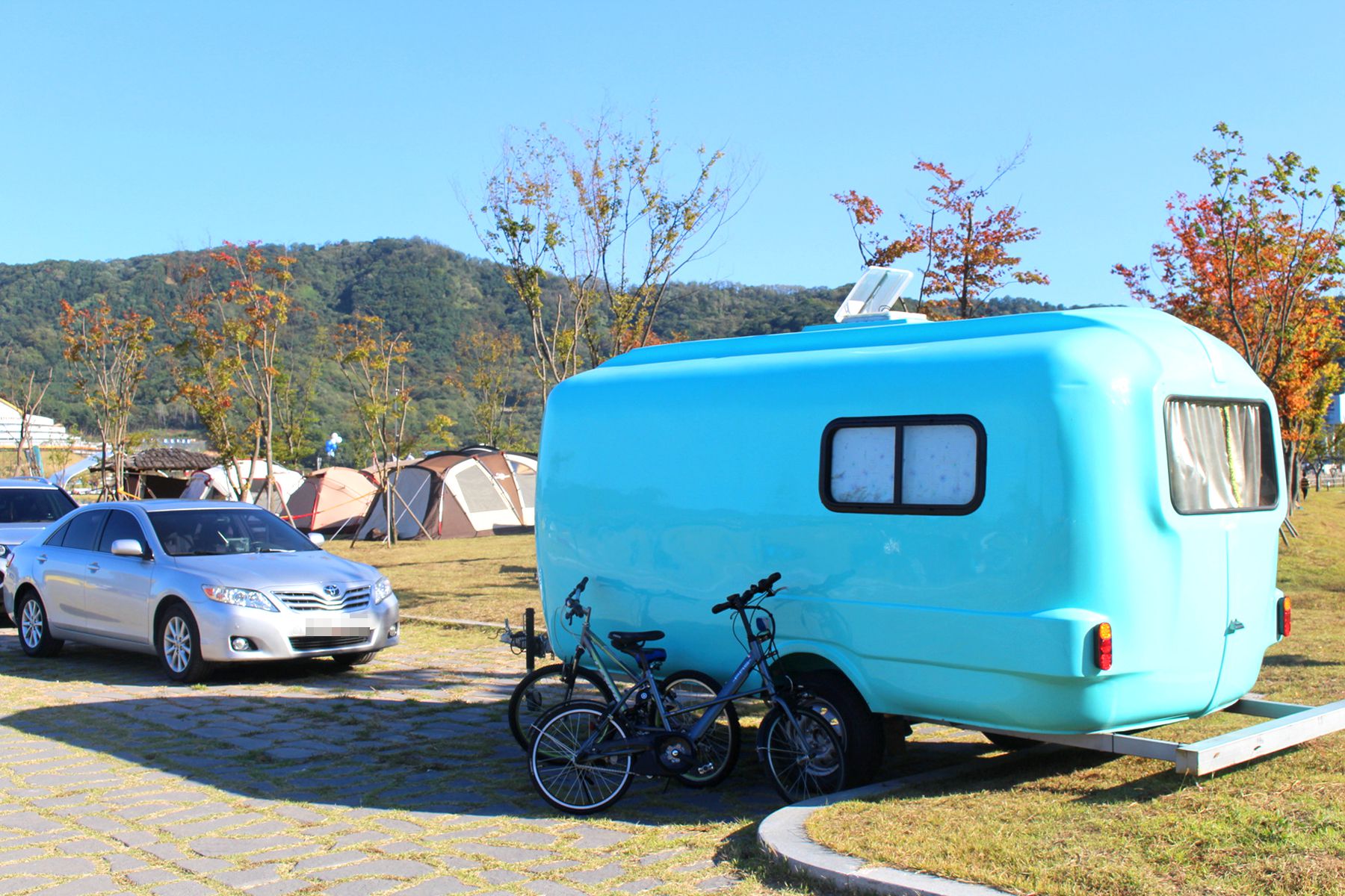 캠핑장에는 자동차 주차공간뿐만 아니라 자전거 주차공간까지 마련되어 있는데요,