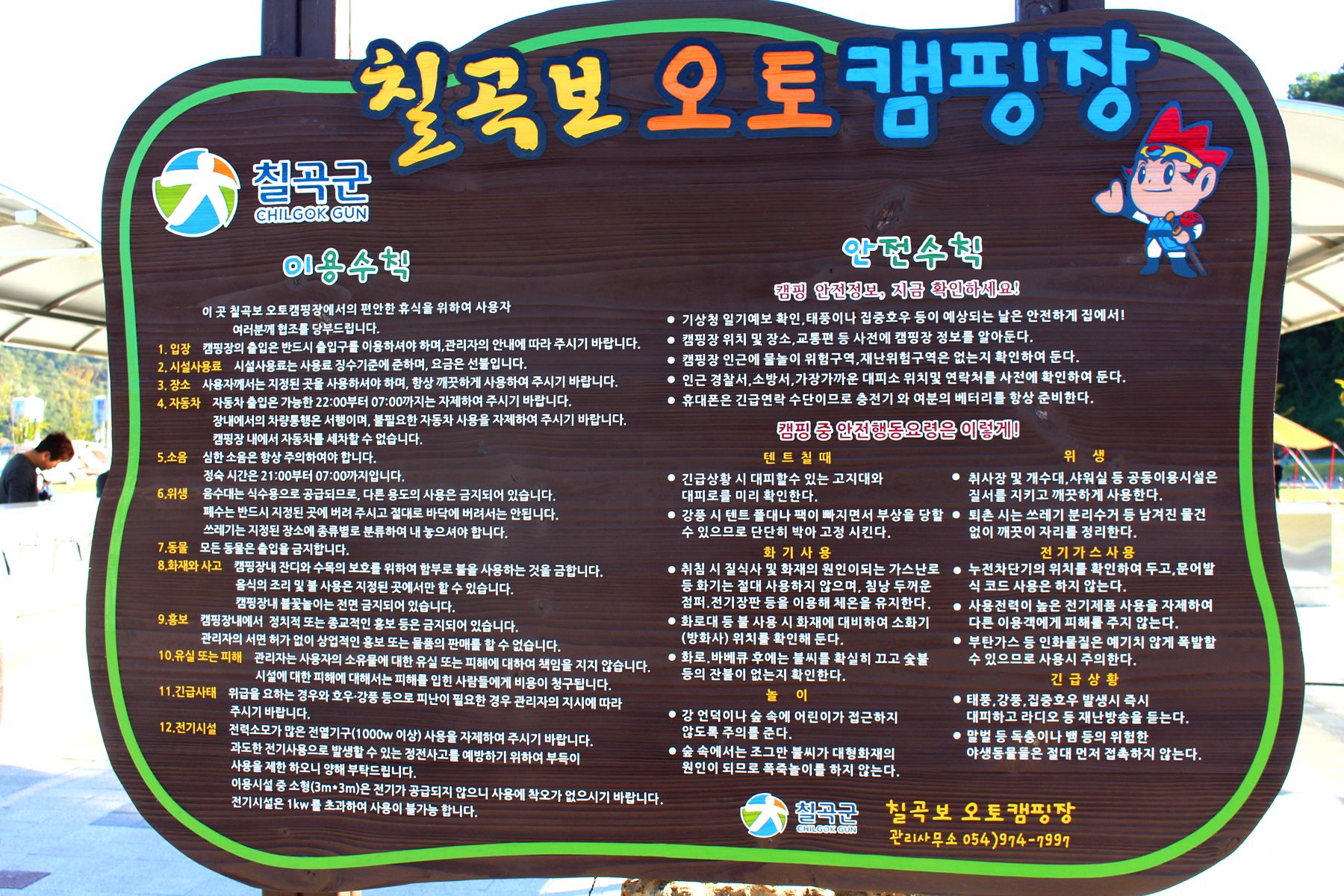 다함께 이용하는 칠곡보 오토캠핑장의 이용수칙을 잘 숙지하셔서 서로가 편한 캠핑문화를 만들어가면 좋겠습니다^^
