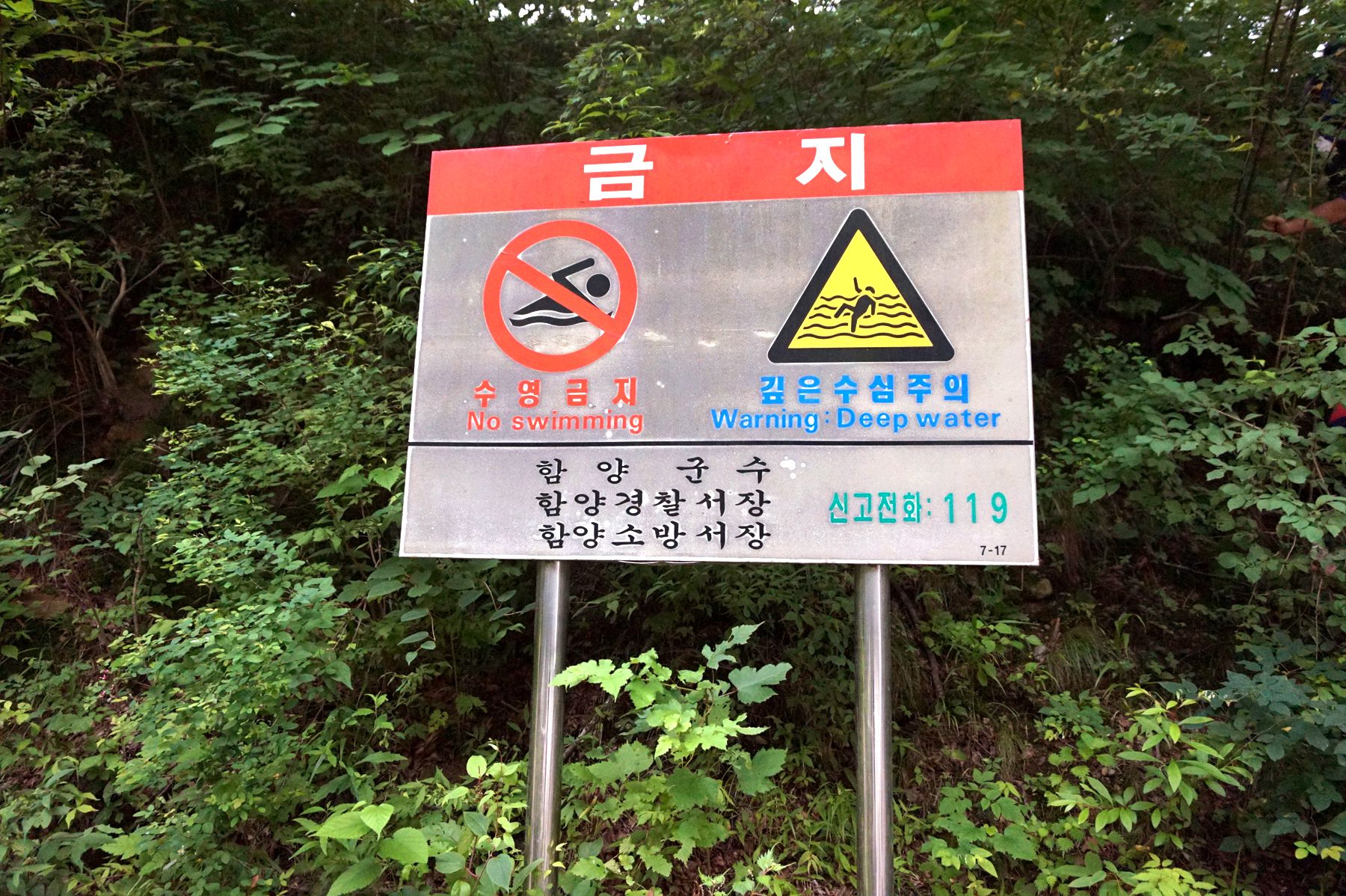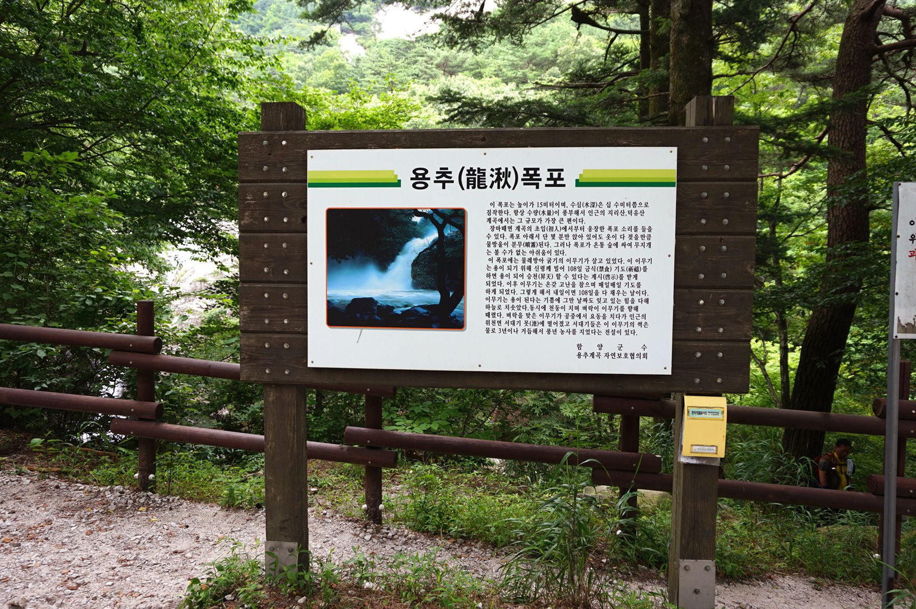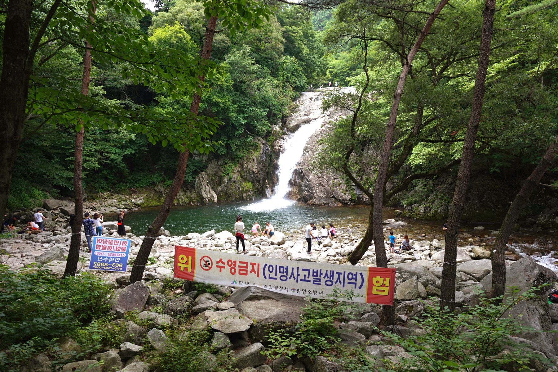 용추폭포는 십수미터로 짐작되는 높은 수심으로 안전상 수영이 금지되어 있으며,