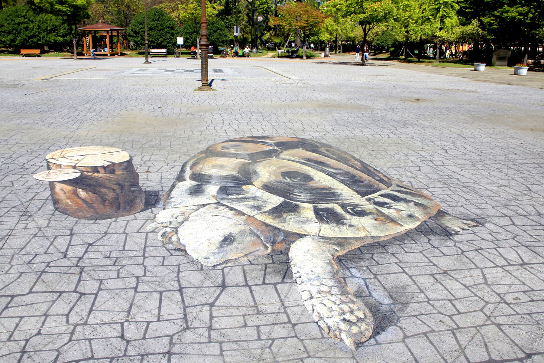 거북공원을 상징하듯 바닥에 거북이 모양이 그려져 있어 보는 것만으로도 색다른 즐거움을 느껴볼 수 있습니다^^