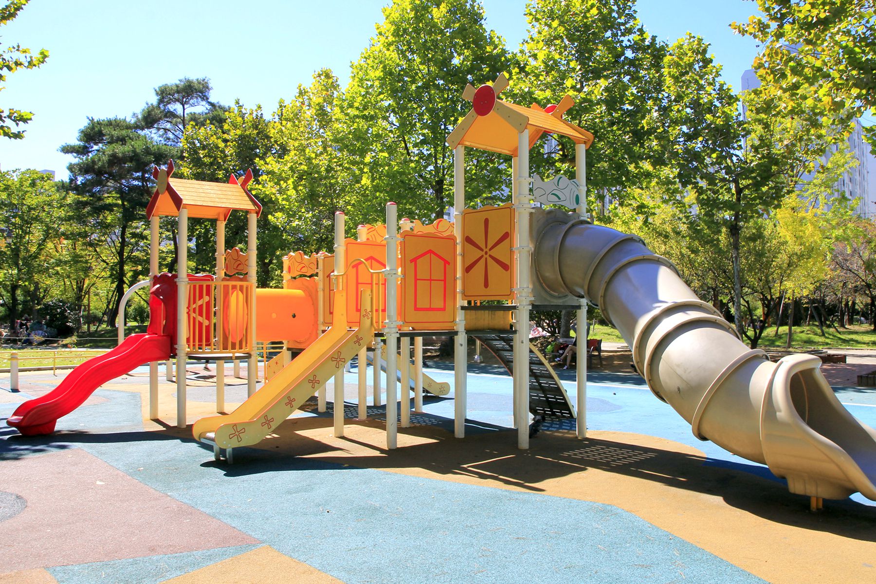 공원 내 마련된 어린이놀이터는 위생관리를 위해 애완동물의 출입이 금지되어 있으며