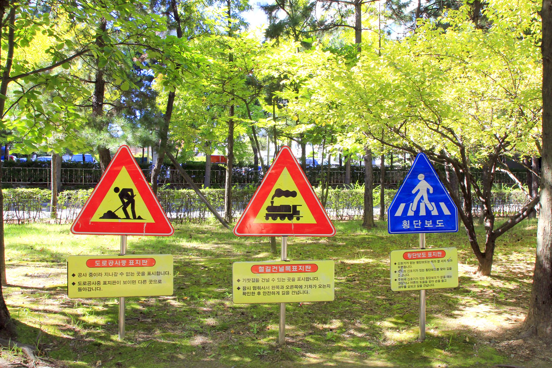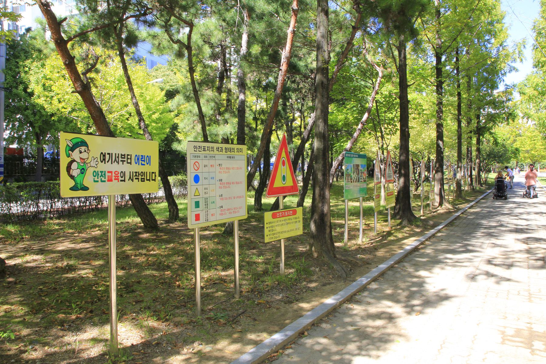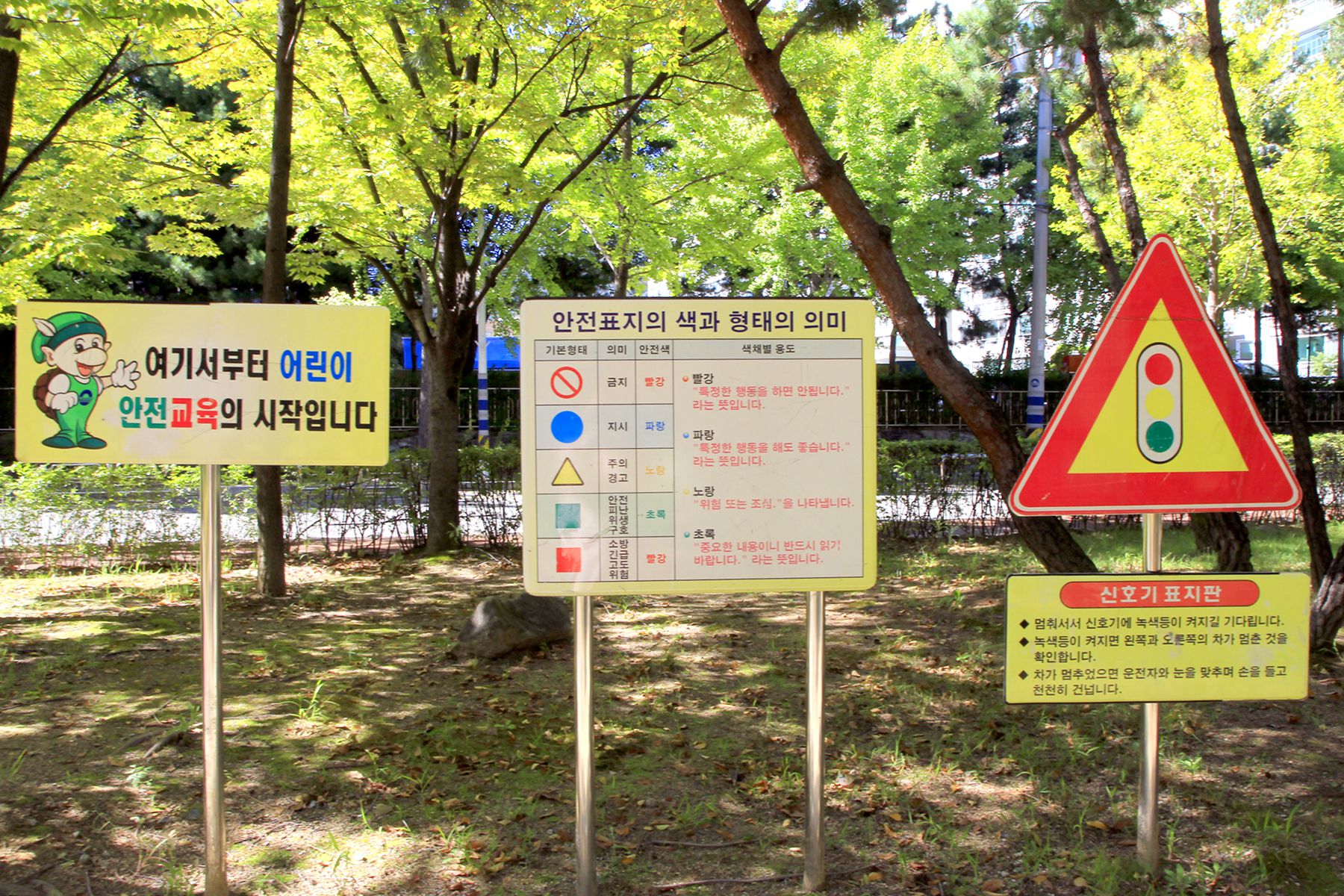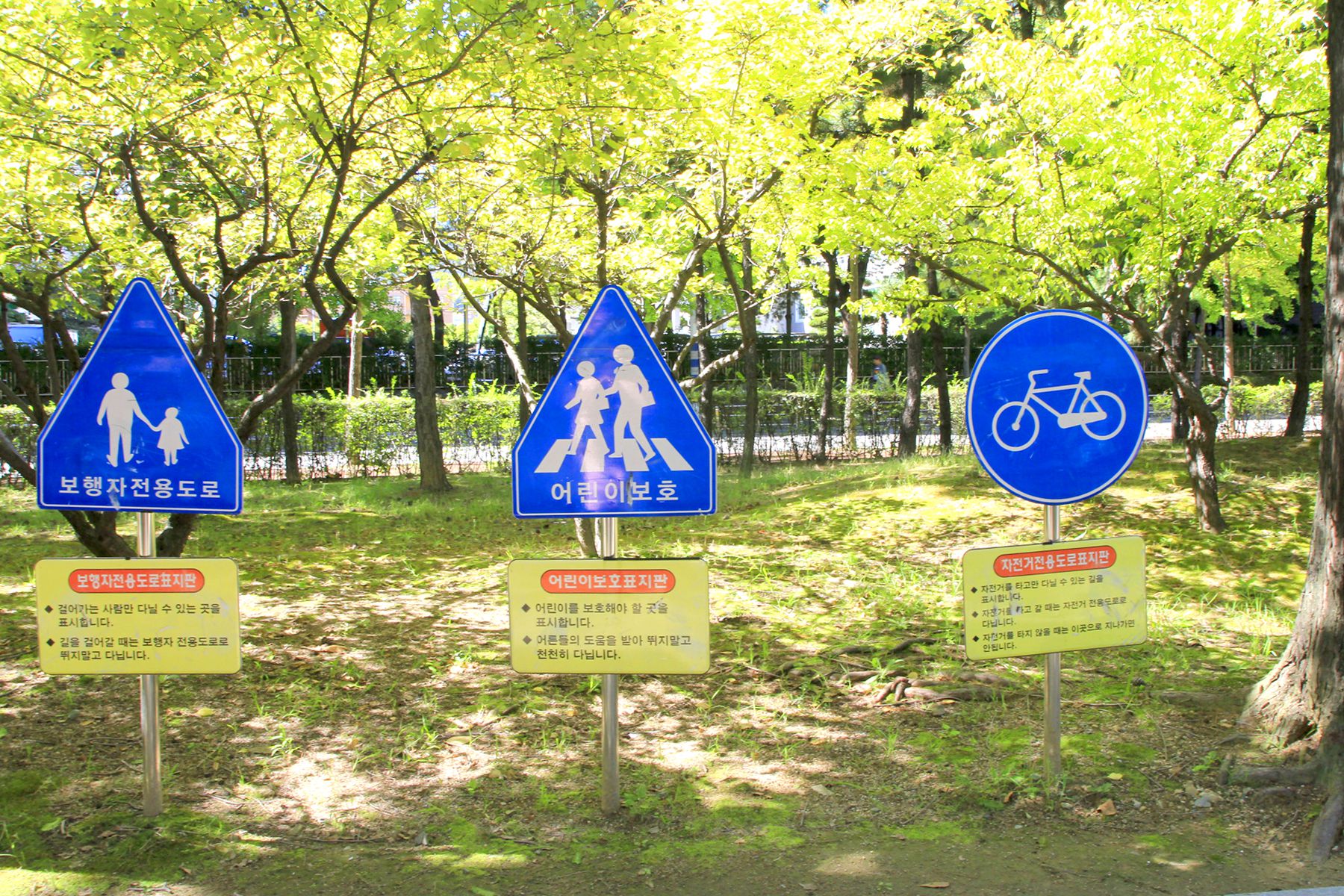 공원 한켠에서는 교통표지판을 만나볼 수 있는데요,