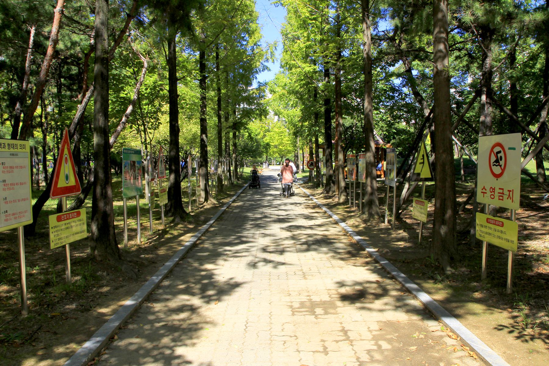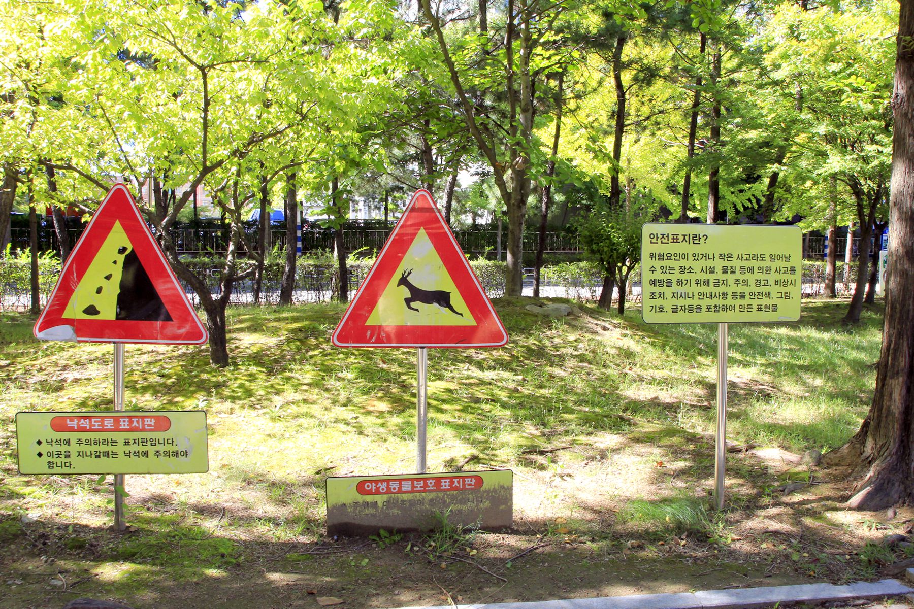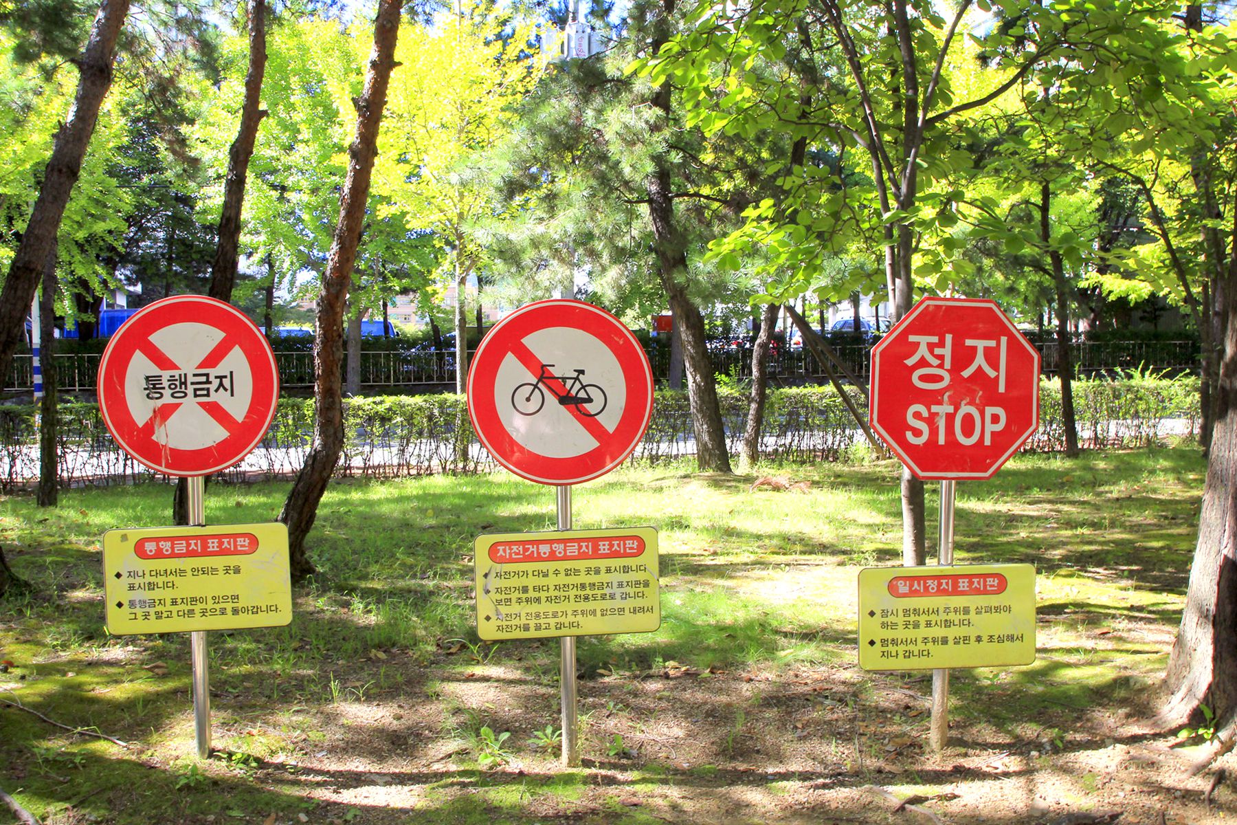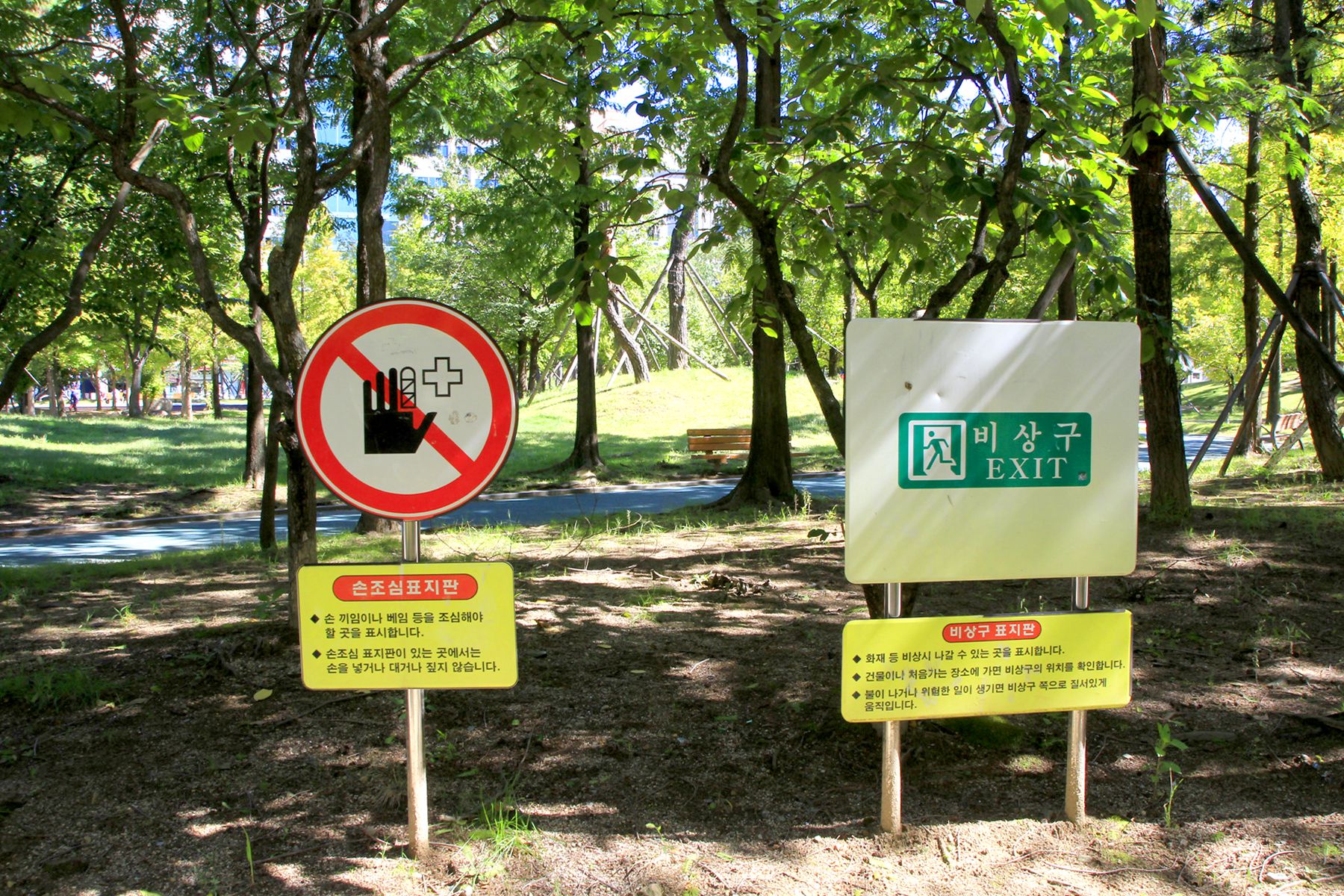 공원 한켠에서는 교통표지판을 만나볼 수 있는데요,