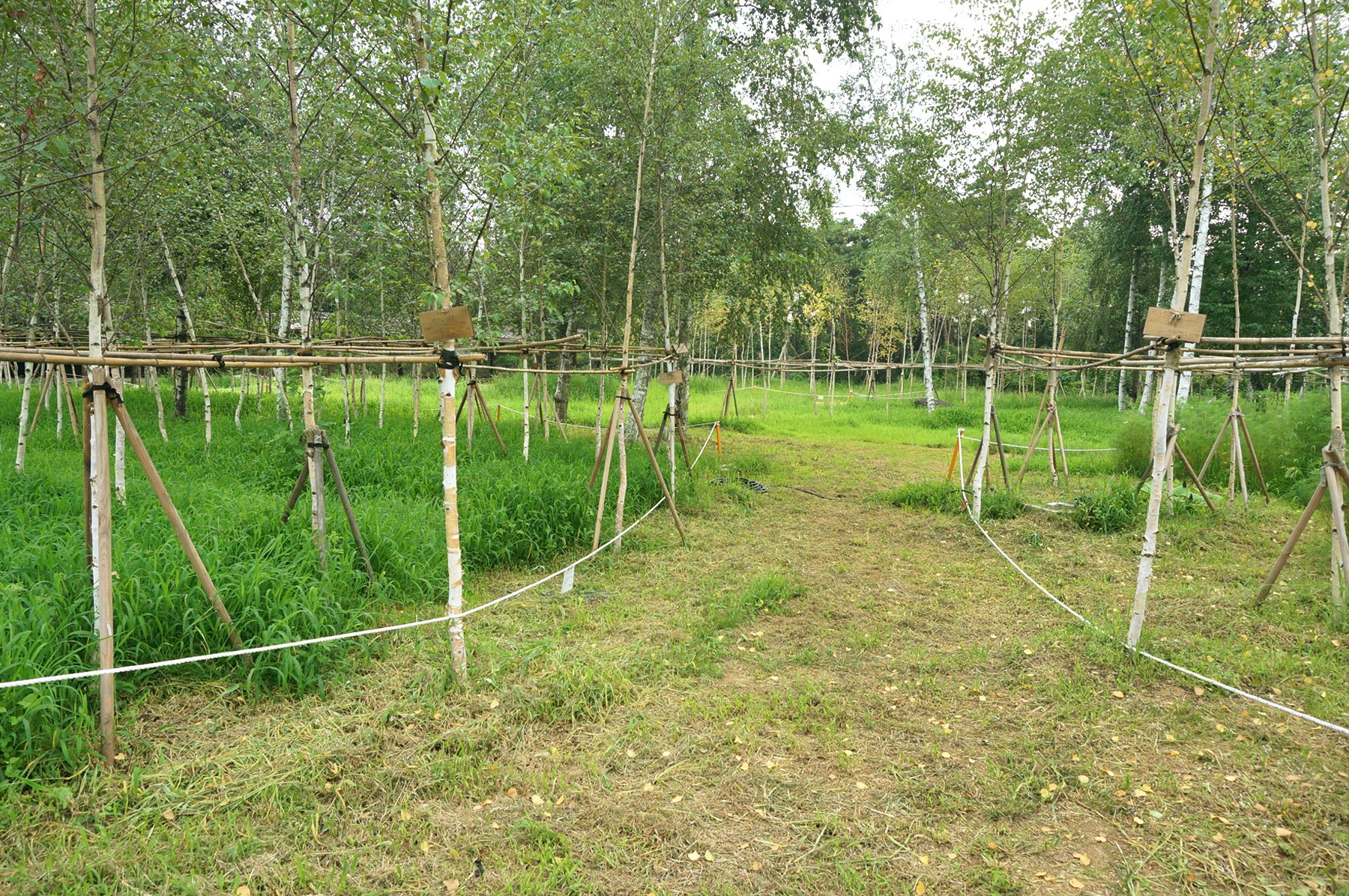 통나무를 엮어 만든 다리와 육각정자 등을 연못가에서 만나볼 수도 있습니다.