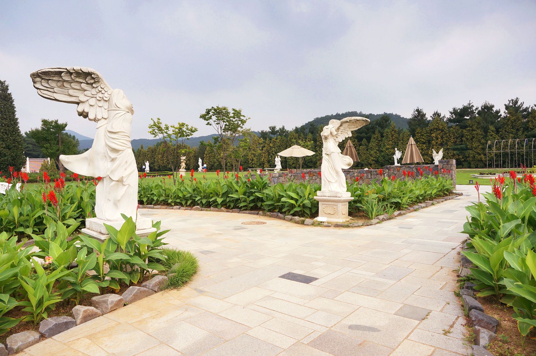여러 가지 꽃들로 화려함을 나타내는 여왕의 정원, 유럽풍 느낌의 조각공원 등