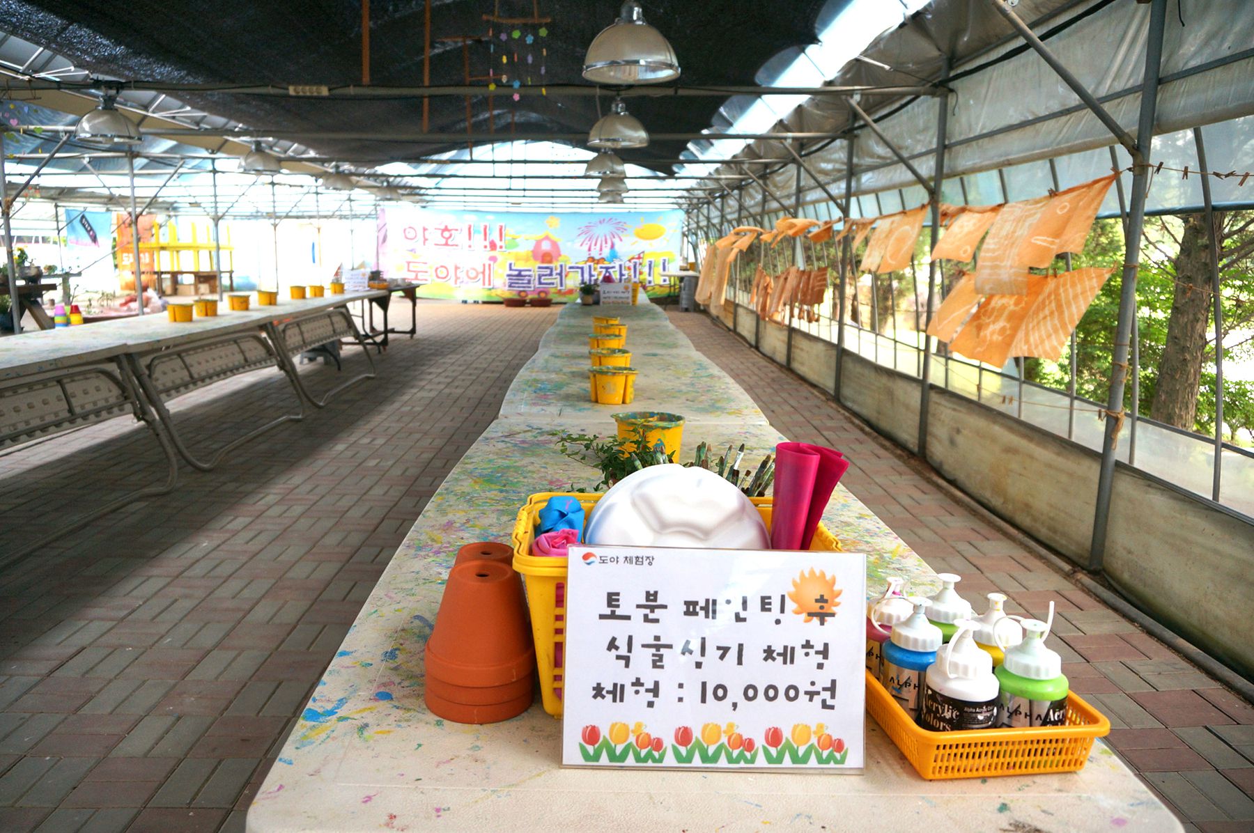 도자기만들기, 토피어리, 토분페인팅 후 식물 심기, 천연 황토염색을 체험해볼 수 있으며