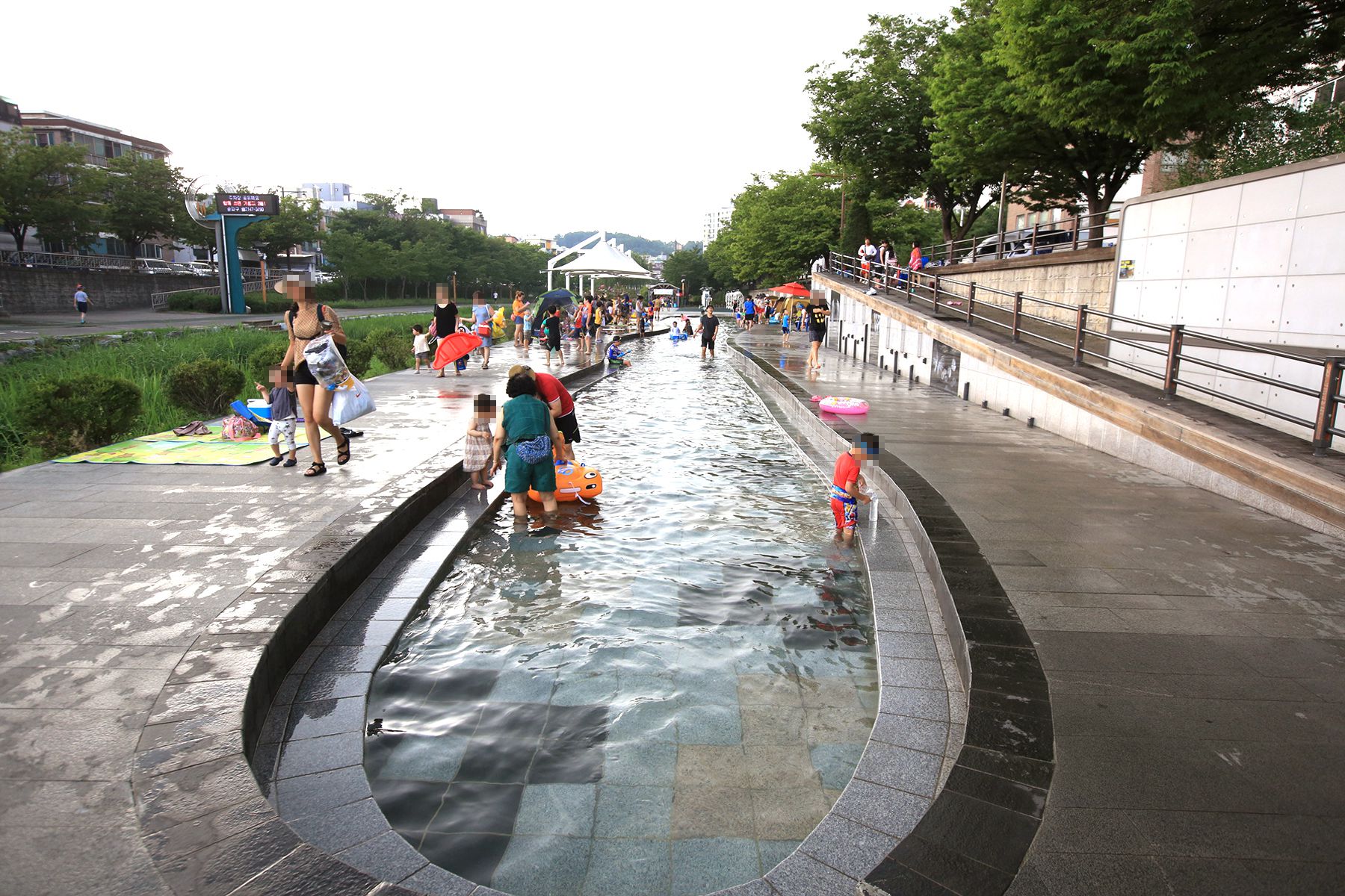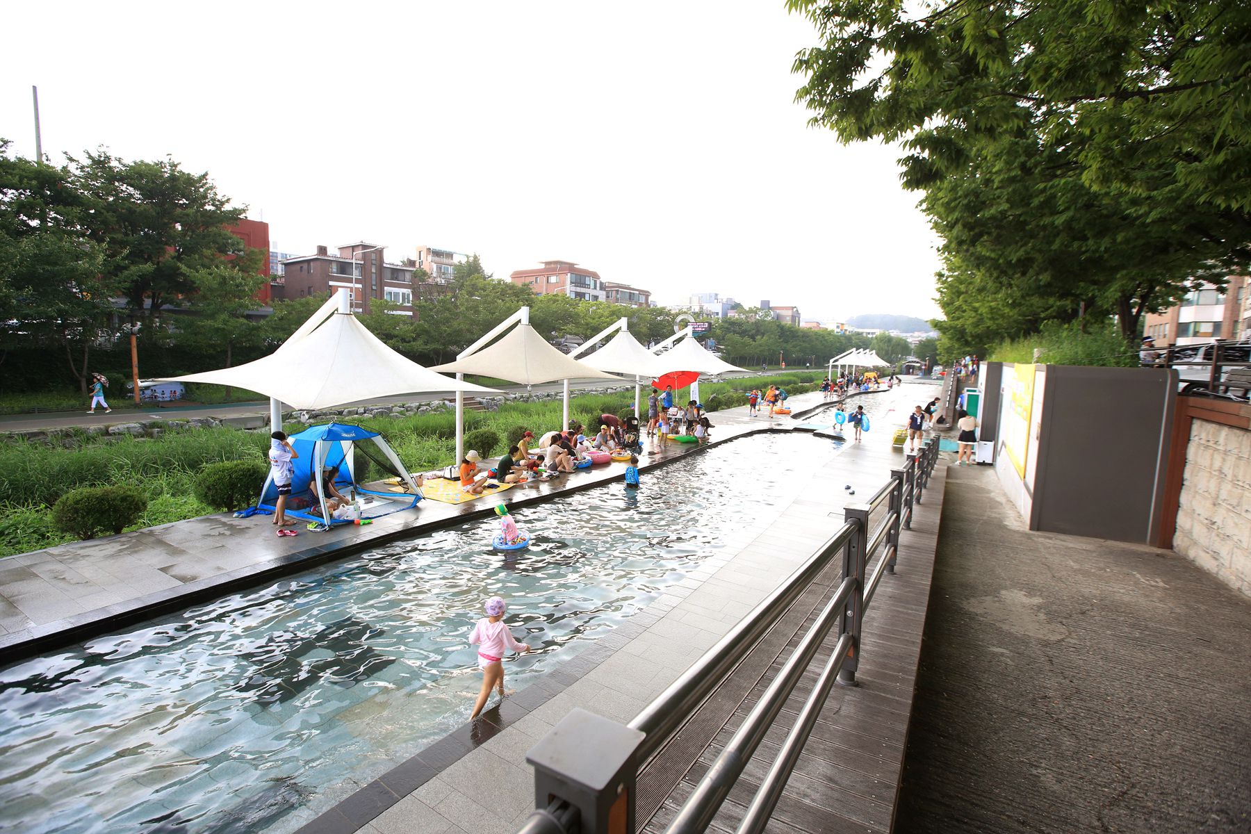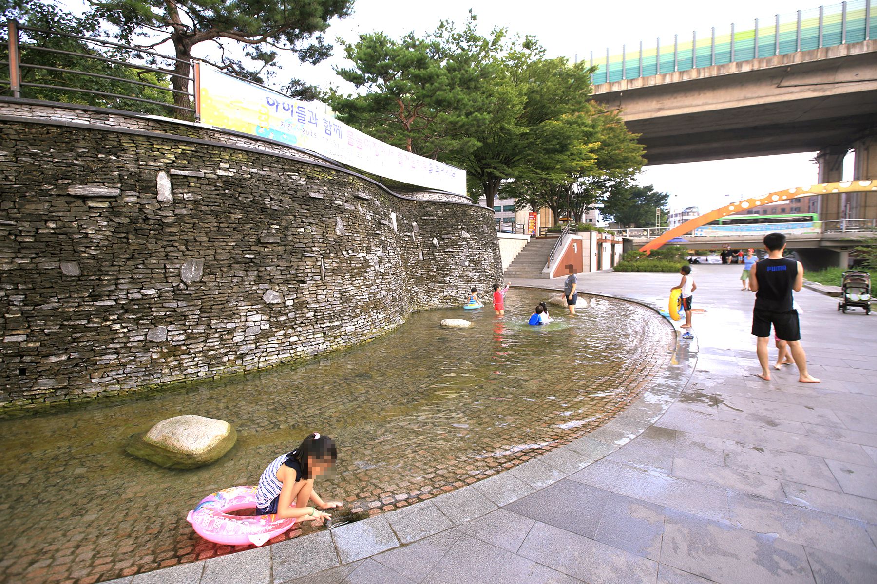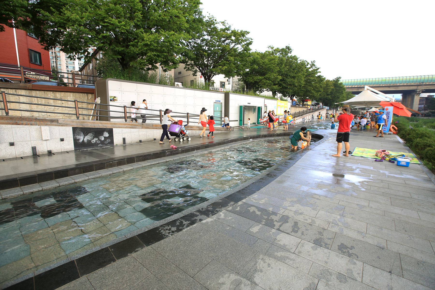대한민국 아름다운 하천 100선에 선정된 성내천 옆으로 조성된 물놀이장에서