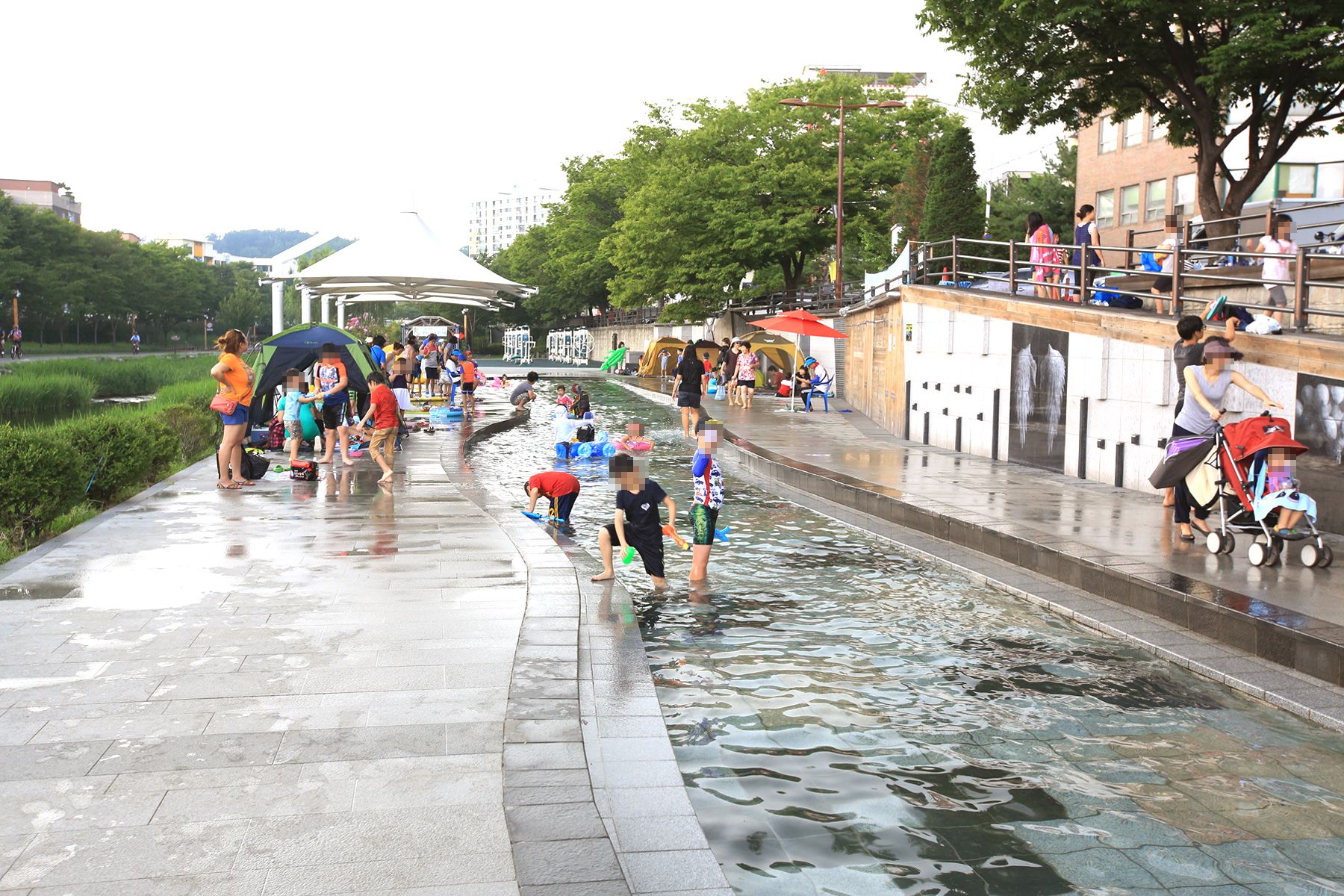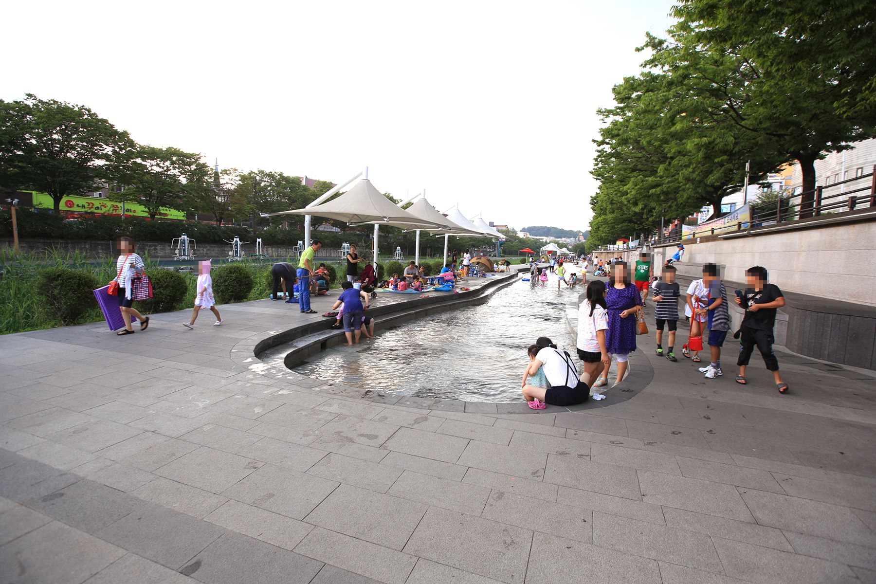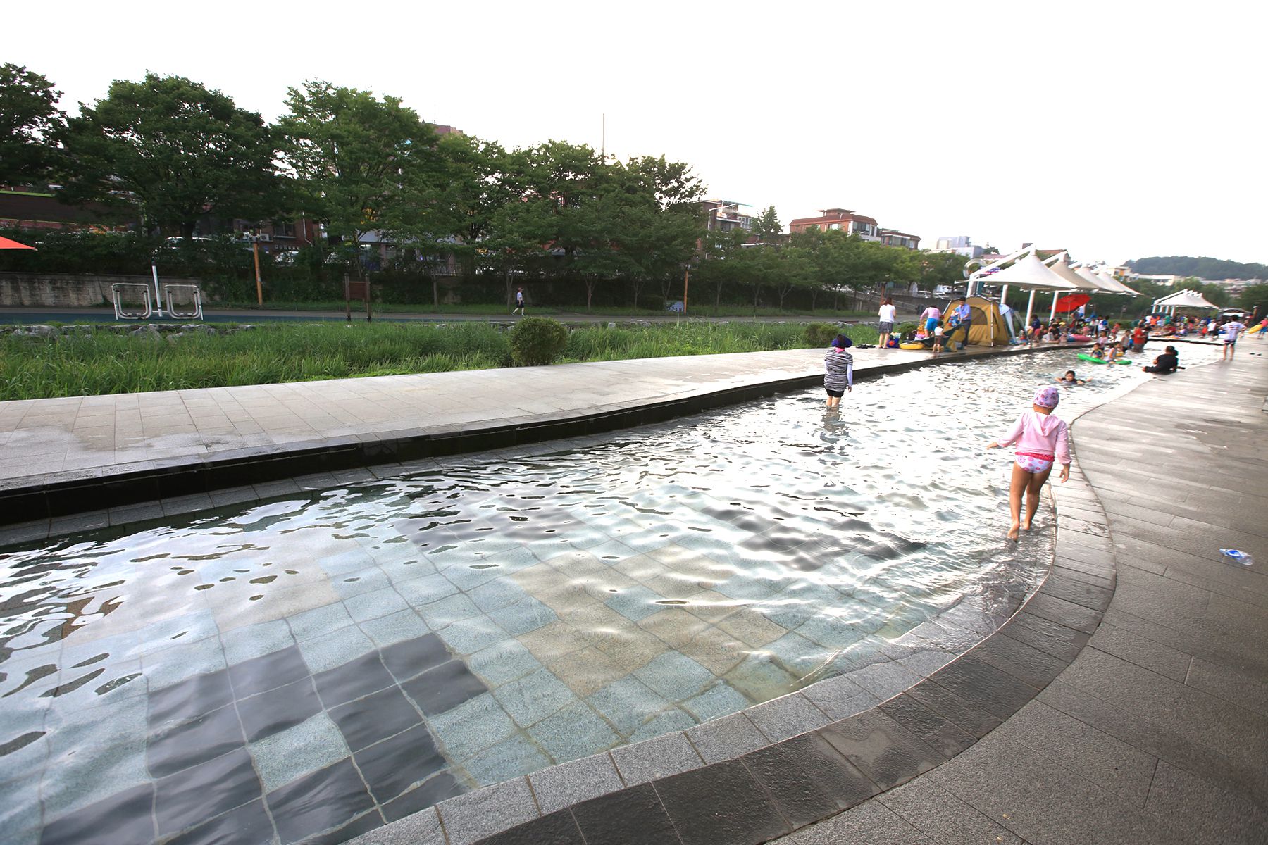 대한민국 아름다운 하천 100선에 선정된 성내천 옆으로 조성된 물놀이장에서