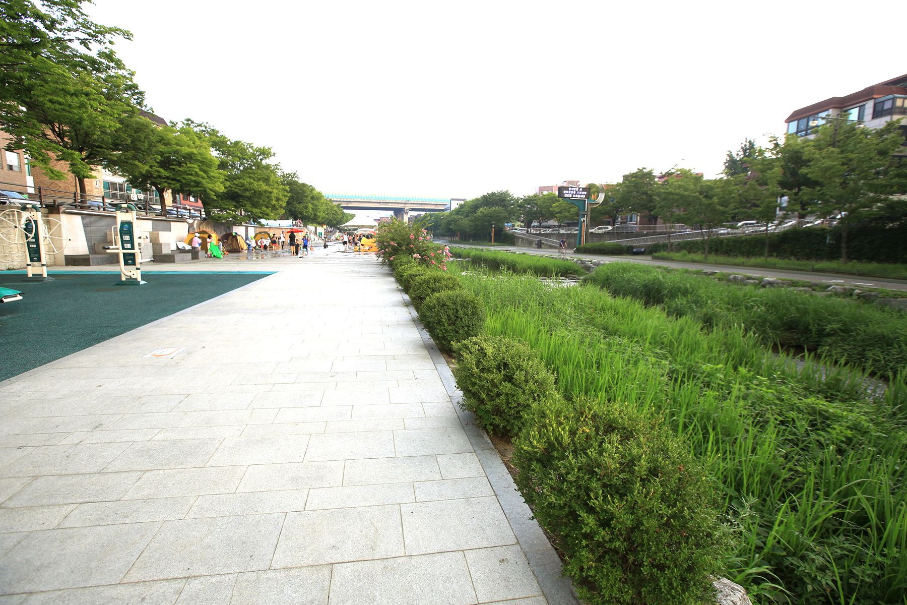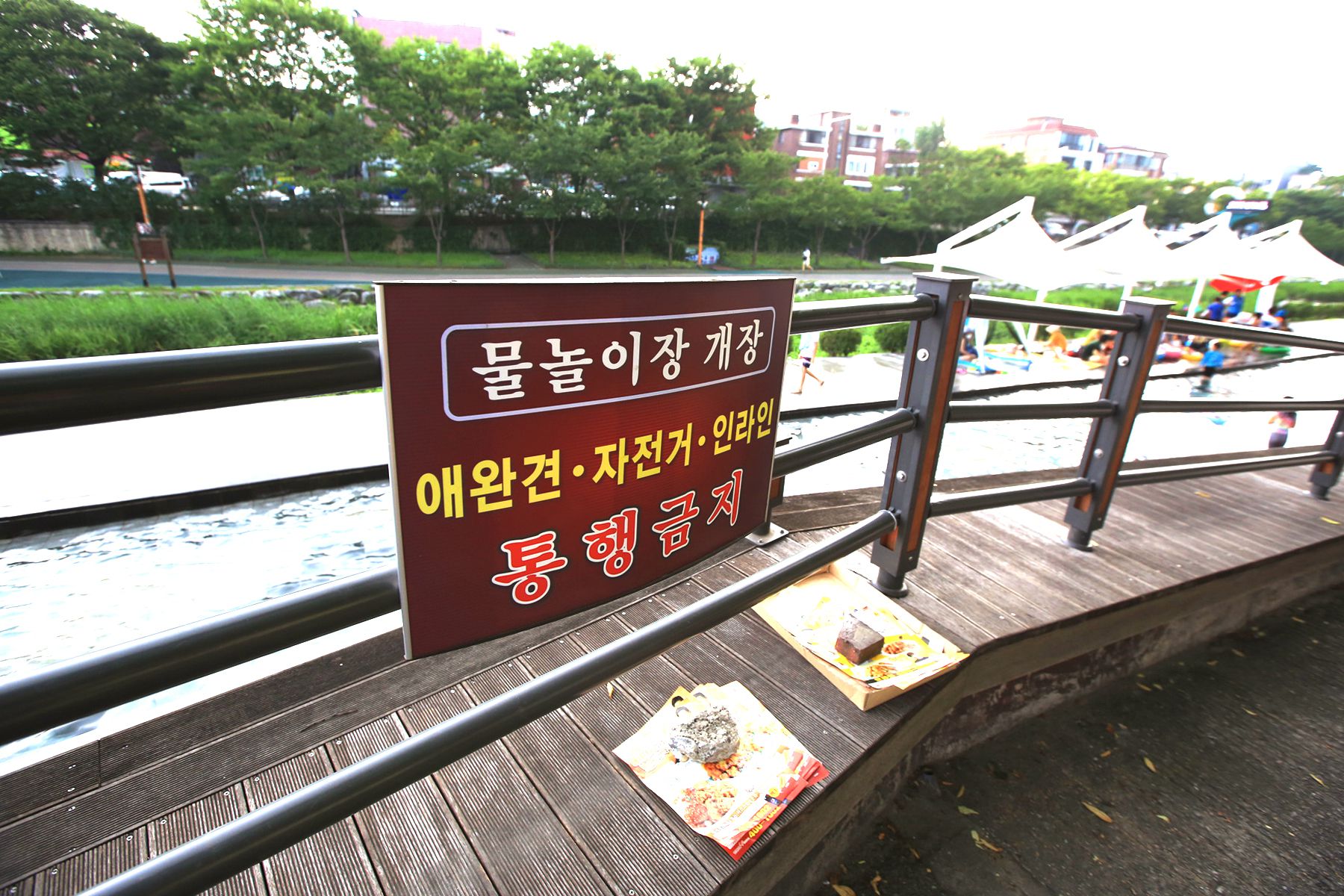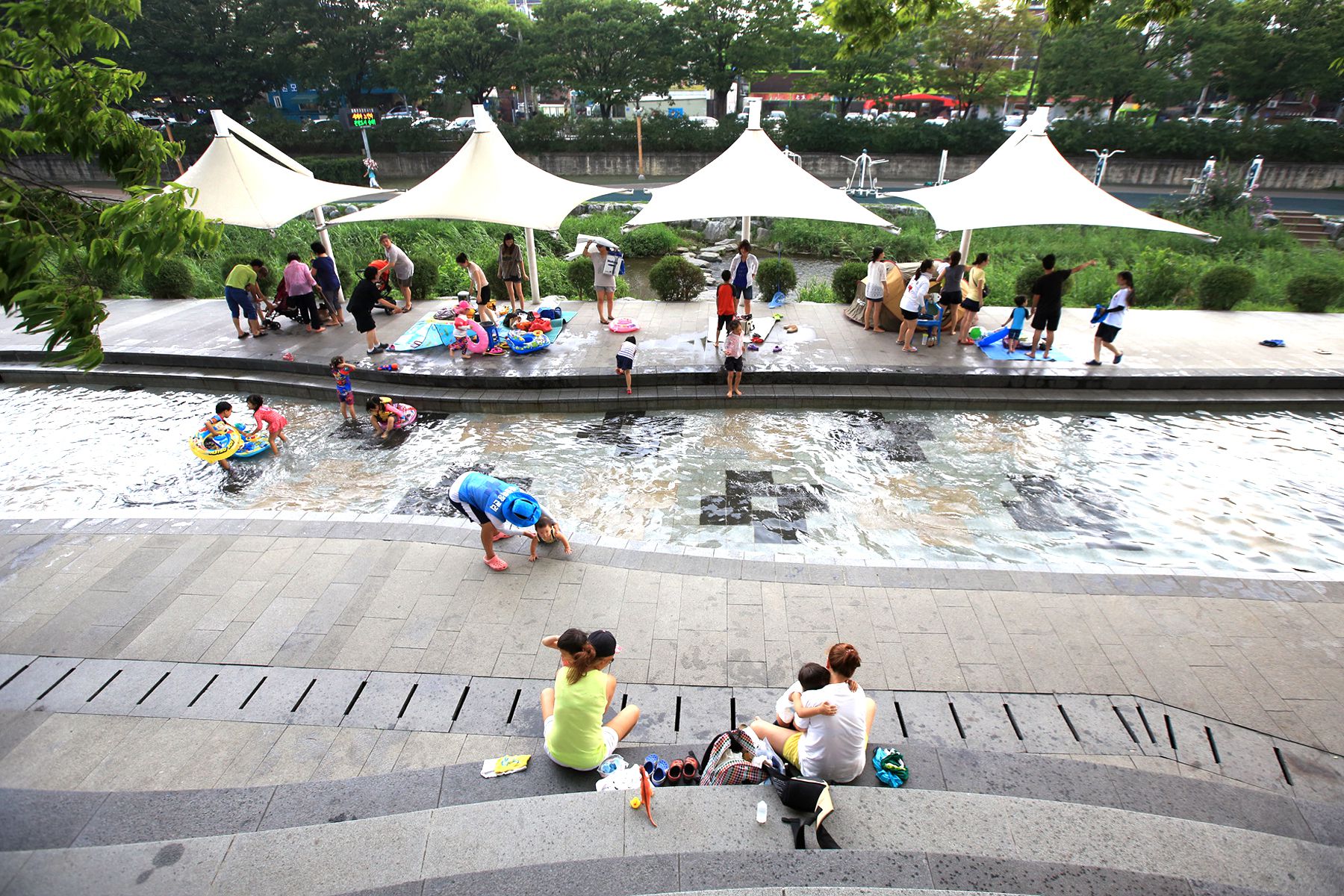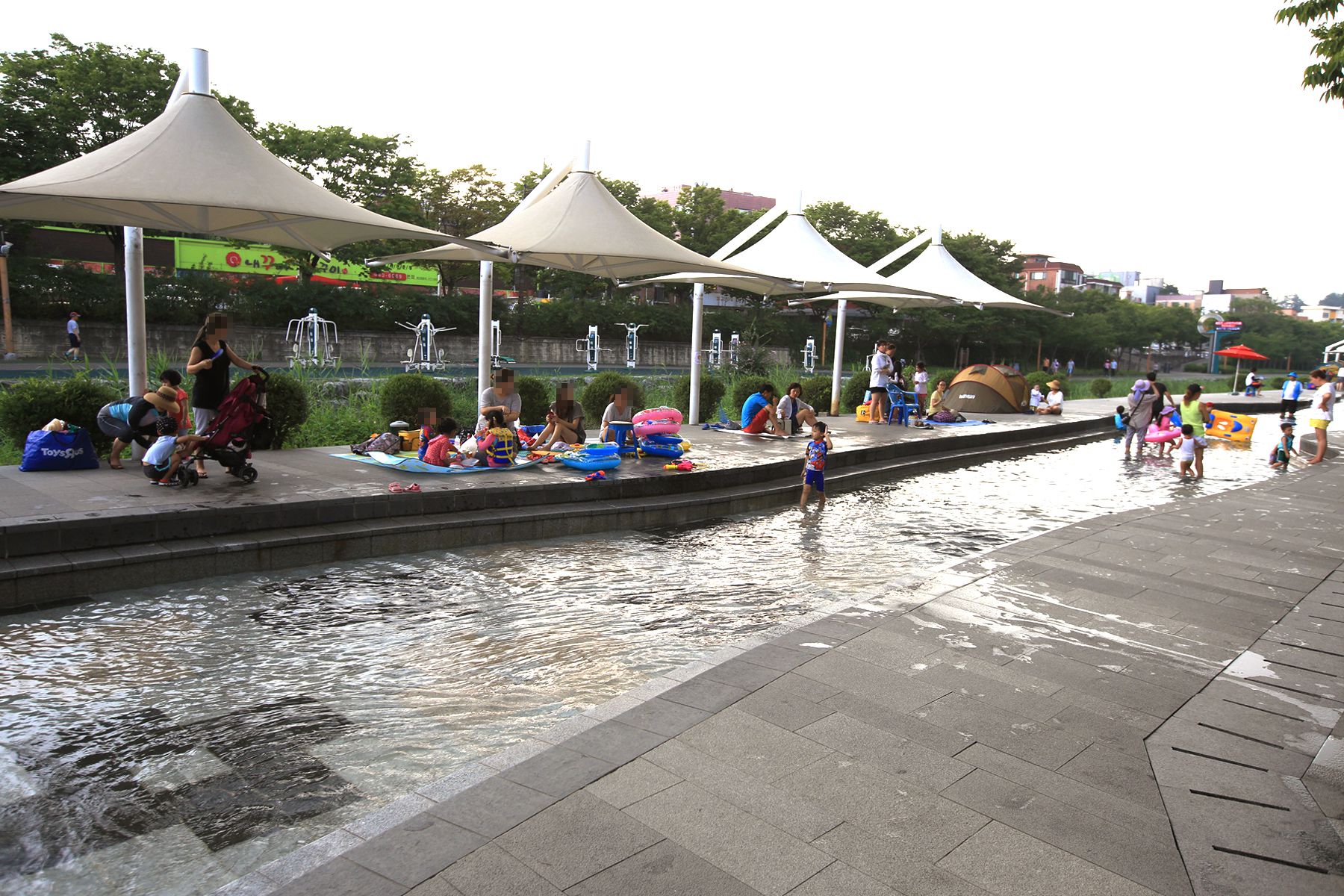 대한민국 아름다운 하천 100선에 선정된 성내천 옆으로 조성된 물놀이장에서