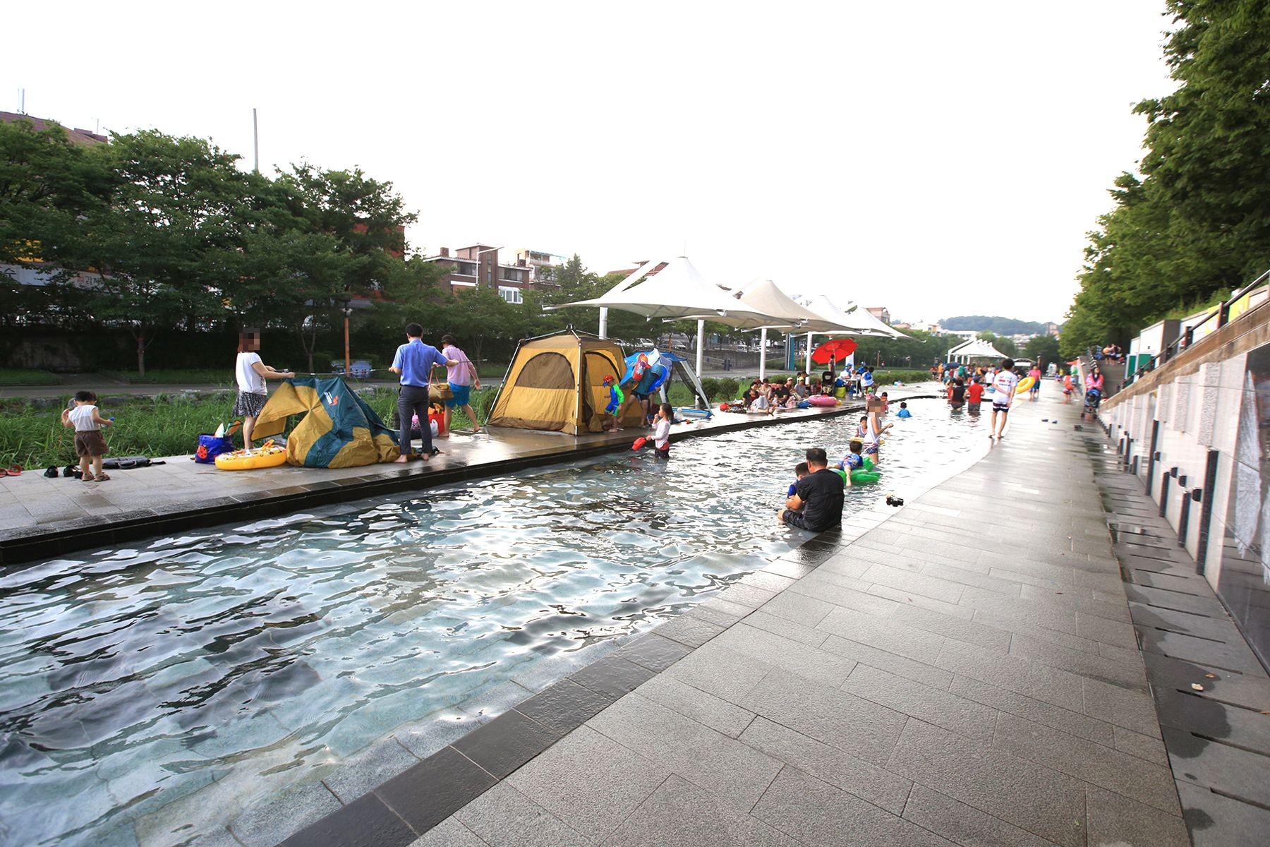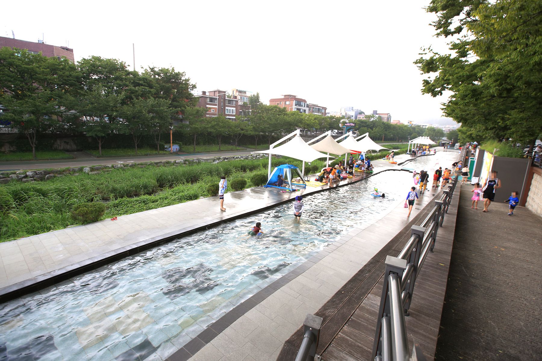 성내천물놀이장은 길이 160m, 폭 3~5m의 항아리 모양으로 조성되었으며,