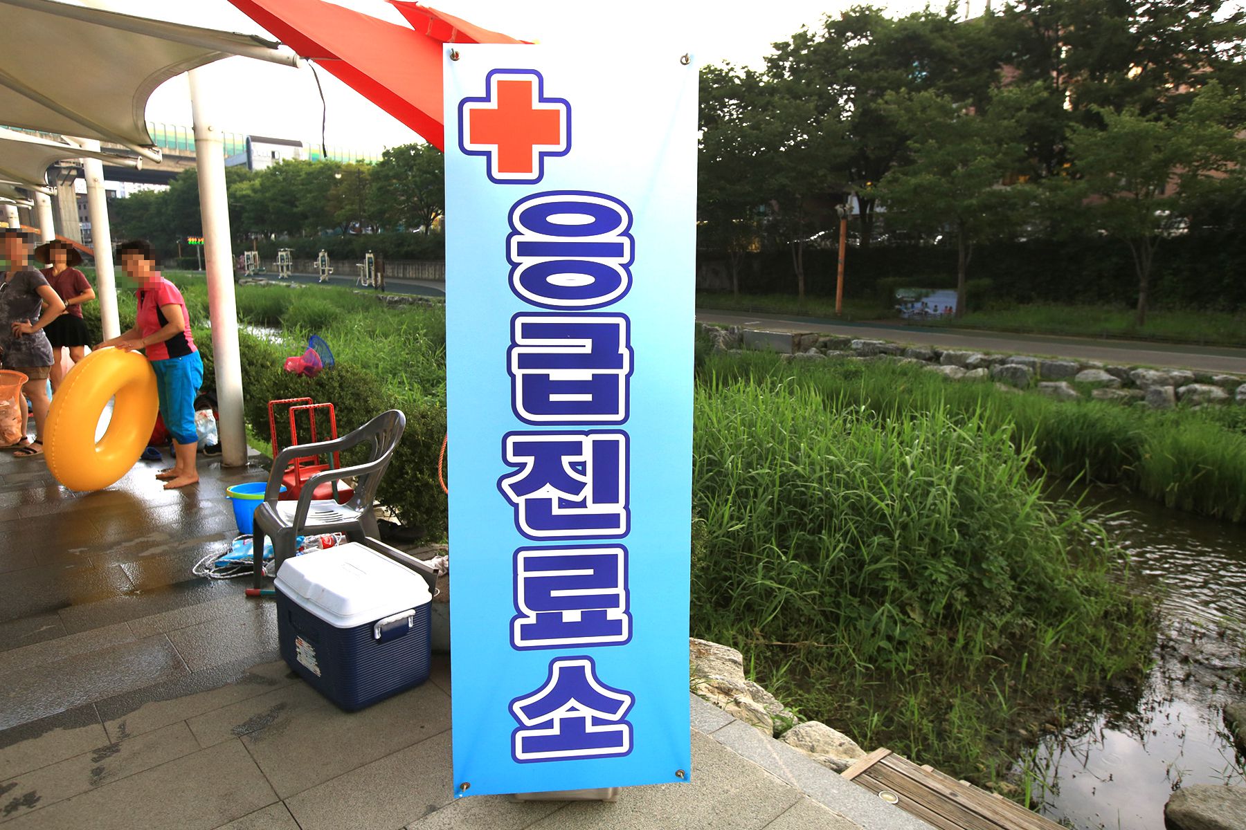 성내천물놀이장은 안전사고 예방을 위해 안전요원 7명, 간호조무사 1명이 물놀이장과 벽천분수대 주변에 상시 배치중이며,