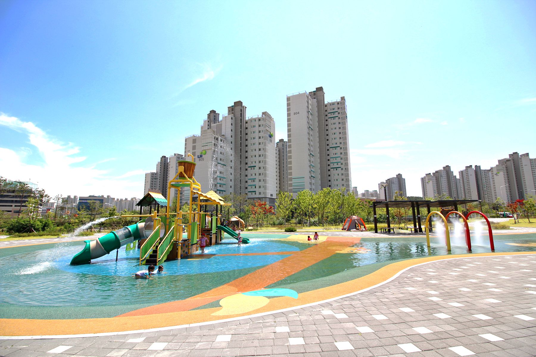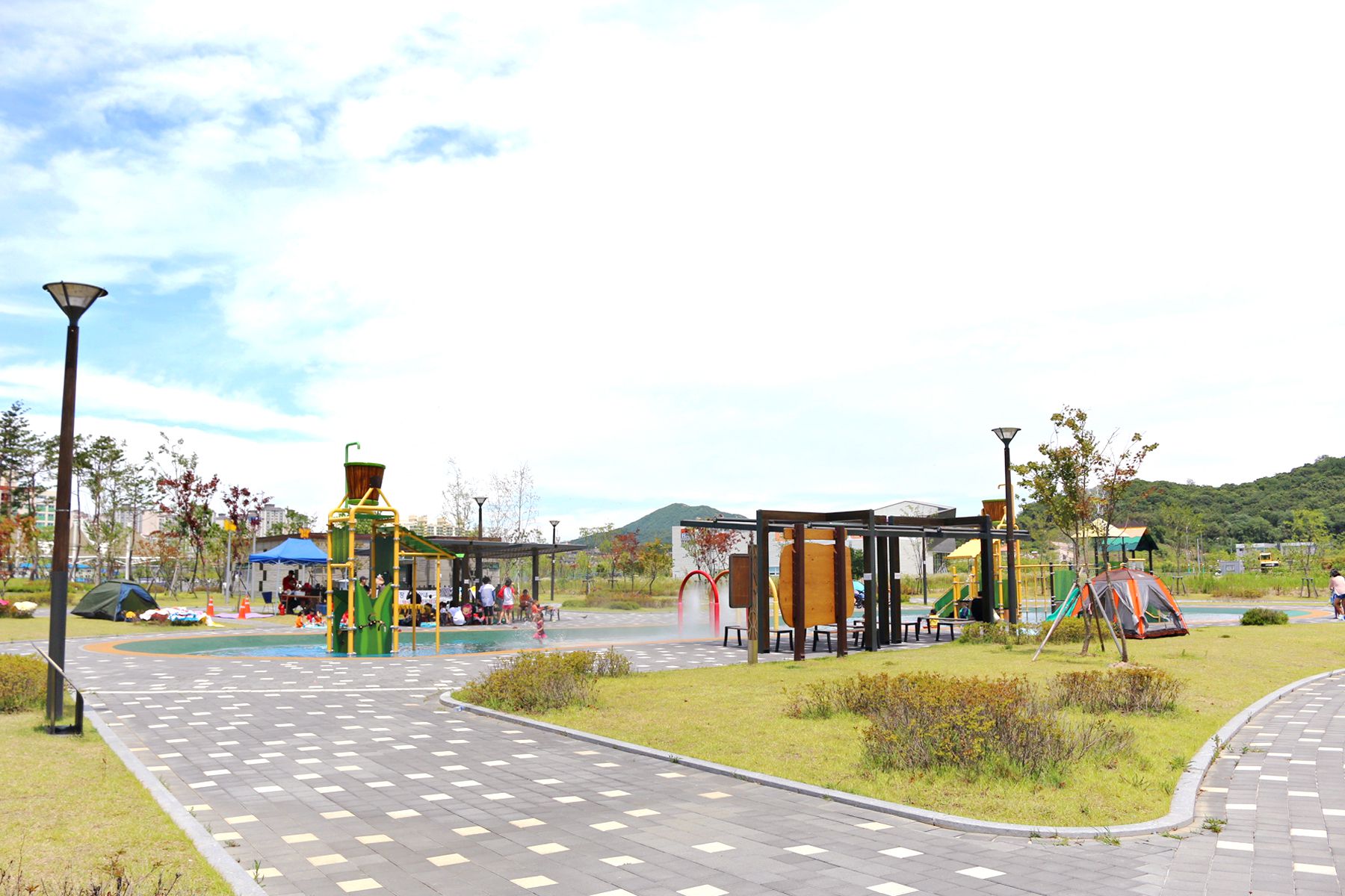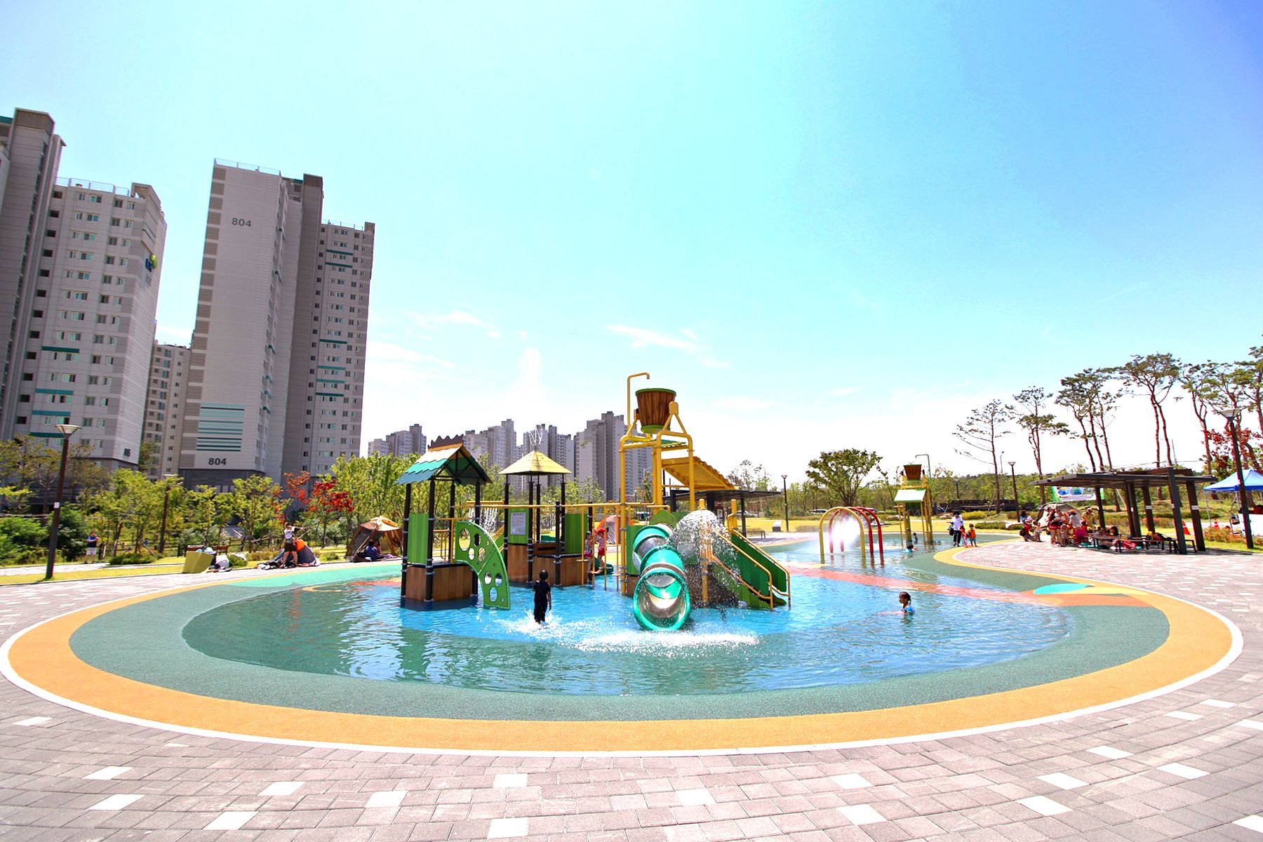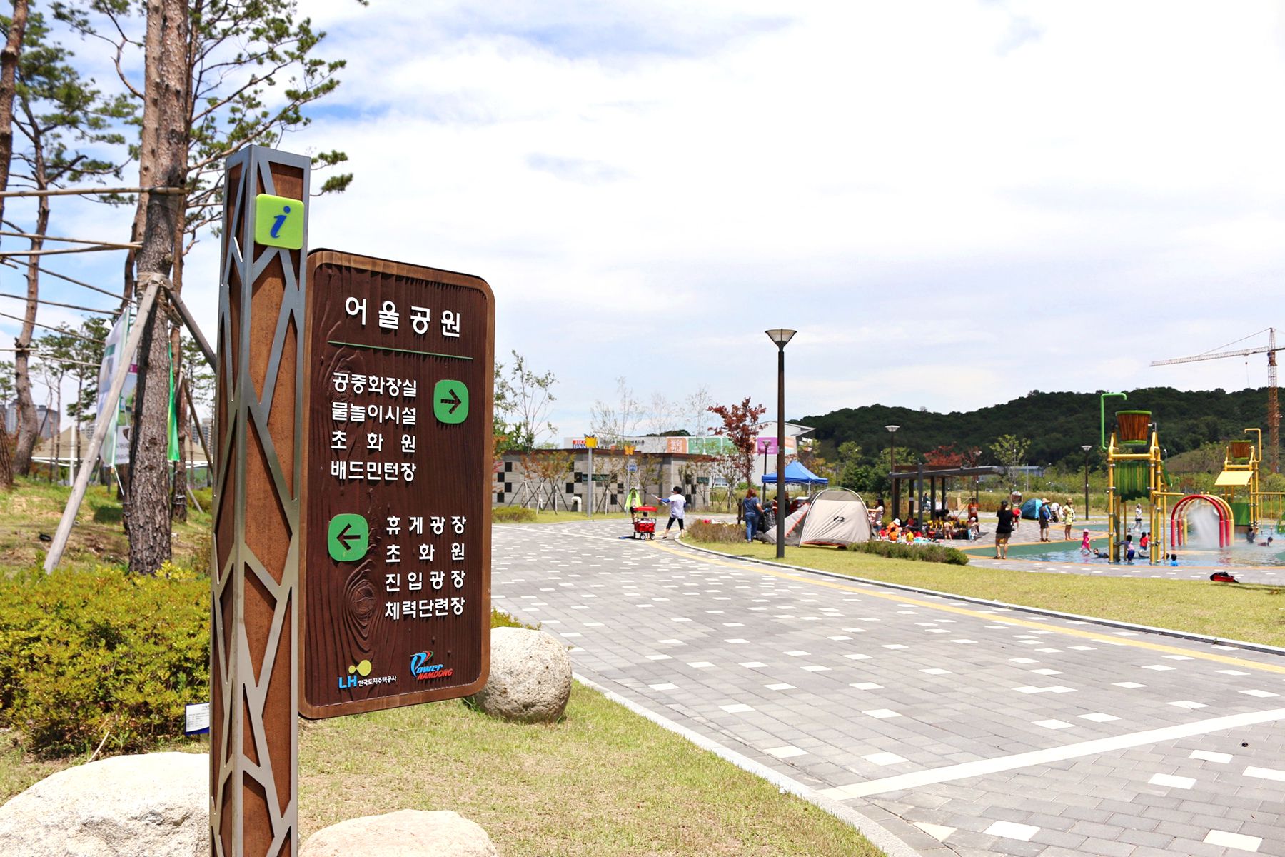 어울공원은 도시근린공원으로 물놀이장, 화장실, 초화원, 배드민턴장을 비롯한
