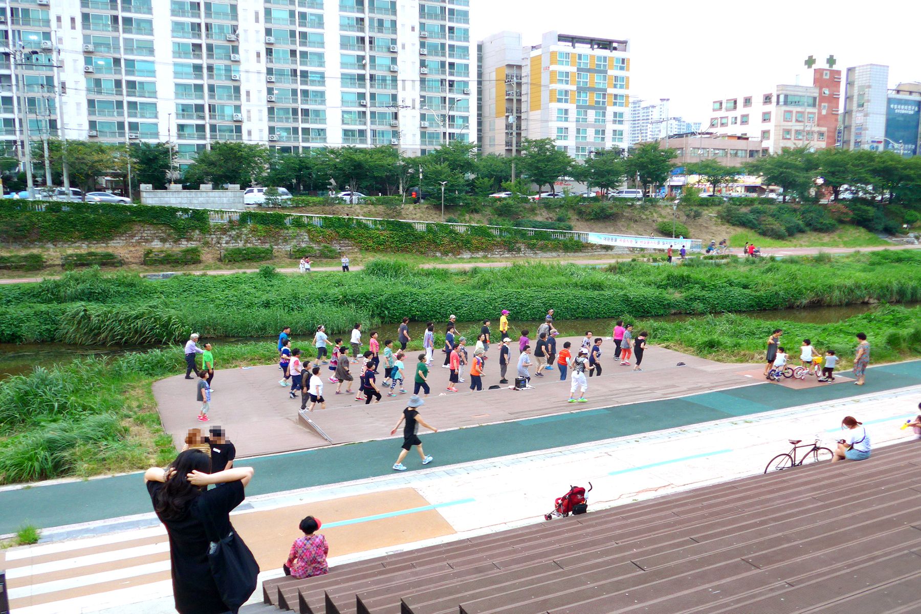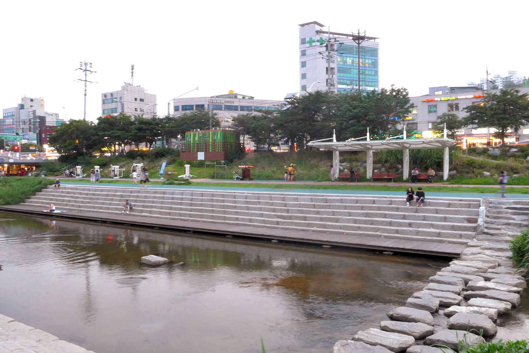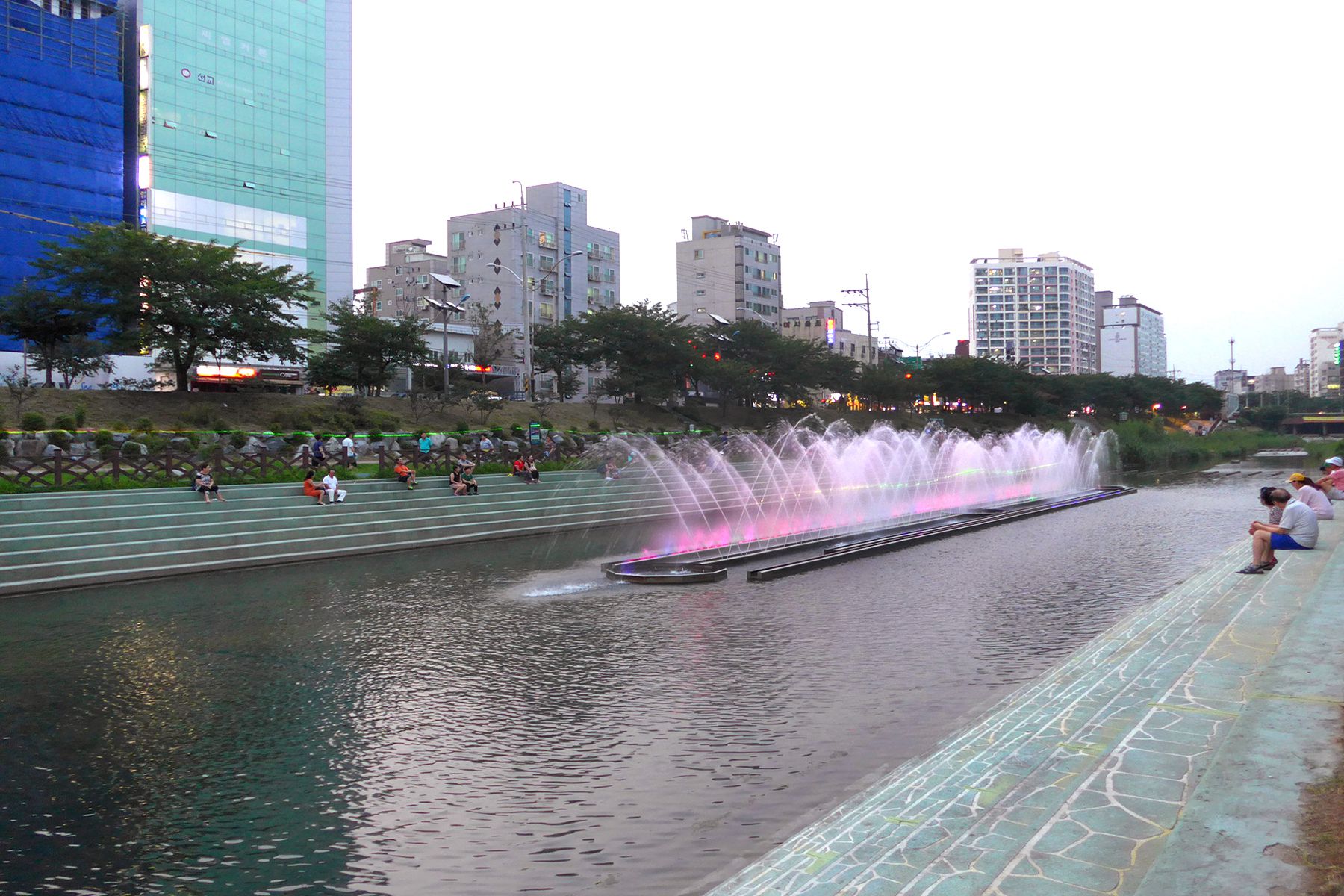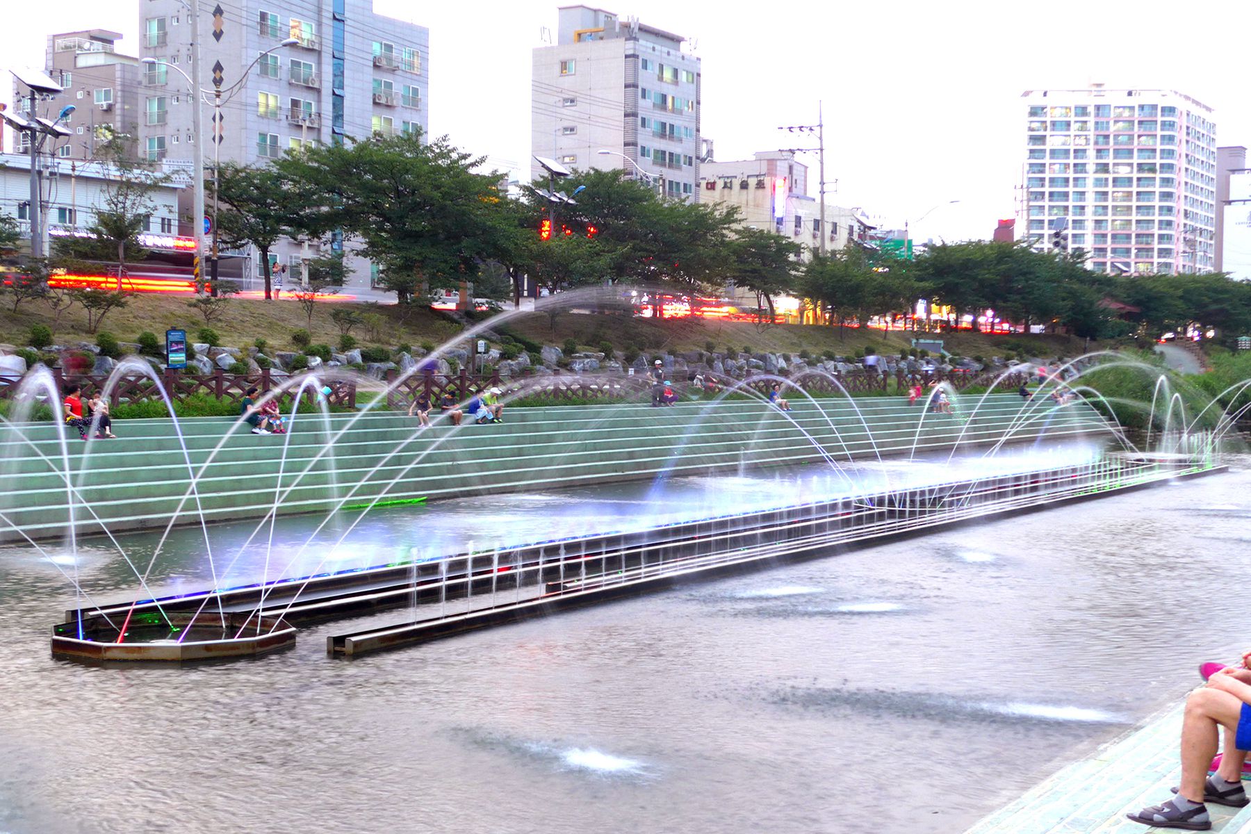 시원한 물줄기로 춤을 추는 노래분수대가 다양한 즐거움을 선사하는 불광천에서