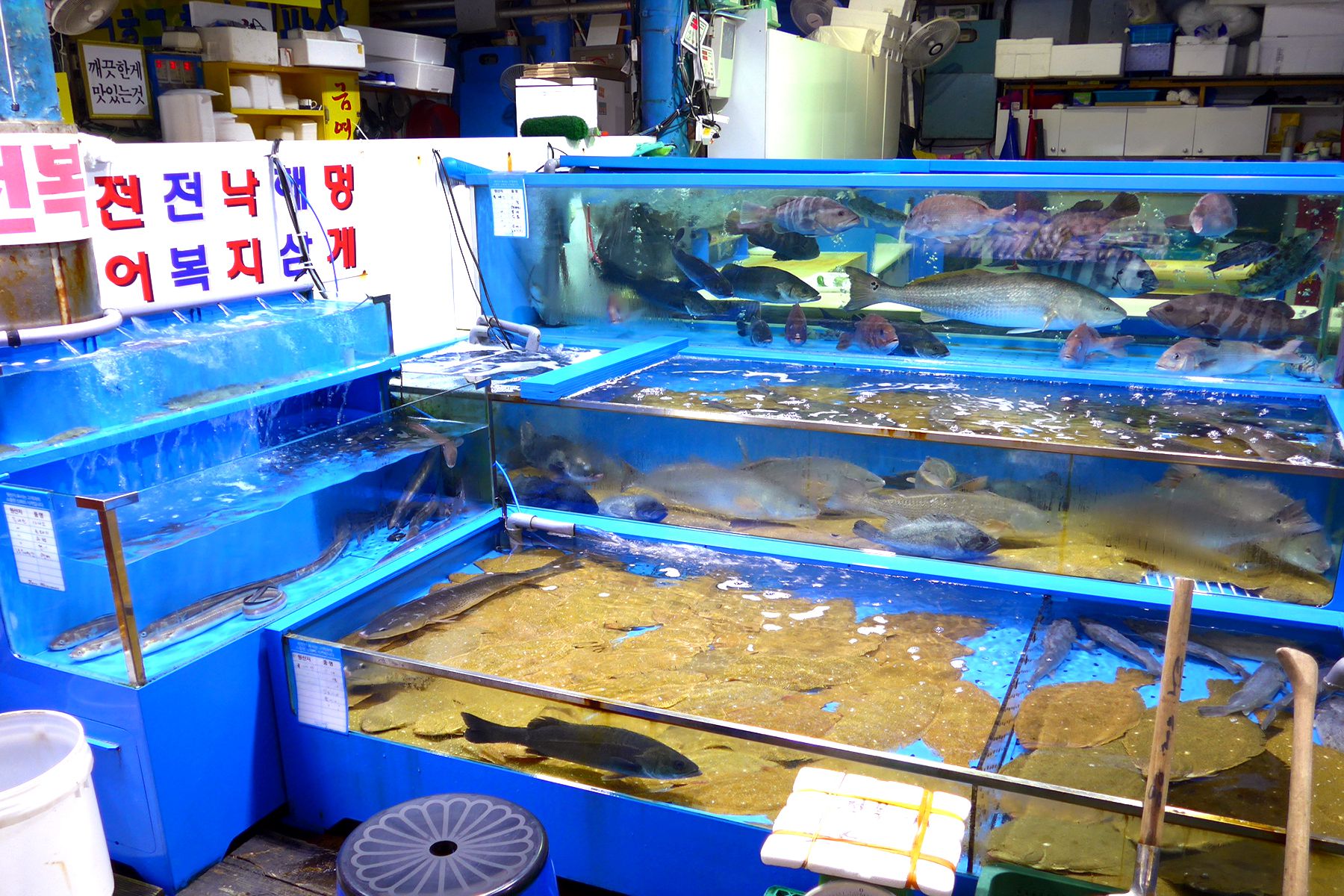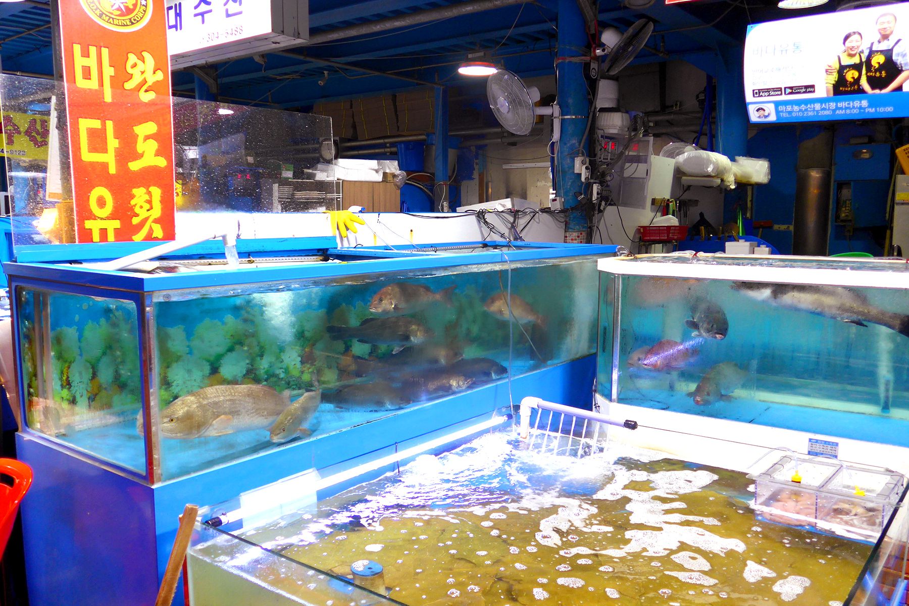 회나 해산물을 구입하여 2층으로 가져가면 조리값만 지불한 후