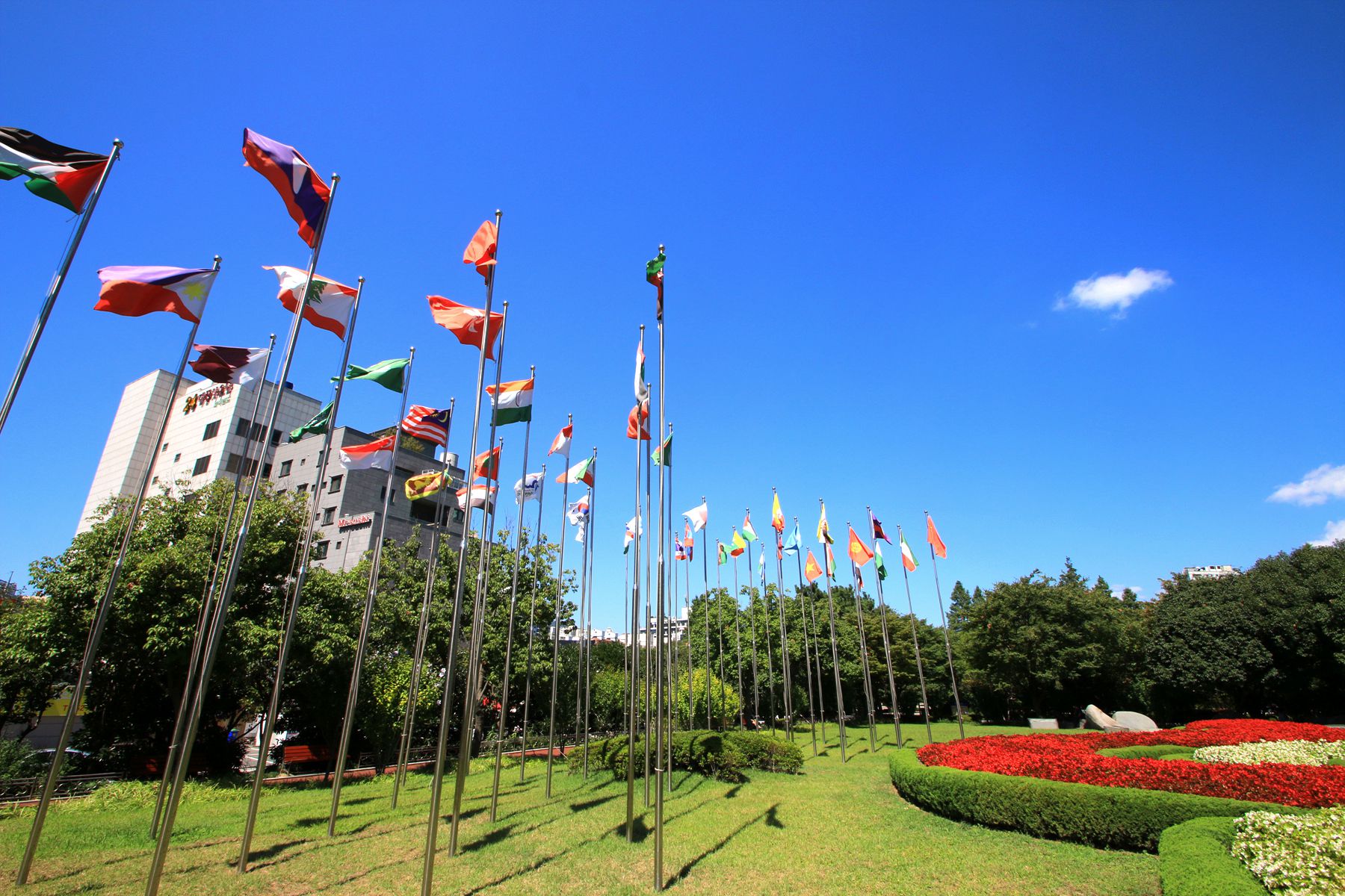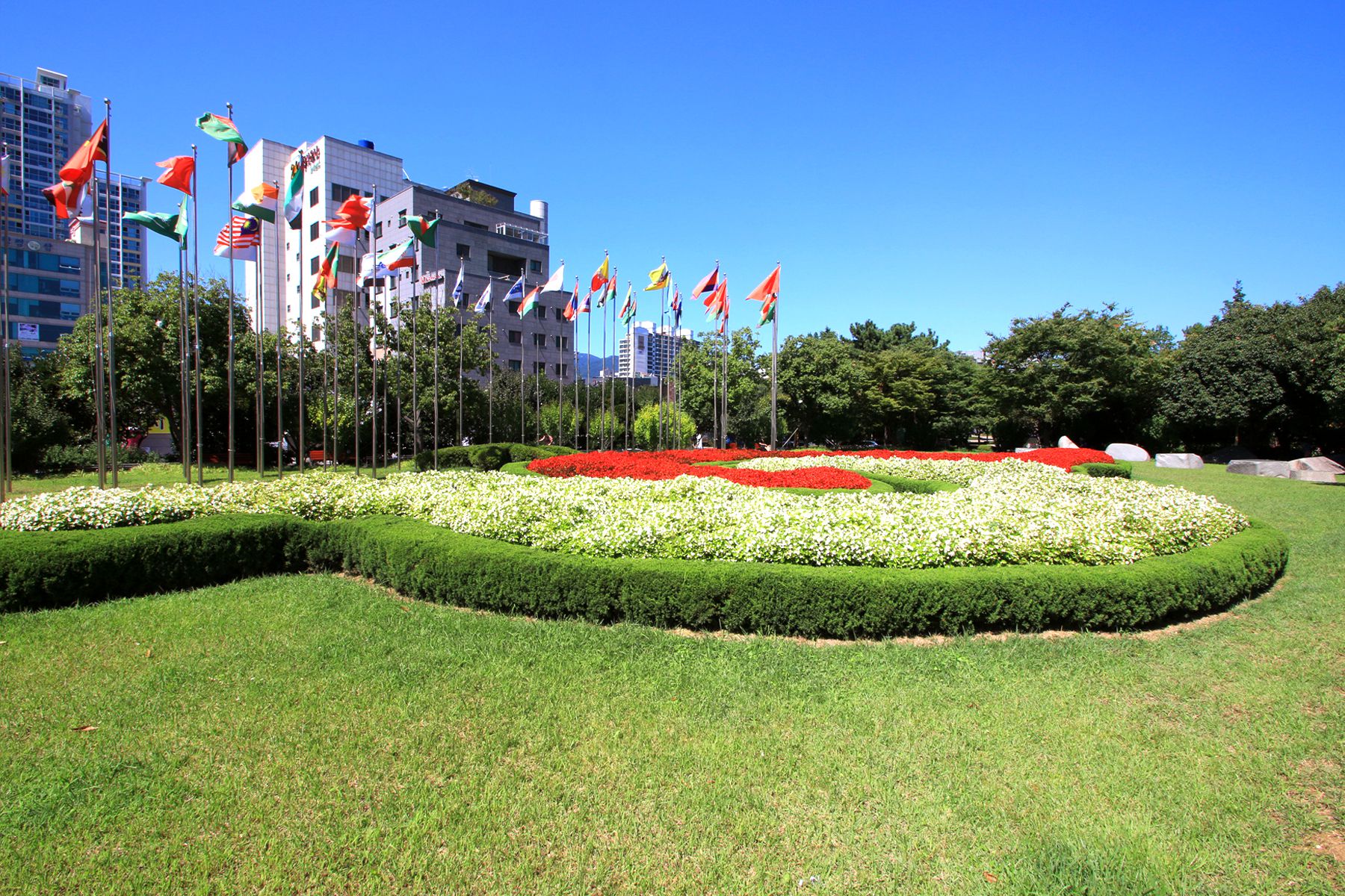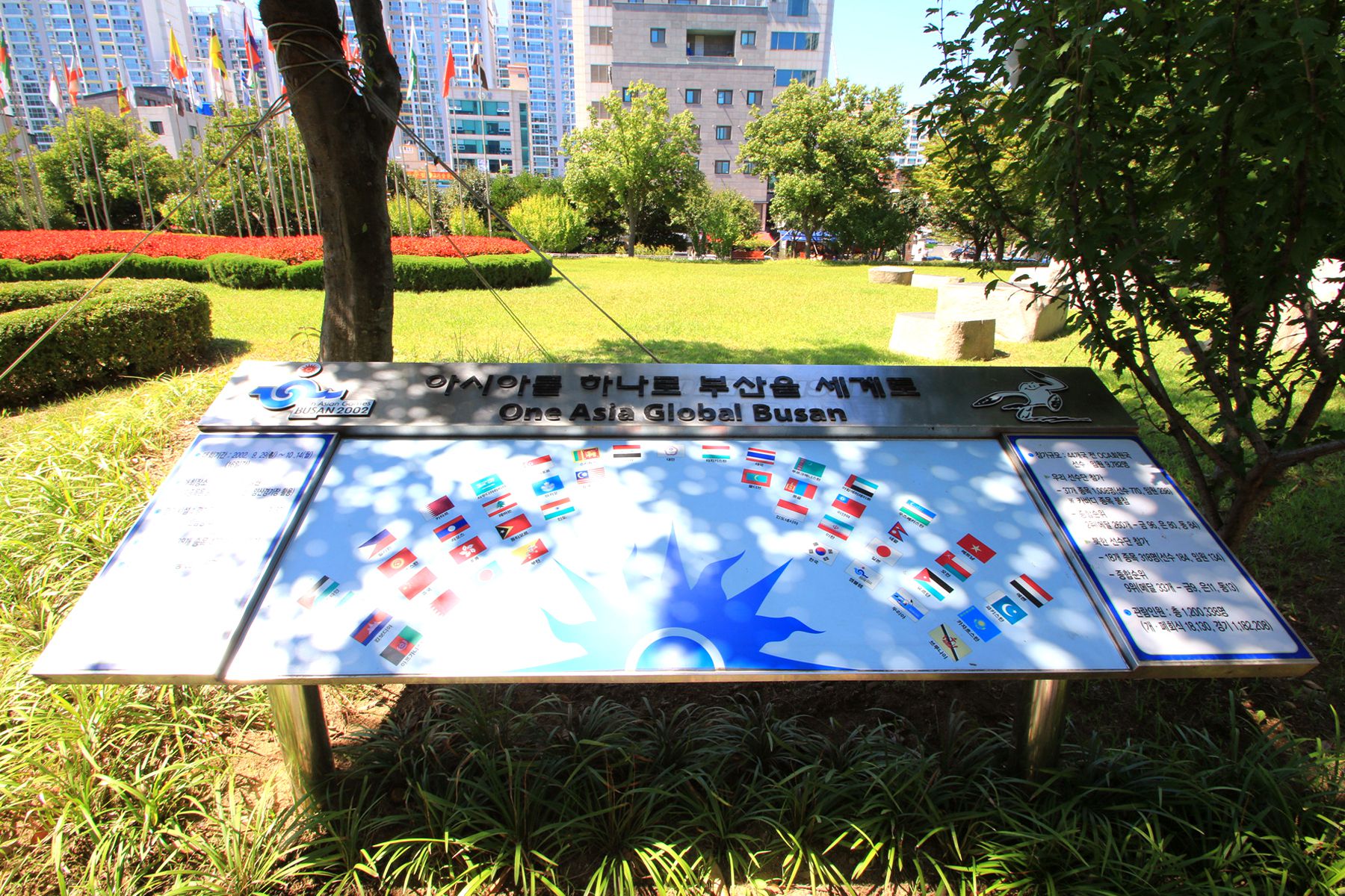 녹음공원 한쪽으로는 2002년 부산 아시안게임을 기념하는 참가국가의 국기들과