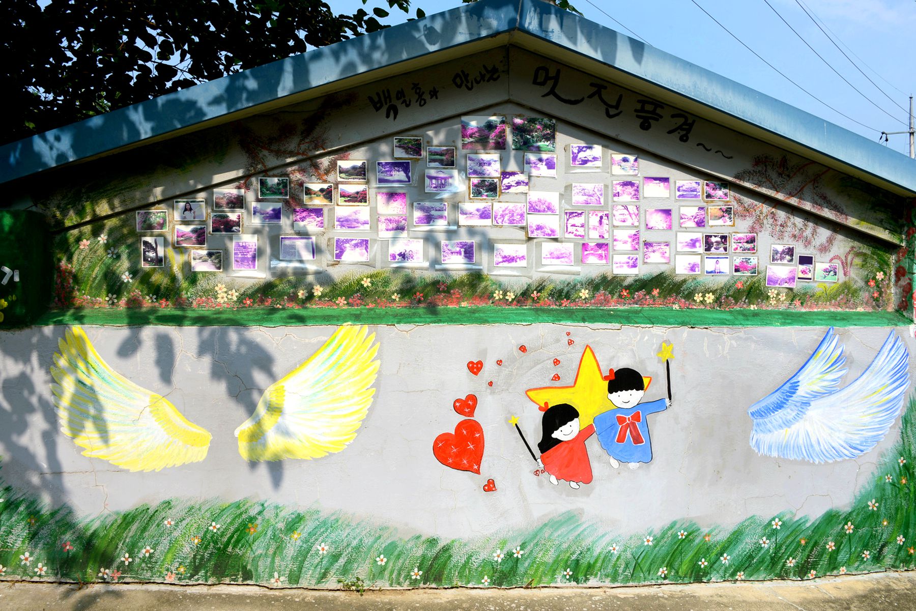명옥헌 입구 주차장에서 명옥헌원림까지 약 300m를 걷다 보면 알록달록한 벽화를 만나볼 수 있는데요,