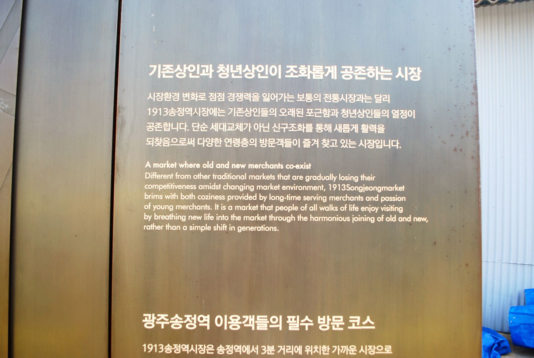 이곳에서는 시장의 역사와 시장에 대한 간단한 소개를 눈으로 확인할 수 있고, 시장을 둘러보다가 잠시 쉬어갈 수도 있습니다.