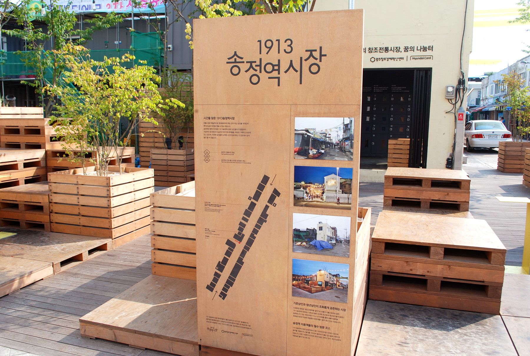 차 없는 거리로 운영되고 있는 1913송정역시장은 현대카드에서 계속적으로 홍보를 하며 시장의 발전에 힘쓰는 중입니다.