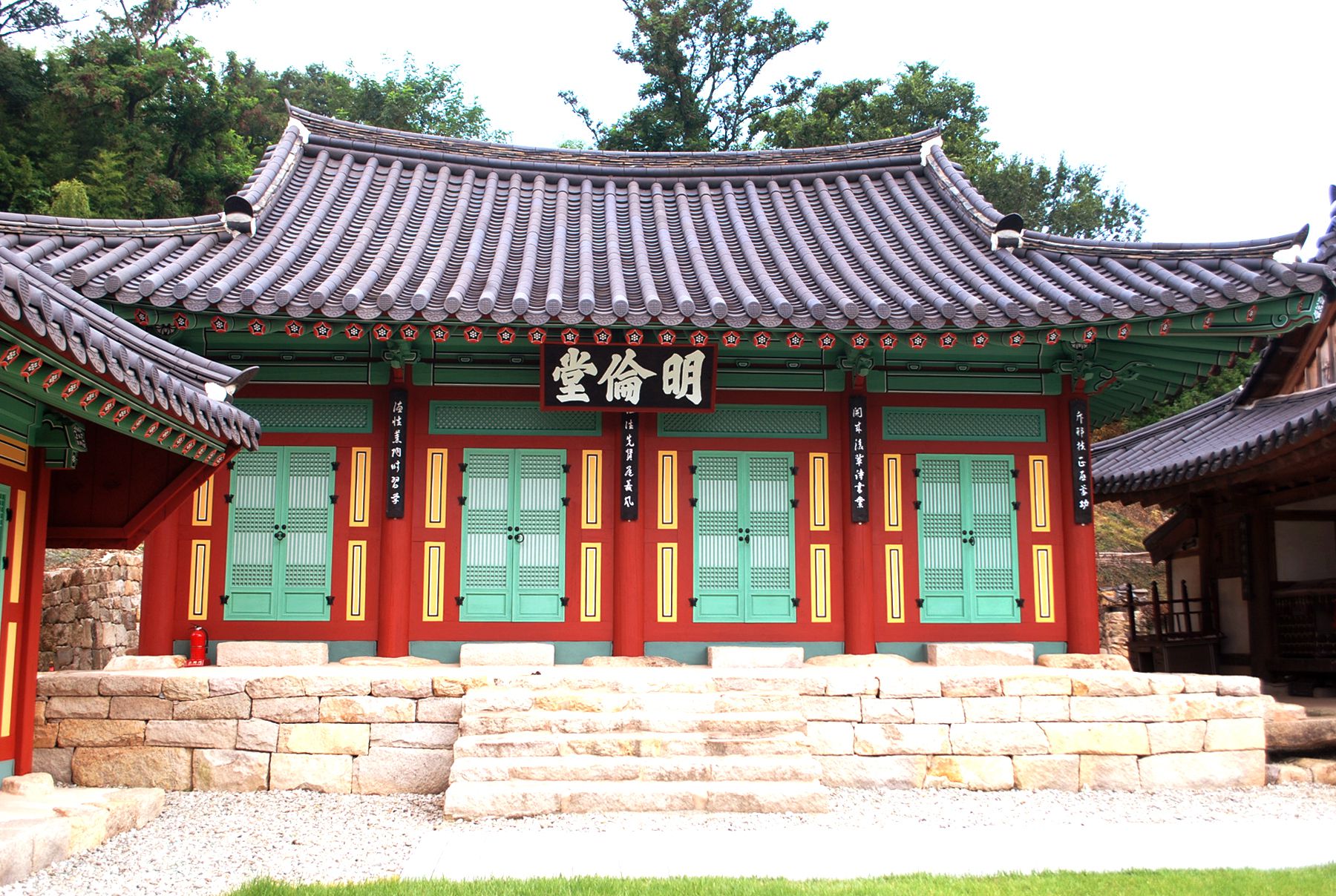명륜당은 정면 4칸, 측면 3칸, 팔작지붕으로 되어 있으며,