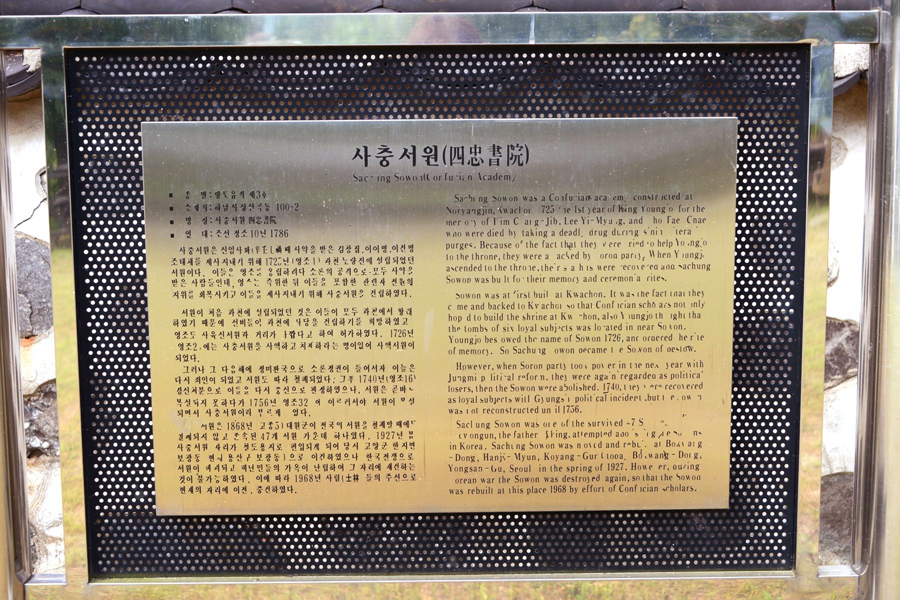 왕세제가 영조로 즉위한 후 노론정권이 수립되면서 신원되고 서원이 건립되었다고 합니다.