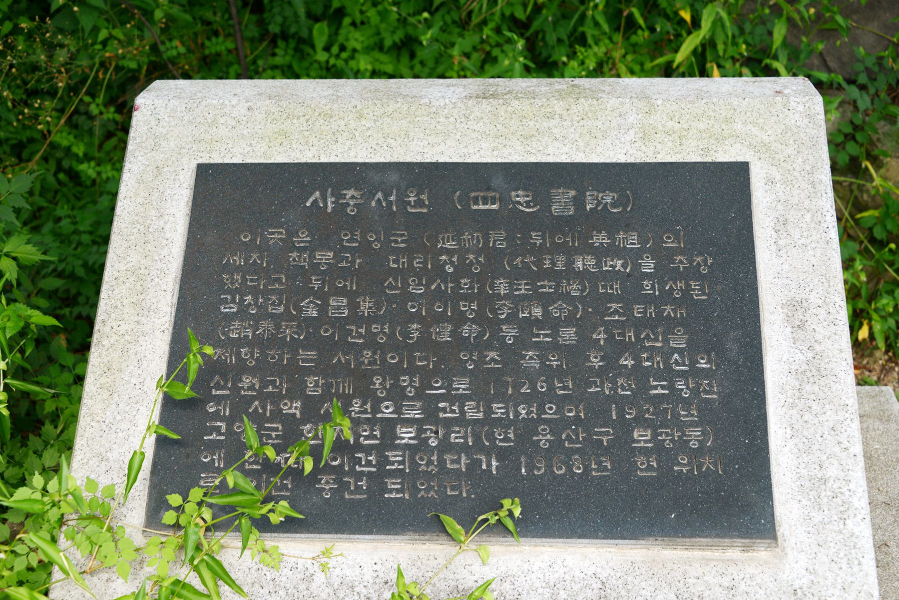 사충서원은 1725년 노론 4대신인 김창집, 이이명, 이건명, 조태채를 제향하기 위하여