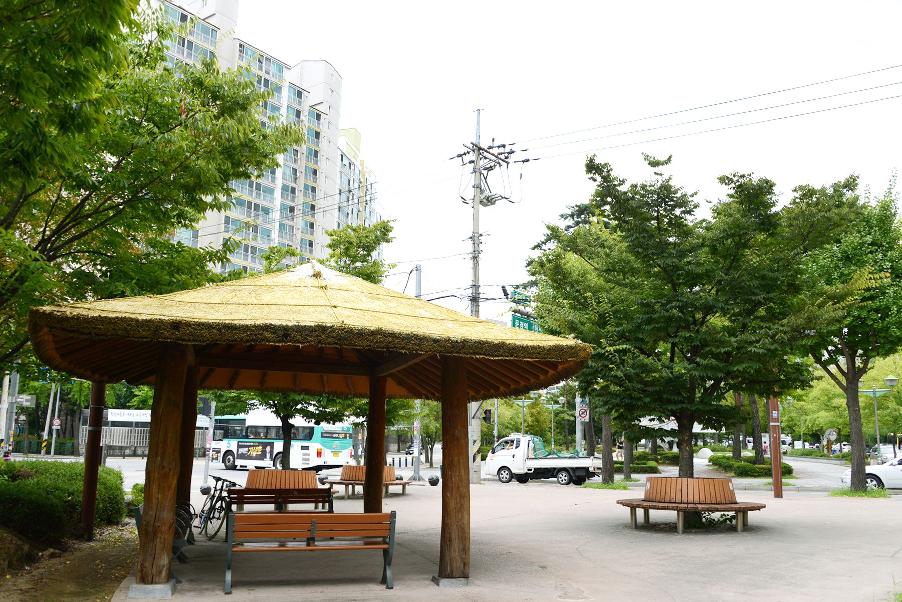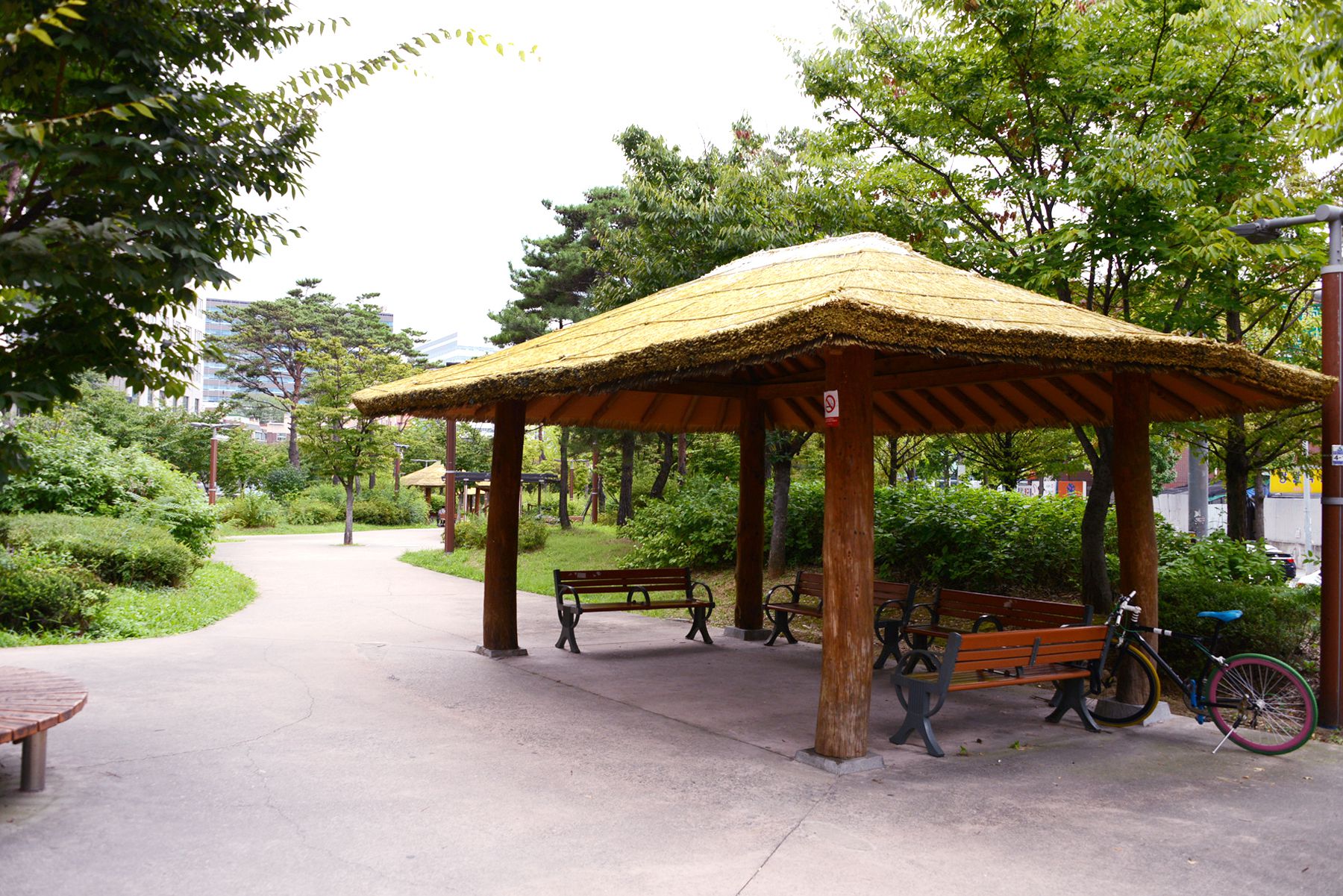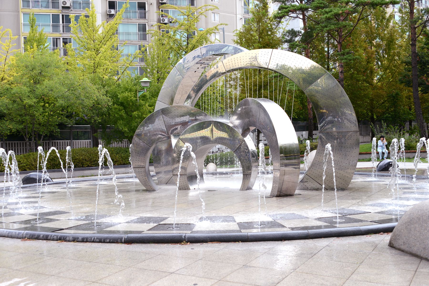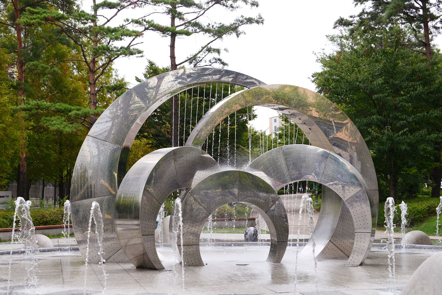공원에는 분수대뿐만 아니라 작은 공연장과 정자, 곳곳에 벤치 등 쉼터가 마련되어 있어