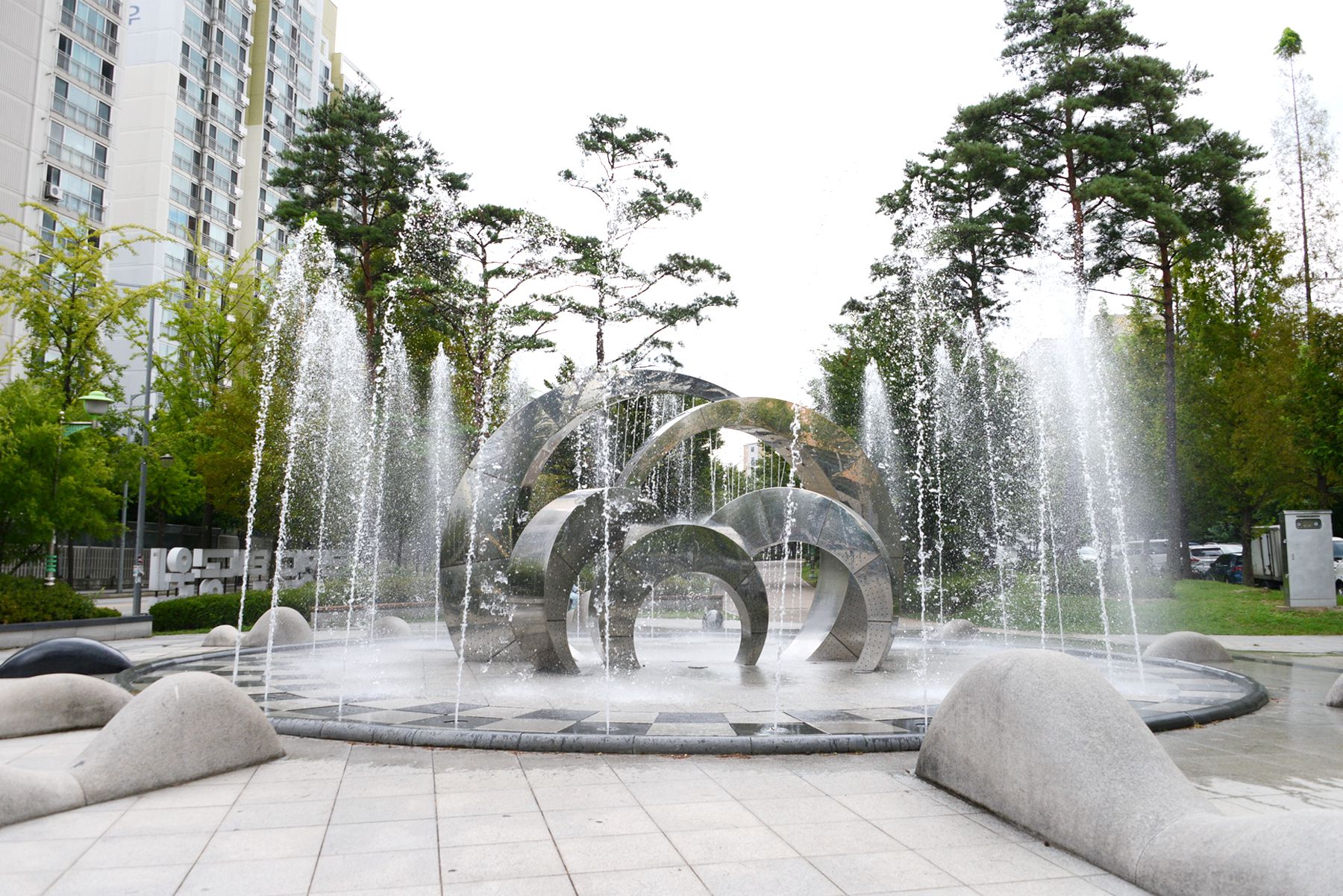 무더운 여름이면 문정근린공원의 분수대에서 시원한 물이 뿜어져 올라와