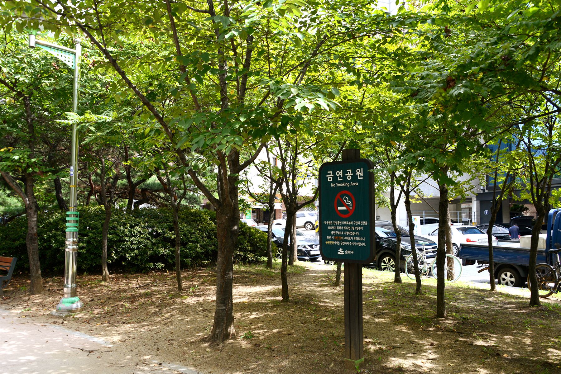 문정근린공원 초입은 주민들의 쉼터뿐만 아니라 주변 직장인들의 쉼터도 되어주고 있습니다.
