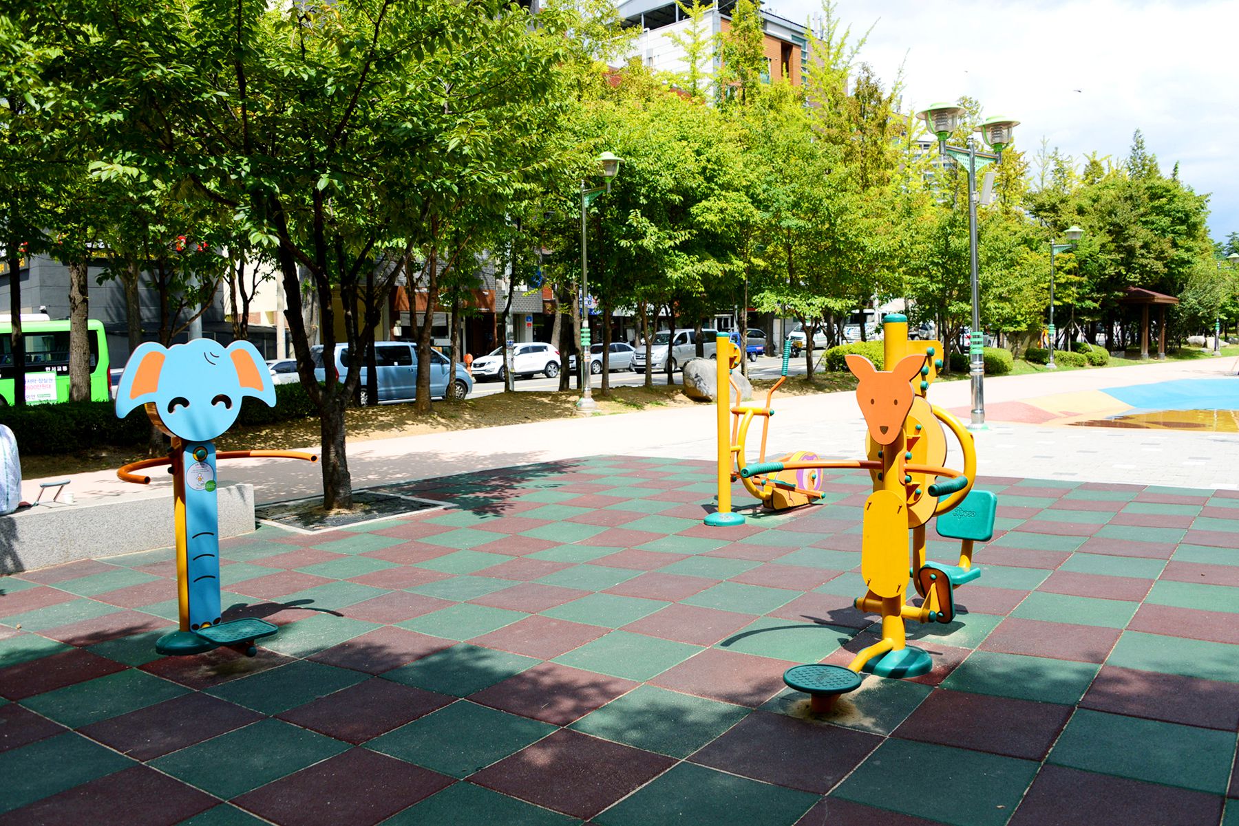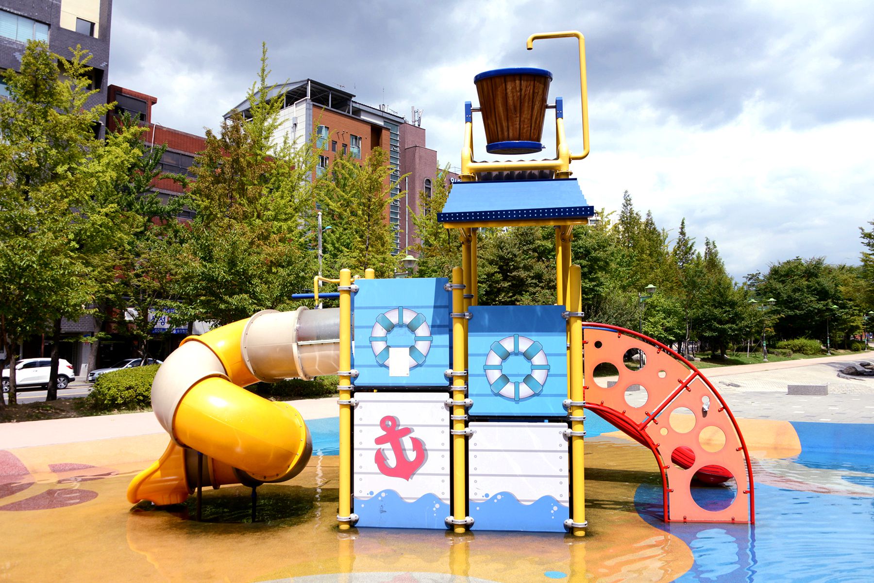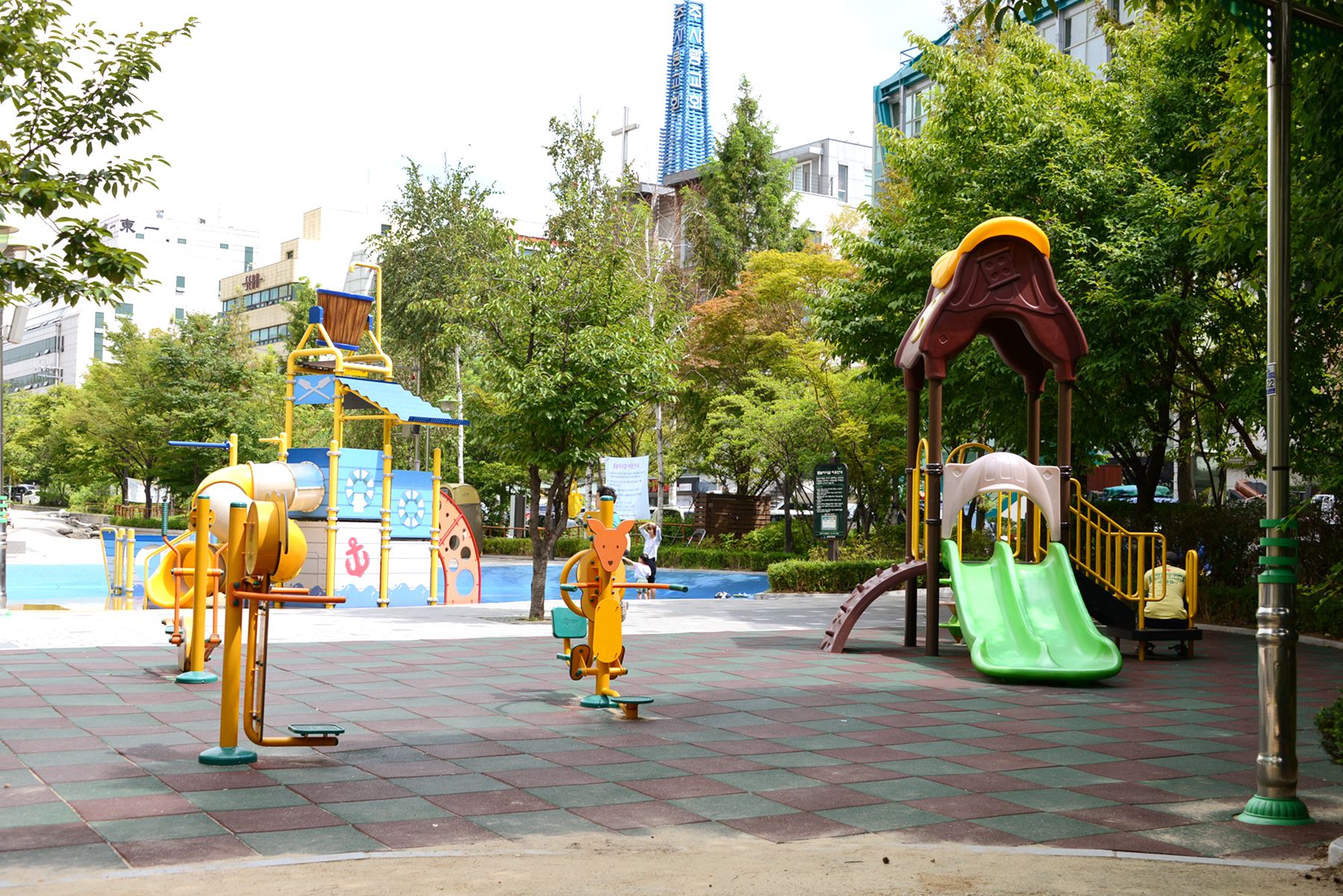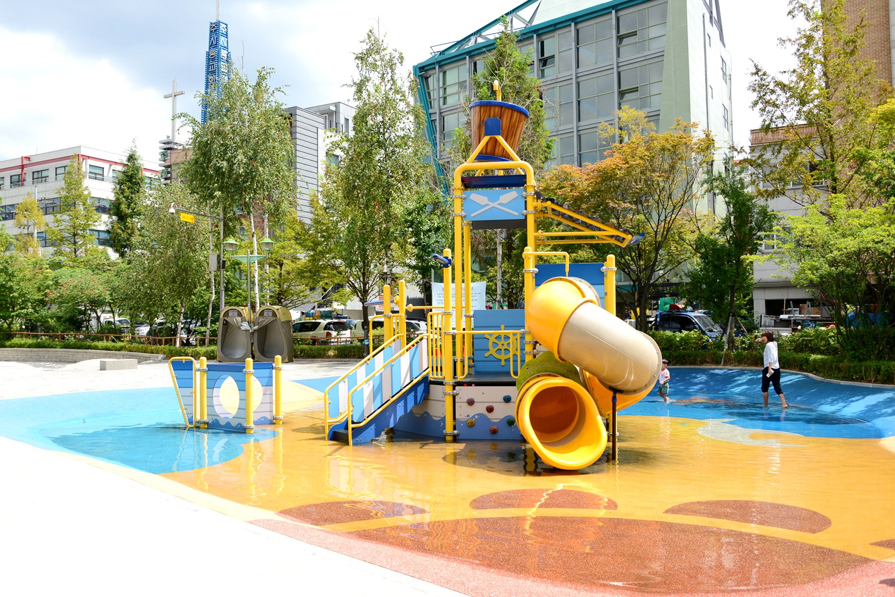 여름이면 이 놀이터에 물이 가동되어 시원한 물놀이를 즐길 수 있습니다.