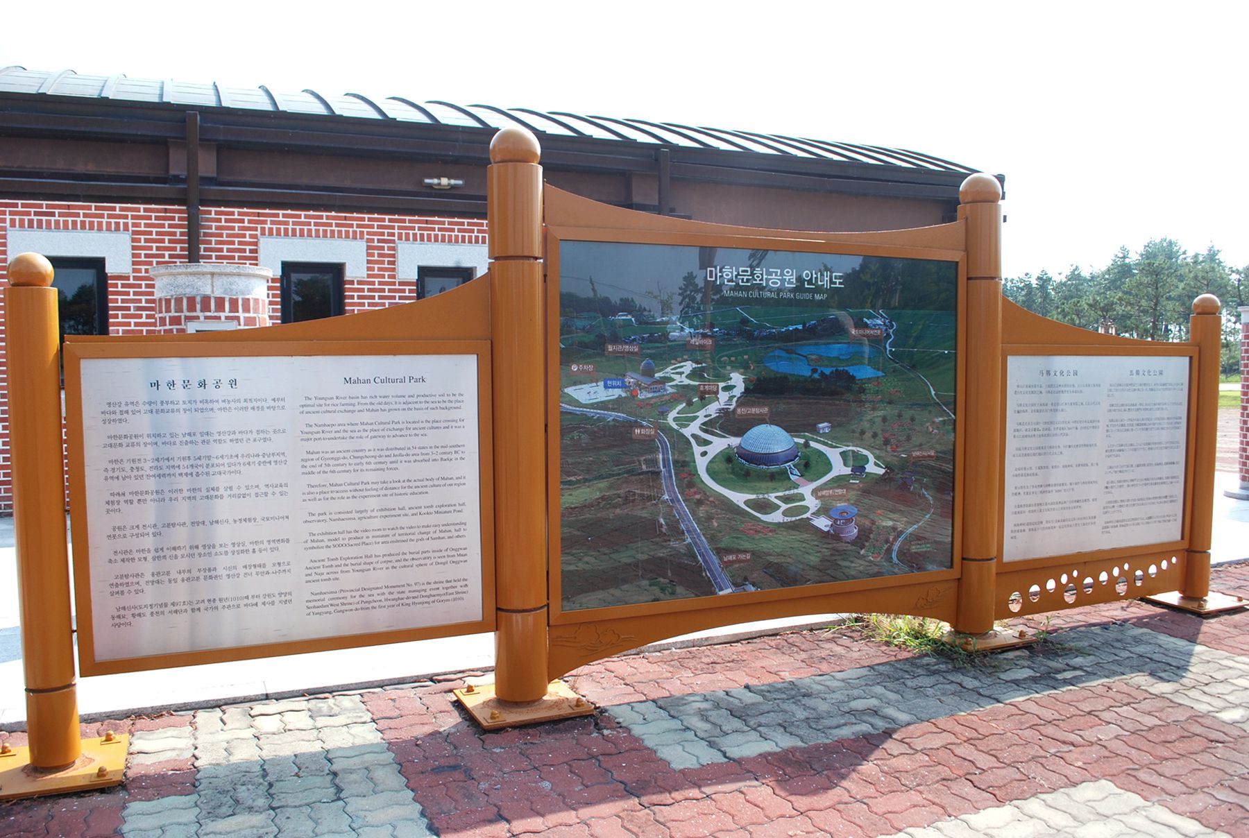 영상실, 관리사무실, 화장실 등이 있으며, 공원을 둘러보기 전 마한의 역사 등을 미리 알아볼 수 있는 공간입니다.