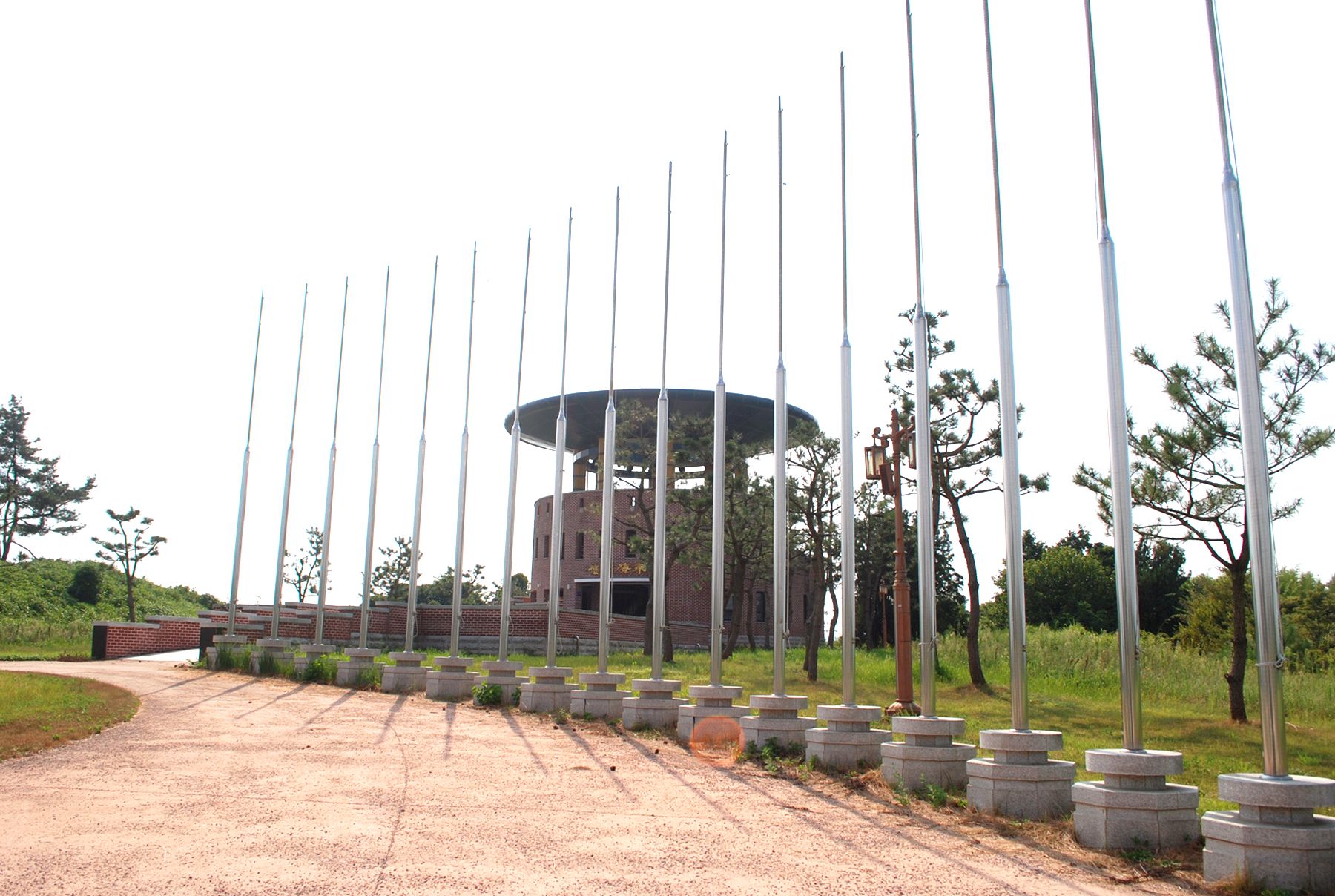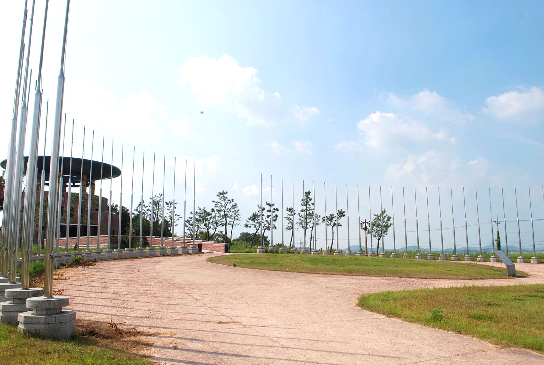 남북통일을 염원하는 쉼터와 함께 가운데는 한반도 모양의 분수가 있어 운치를 함께 느껴볼 수 있으며