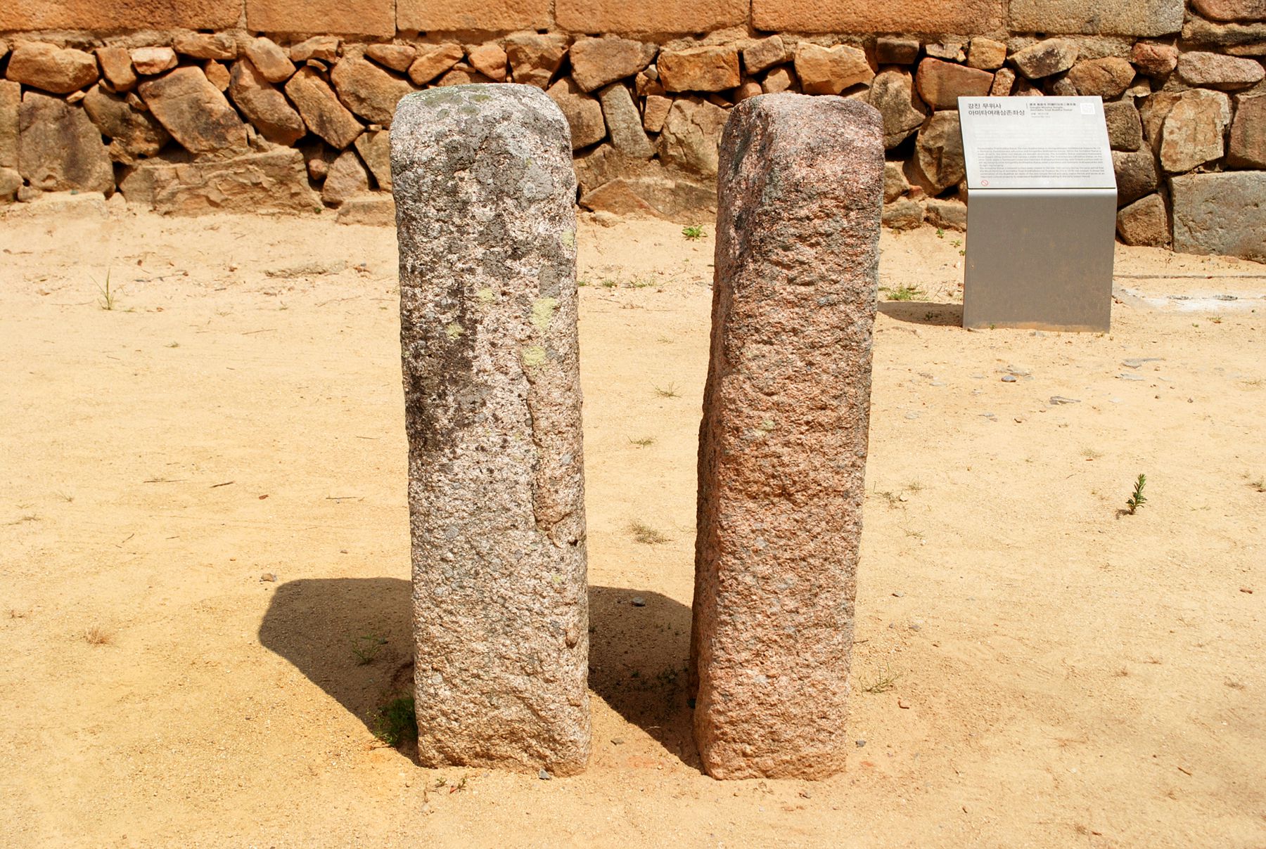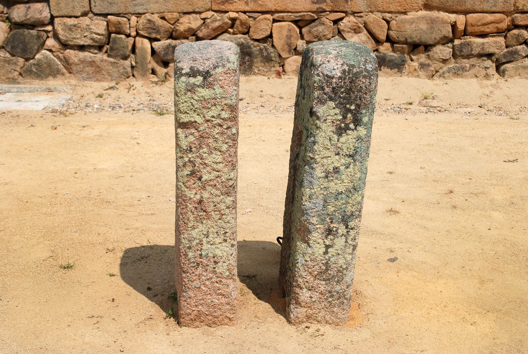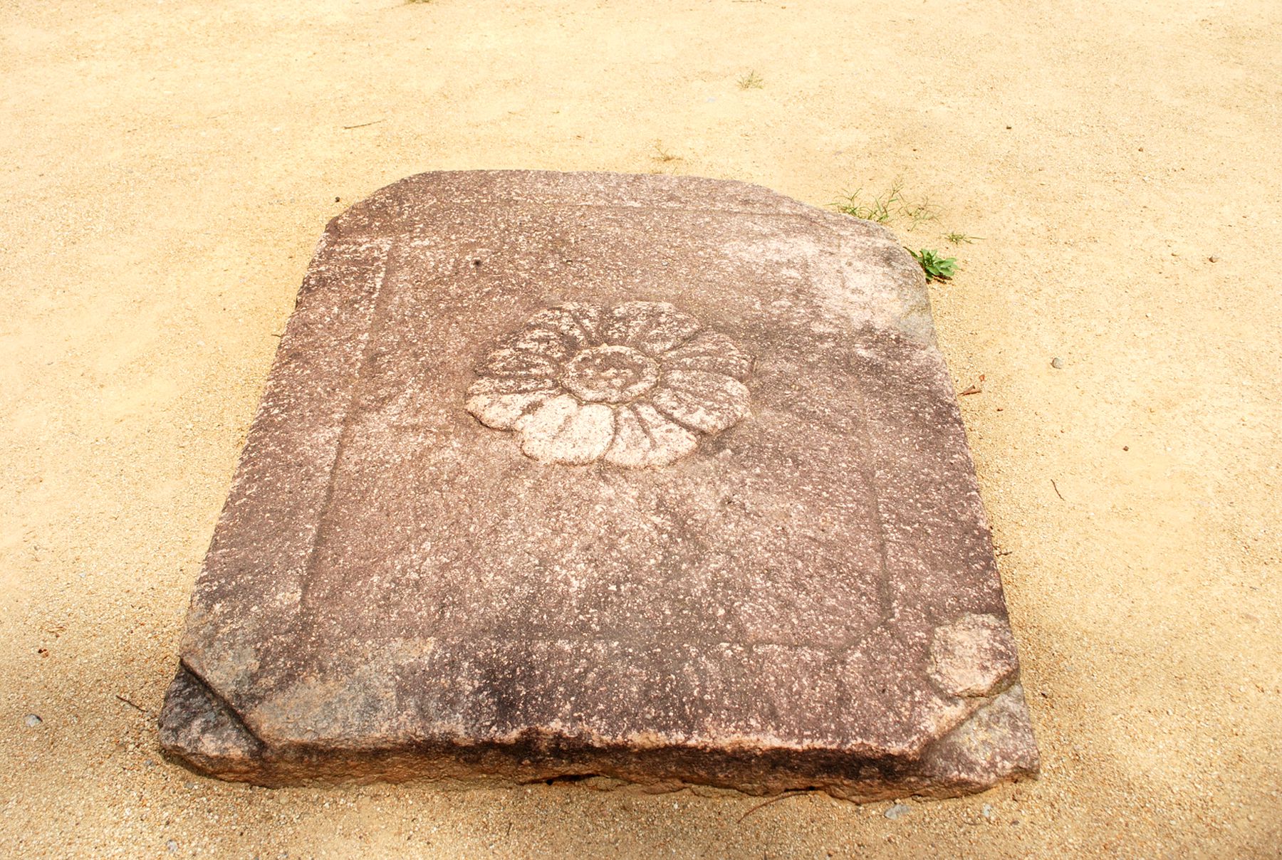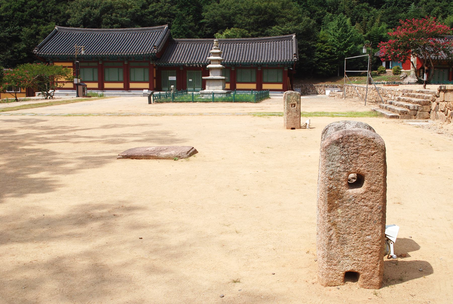 극락보전 앞에는 연화문 배례석과 당간지주가 자리잡고 있는데요,