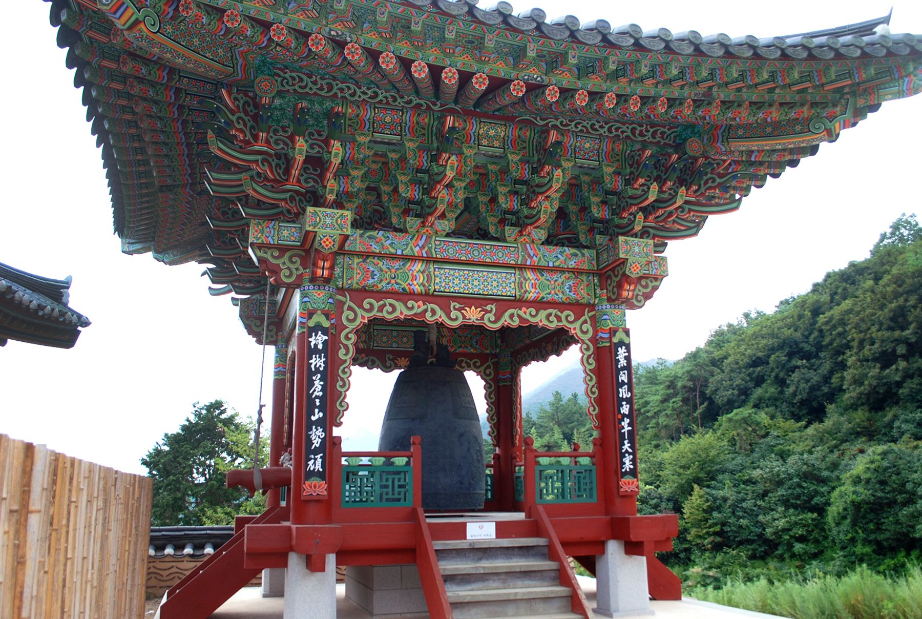 한켠에 자리잡고 있는 무위사 범종각은 보통의 사찰에 비해 화려하고 정교함이 특징입니다.